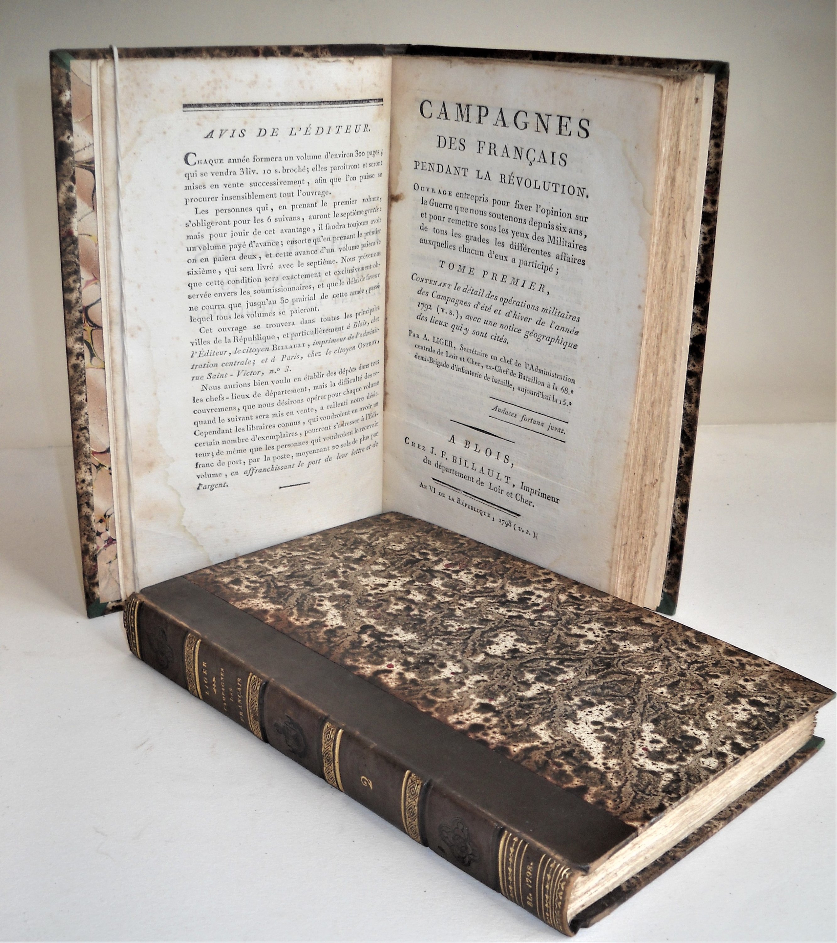 Liger, Campagne des Français pendant la Révolution, 2 vol., J.F. Billault, Blois, 1798, rel. ½ basane in-8, xvi-273 et 422 pp. ;