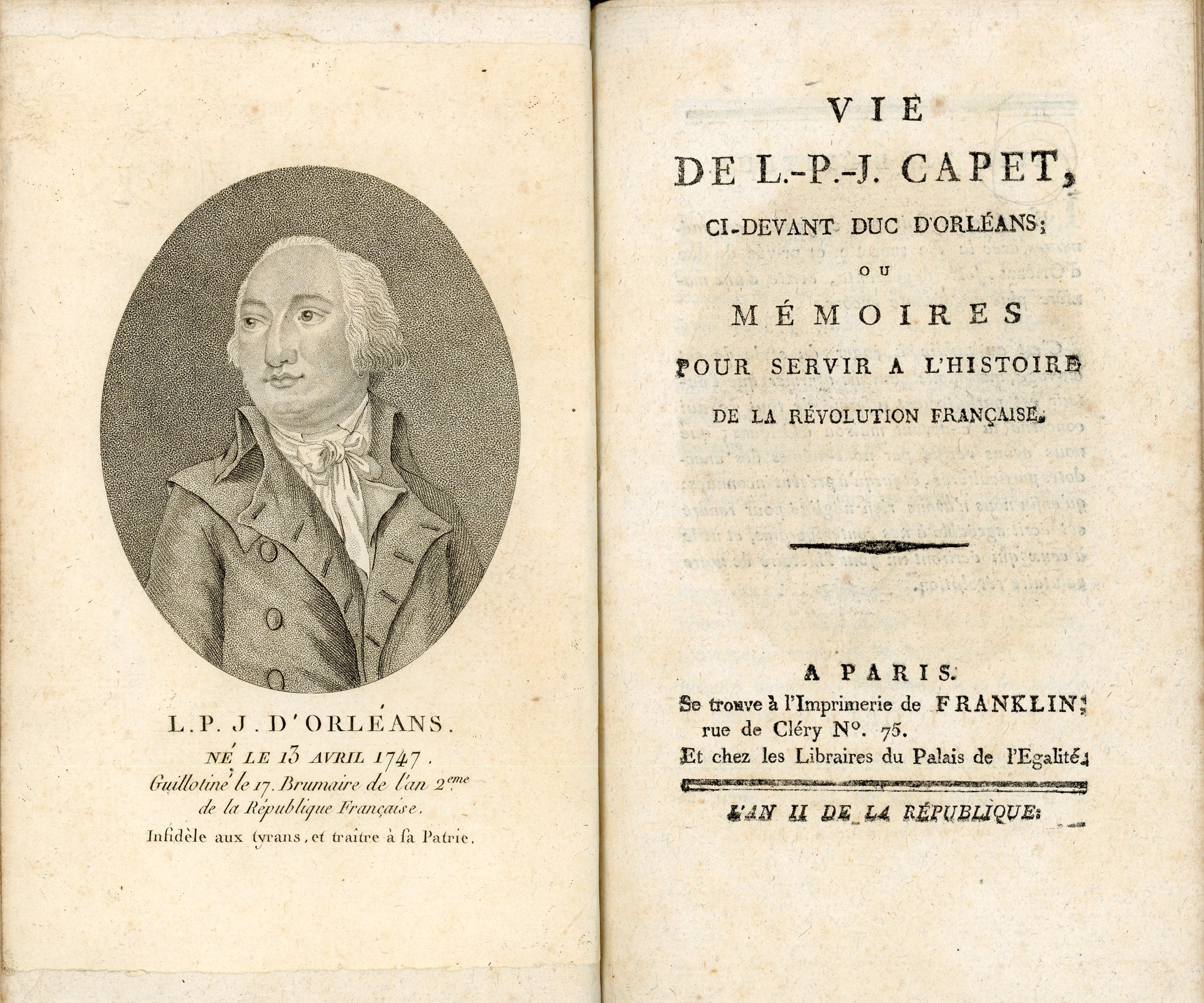 [Pierre Turbat], Vie de L.-P.-J. Capet, ci-devant duc d'Orléans, ou Mémoires pour servir à l'histoire de la Révolution française, À Paris, se trouve à l'Imprimerie de Franklin
