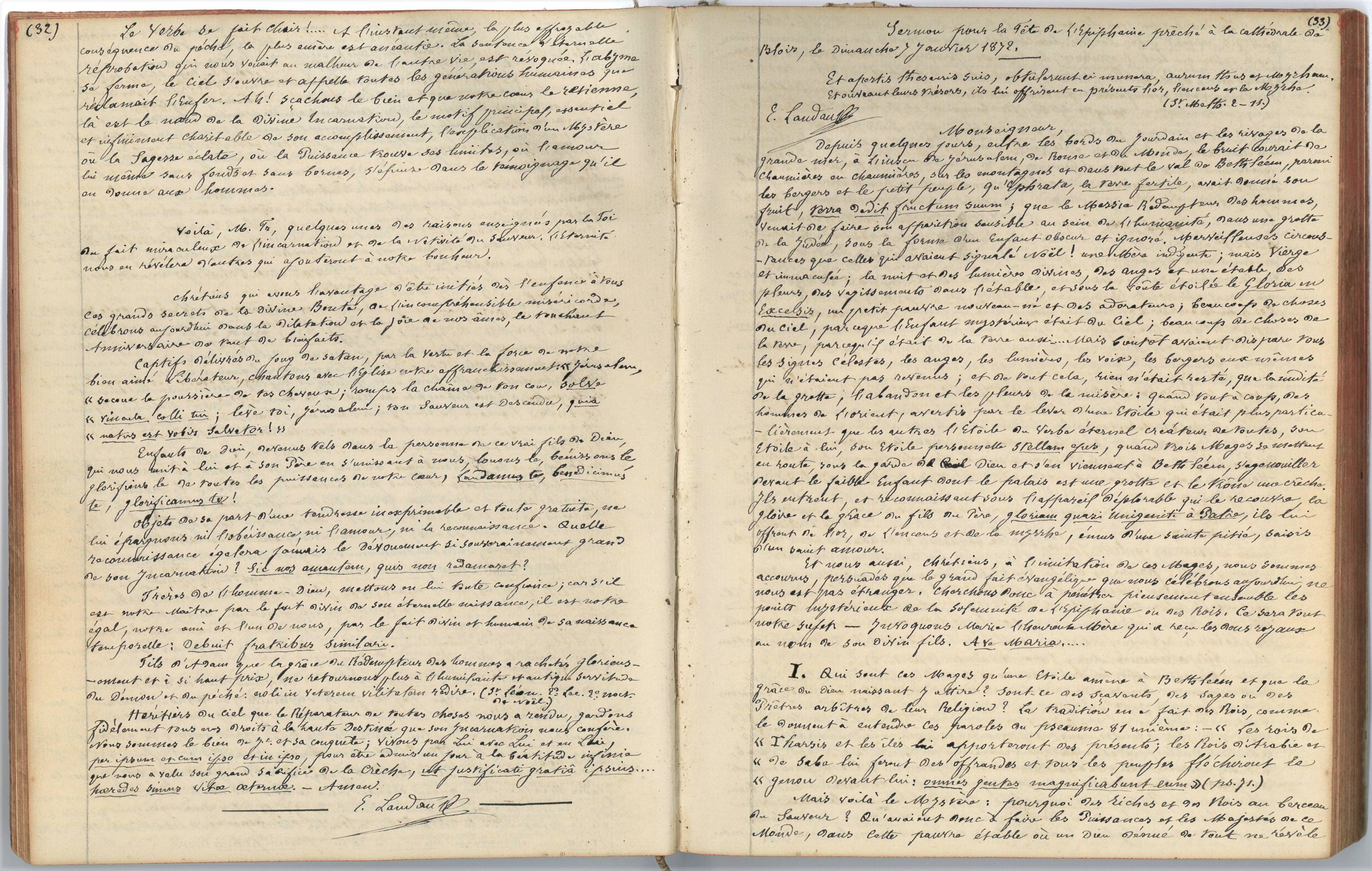 • Recueil manuscrit des sermons écrits par l’abbé Edouard Landau, aumônier de l’Ecole normale de Blois, 195 pp. in-8, prononcés entre 1857 et 1875 au petit séminaire, à la cathédrale, à la chapelle des Ursulines, à l’Ecole normale à Blois, etc.