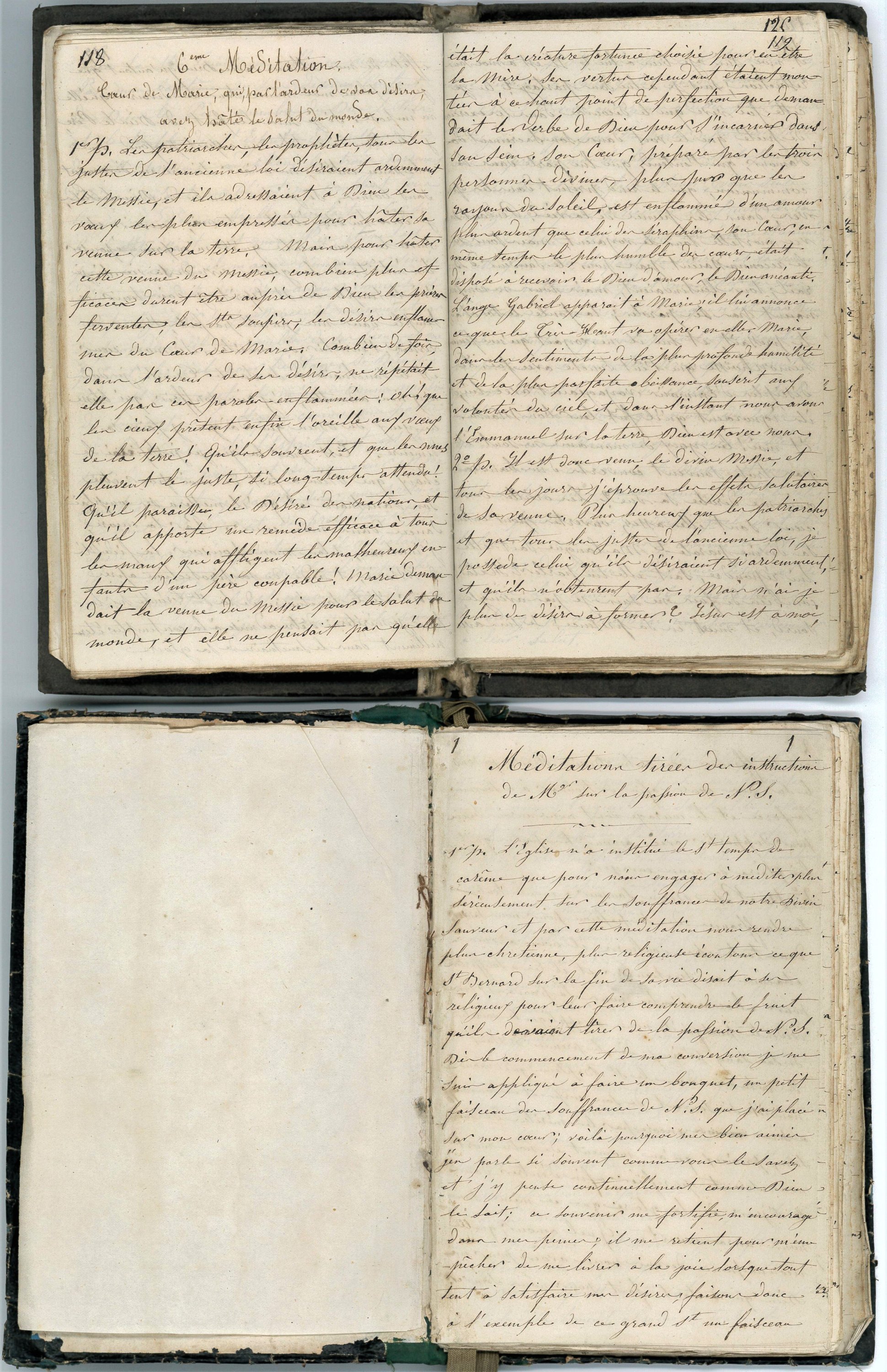 • Méditations tirées des instructions de monseigneur sur la passion de Notre Seigneur, carnet manuscrit in-8, 275 pp., 19e siècle ;