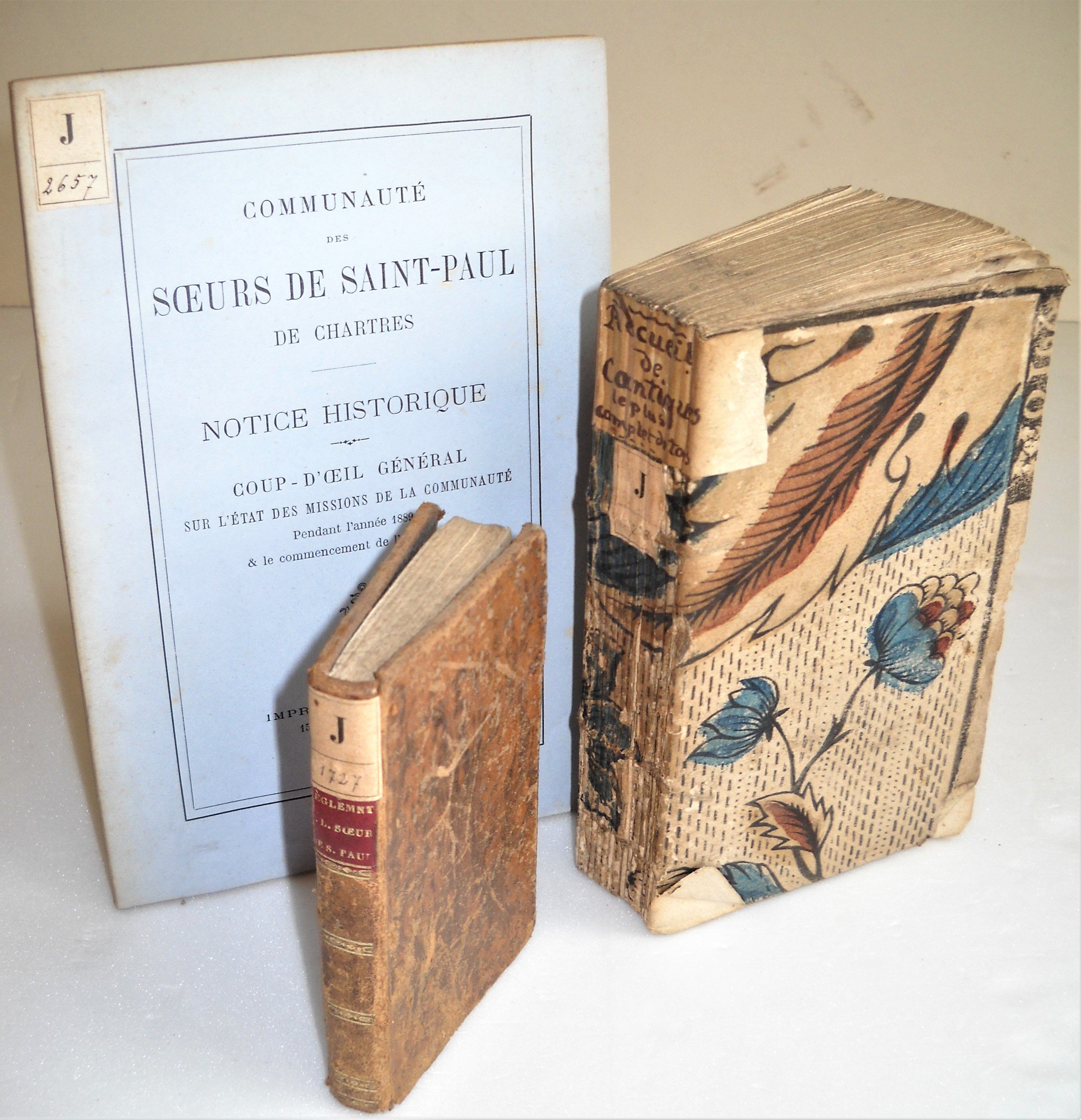 Règlement pour les Soeurs hospitalières de S. Paul, établies à Chartres et connues sous le nom de Soeurs de S. Maurice, Paris, impr. Lefebvre, rue de Lille, [1804], rel. en plein cuir dépoque (en létat) in-16, 170 pp., annotation manuscrite à la plume « Ce règlement appartenant aux surs de létablissement de Madon, le 10 7bre 1836, L. Baschet, curé de Candé » ;