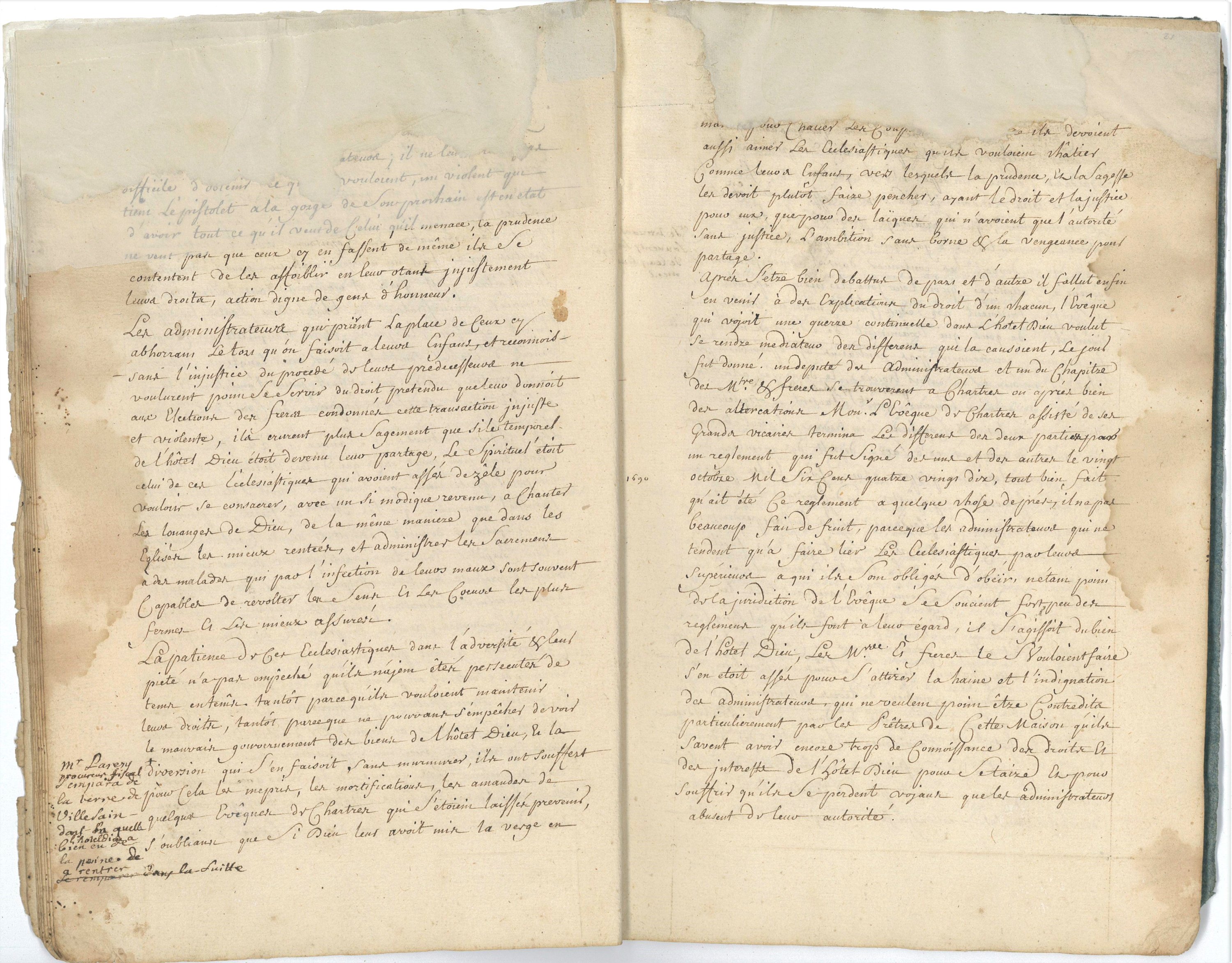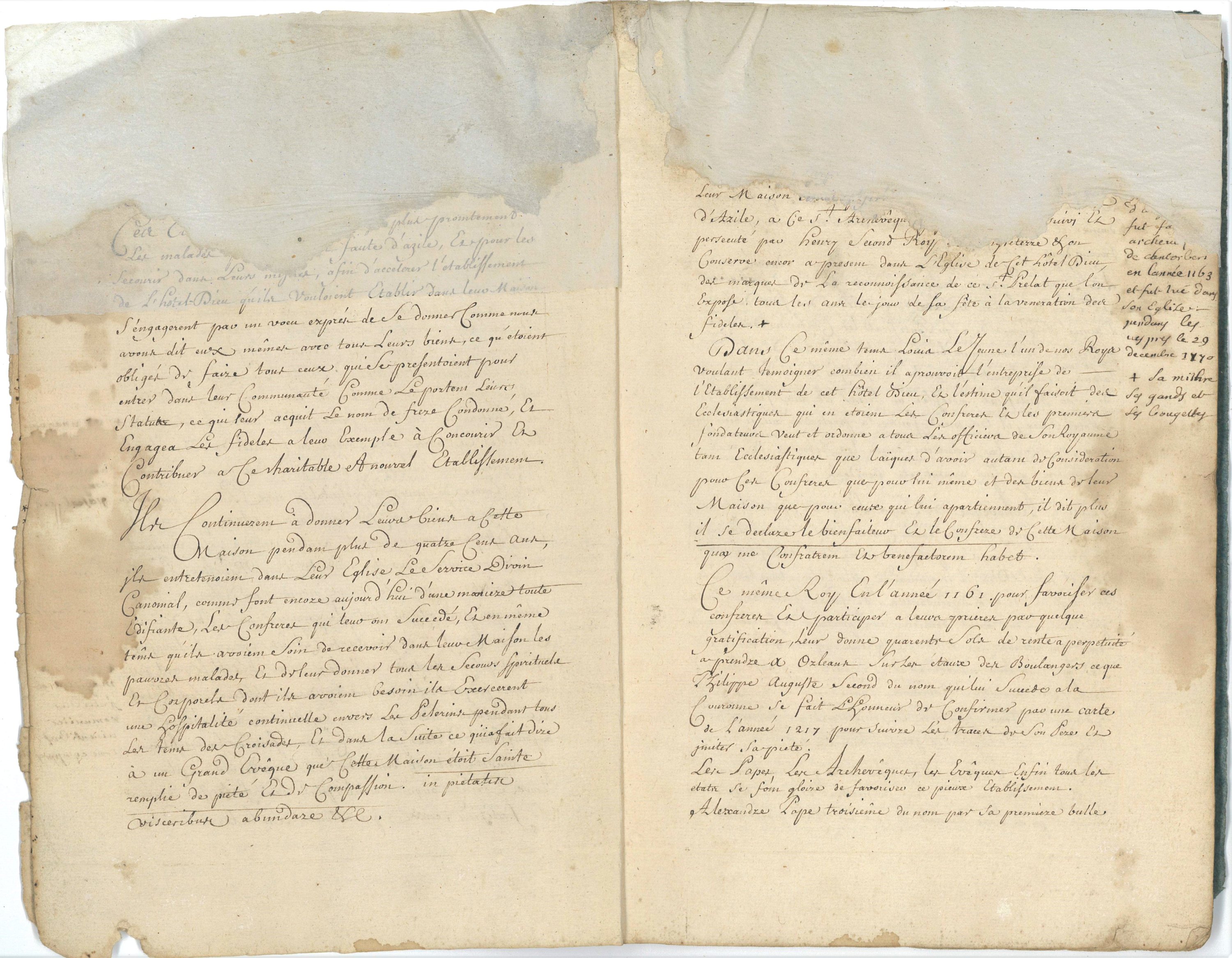 Mémoire historique sur lhôtel-dieu, manuscrit anonyme, 18e siècle ou 19e siècle, in-4, 52 pp. (manques et restaurations), se terminant par ce passage critique « (