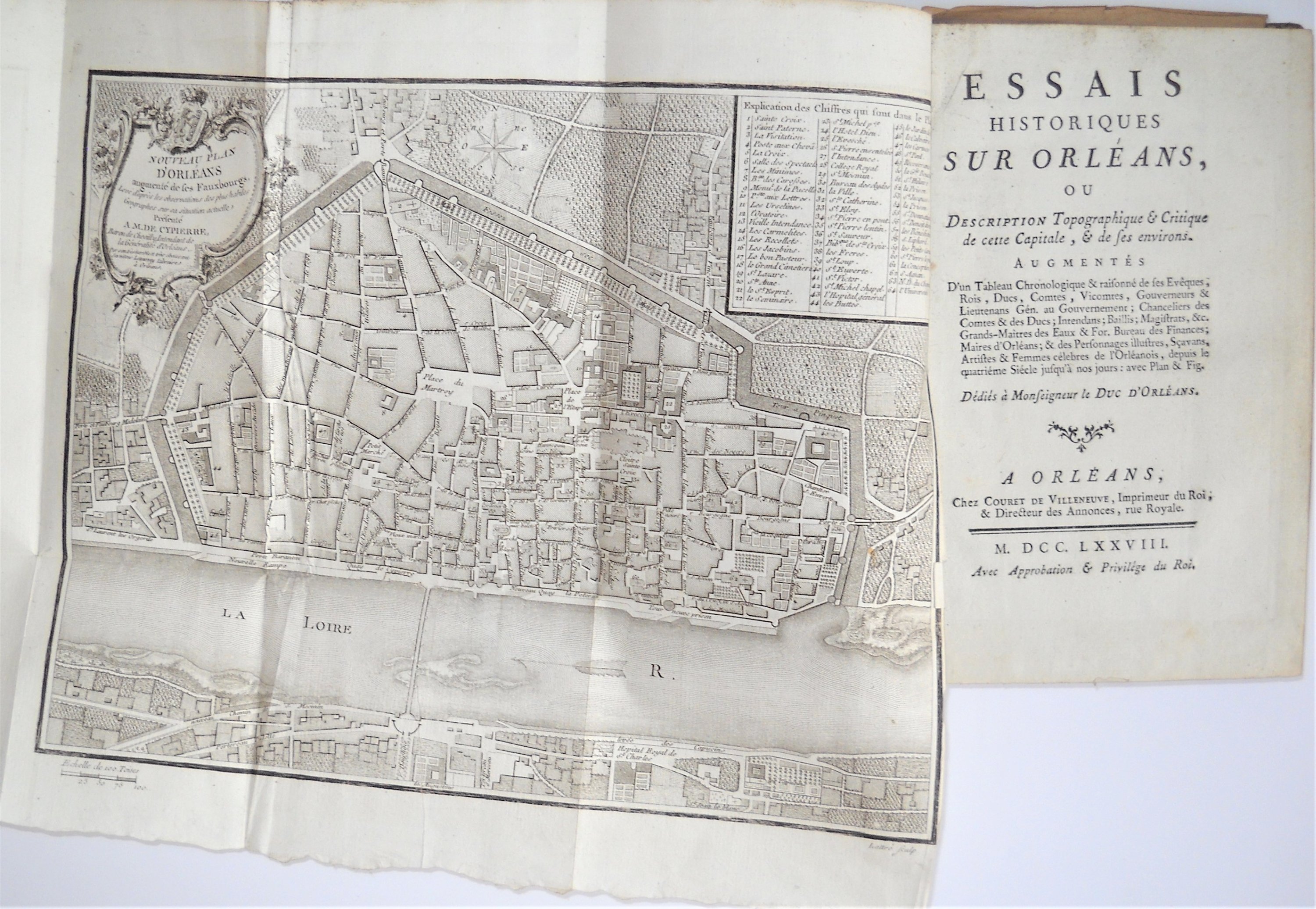 Pellieux, Essais historiques sur la ville de Beaugency et ses environs, Beaugency, Jabre, an VII, 2 tomes en 1 vol., rel. tardive in-12, (xii)-232-(2) pp. et (iv)-503 pp. avec gravure dépl. et ajout dune table manuscrite, bel et rare exemplaire ;