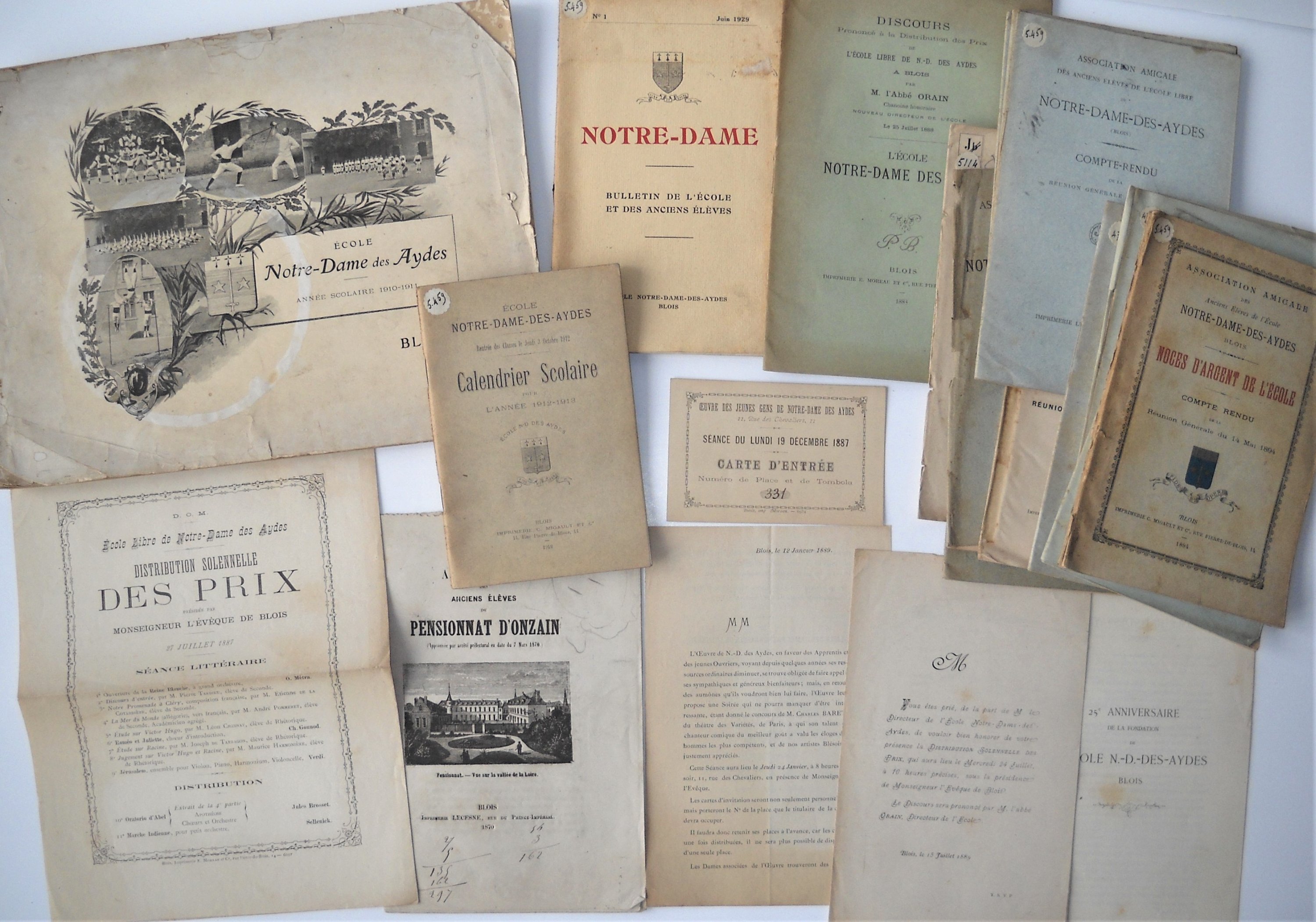 Collège de Blois, 1823-1897, 30 plaq. et broch. de lassociation amicale des anciens élèves, discours et distributions des prix, assemblées générales ;