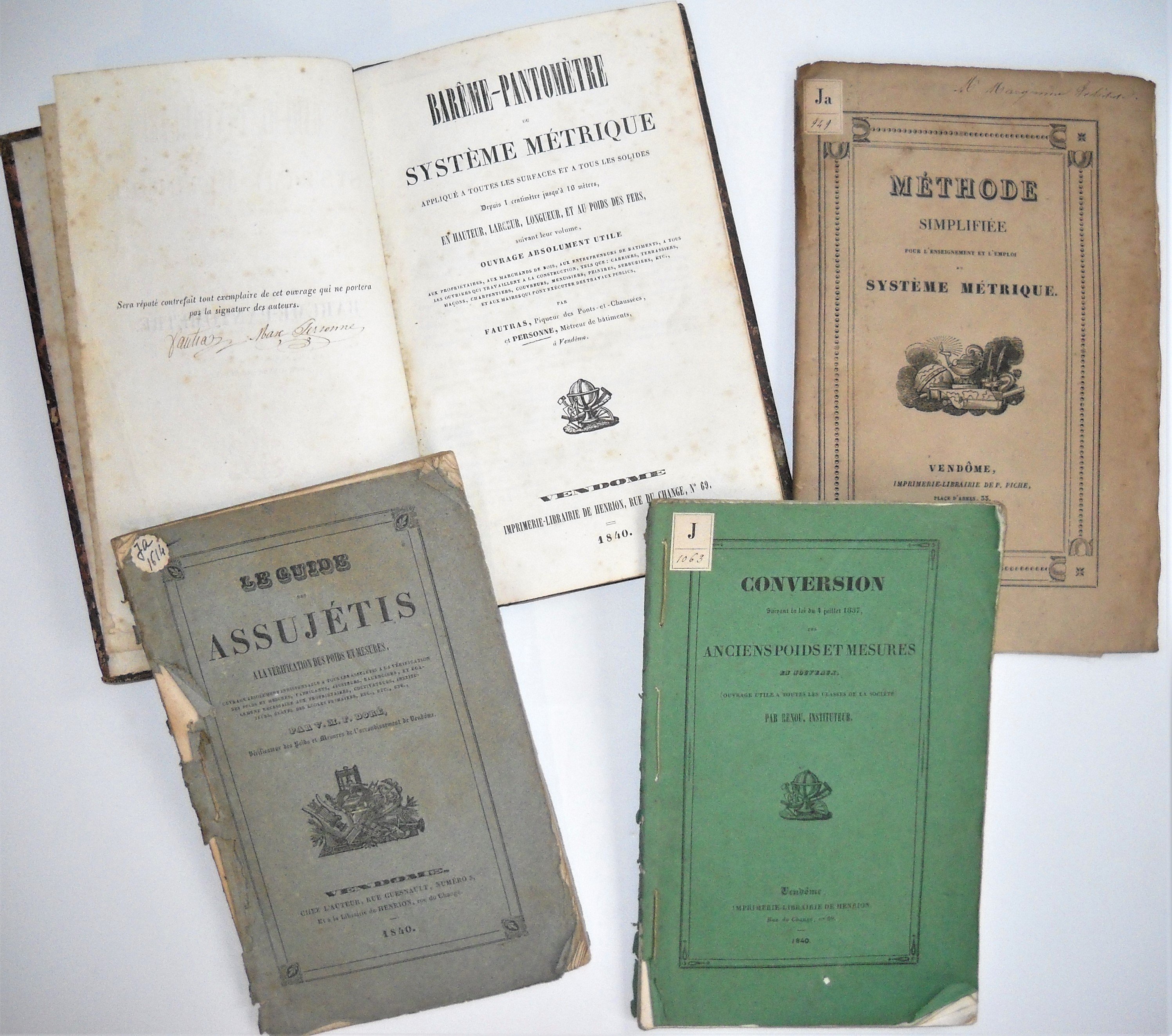 • V.M.F. Doré (vérificateur des poids et mesures), Le guide des assujettis à la vérification des poids et mesures, chez l’auteur, rue Guesnault et chez Henrion, Vendôme, 1840, 46 pp. ;