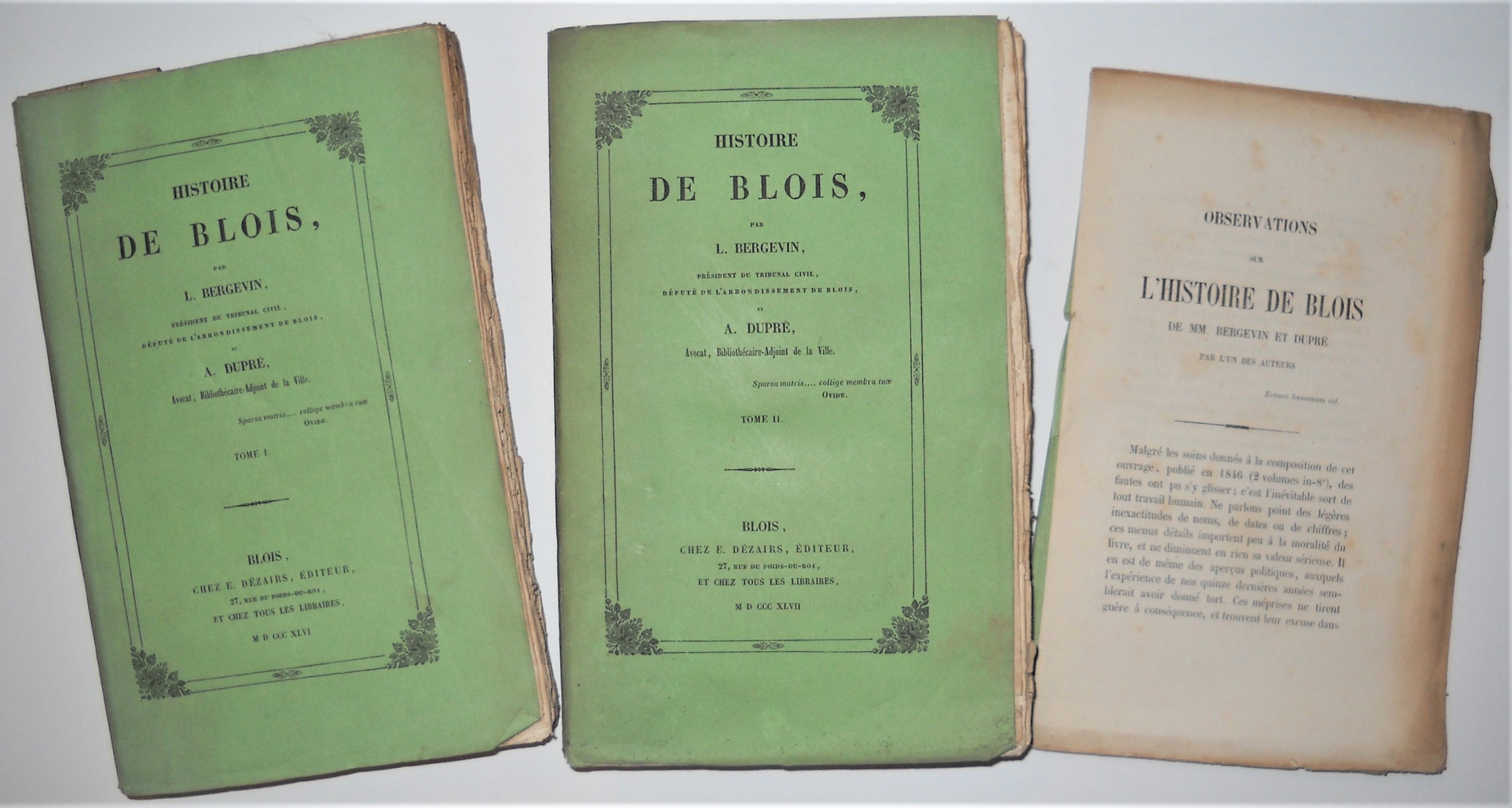 Publication historique à partir des travaux de recherches de Louis Athanase Bergevin, enrichis et complétés par ceux de son fils Louis Catherine Bergevin et dAlexandre Dupré, bibliothécaire de la ville de Blois.