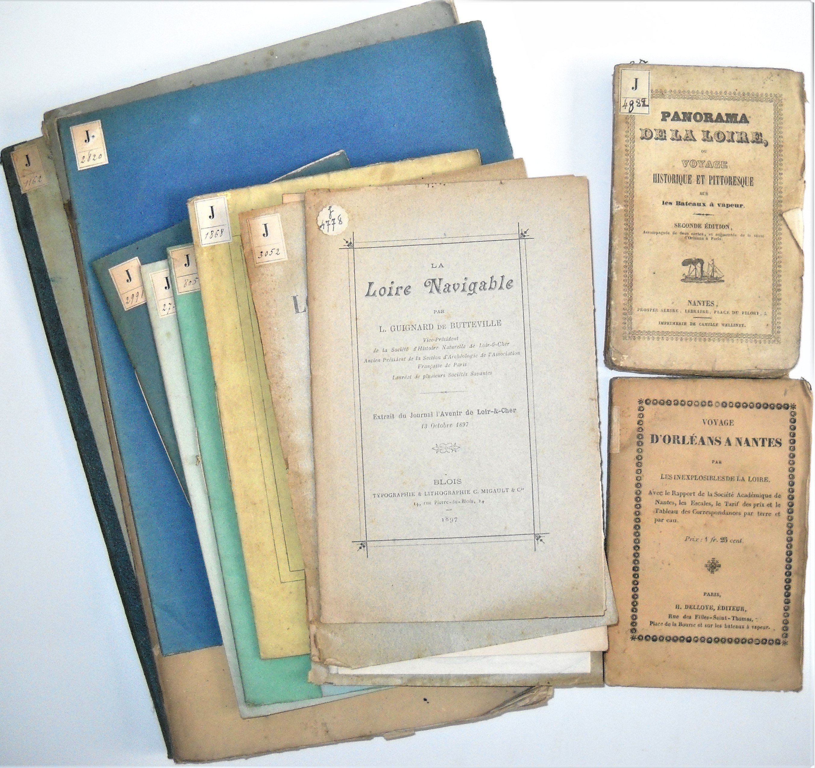Rapport de linspecteur général des turcies et levées, sur les évènemens de la crue de la Loire, du 12 novembre dernier et jours suivans, [1790] ; Voyage dOrléans à Nantes par les inexplosibles de la Loire, Paris, Delloye, [1839] ; Panorama de la Loire ou voyage historique et pittoresque sur les bateaux à vapeur, seconde édition, Nantes ; Henri de Monteyremar, Y avait-il deux iles-aux-boeufs en la rivière de la Loire, Orléans, 1858 ; Rapport à Sa Majesté lEmpereur sur les inondations, 1866 ; Comoy, Renseignements sur les crues de la Loire et de ses grands affluents