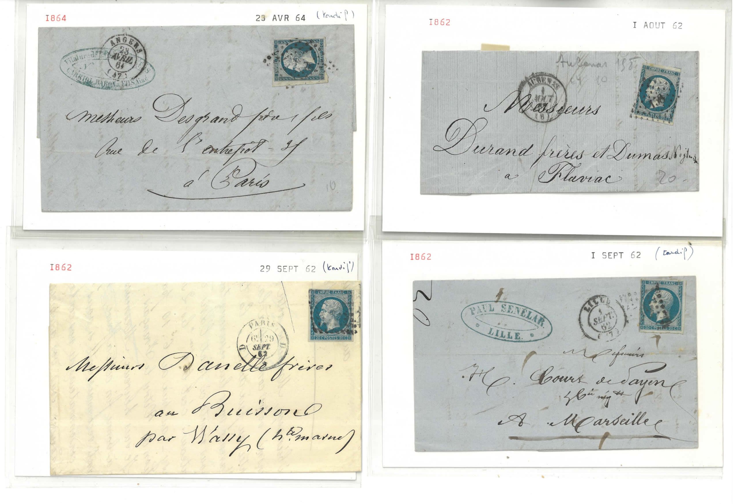 FRANCE. 203 lettres avec n°14 dates différentes. O/L