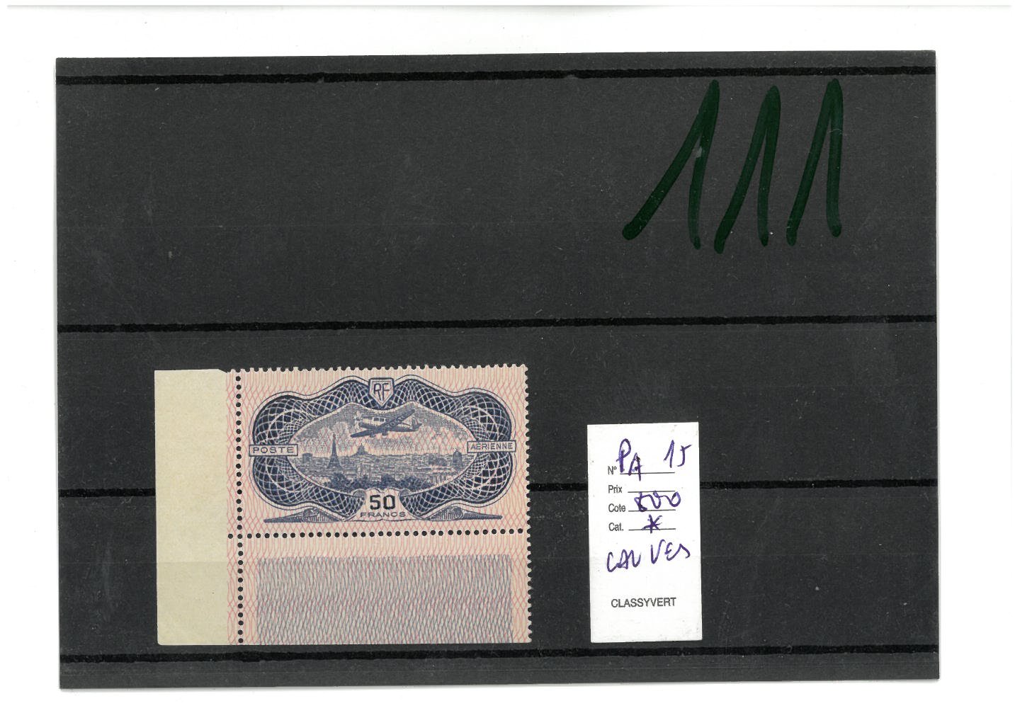 FRANCE.  PA N° 15 signé Calves BDF. * ....