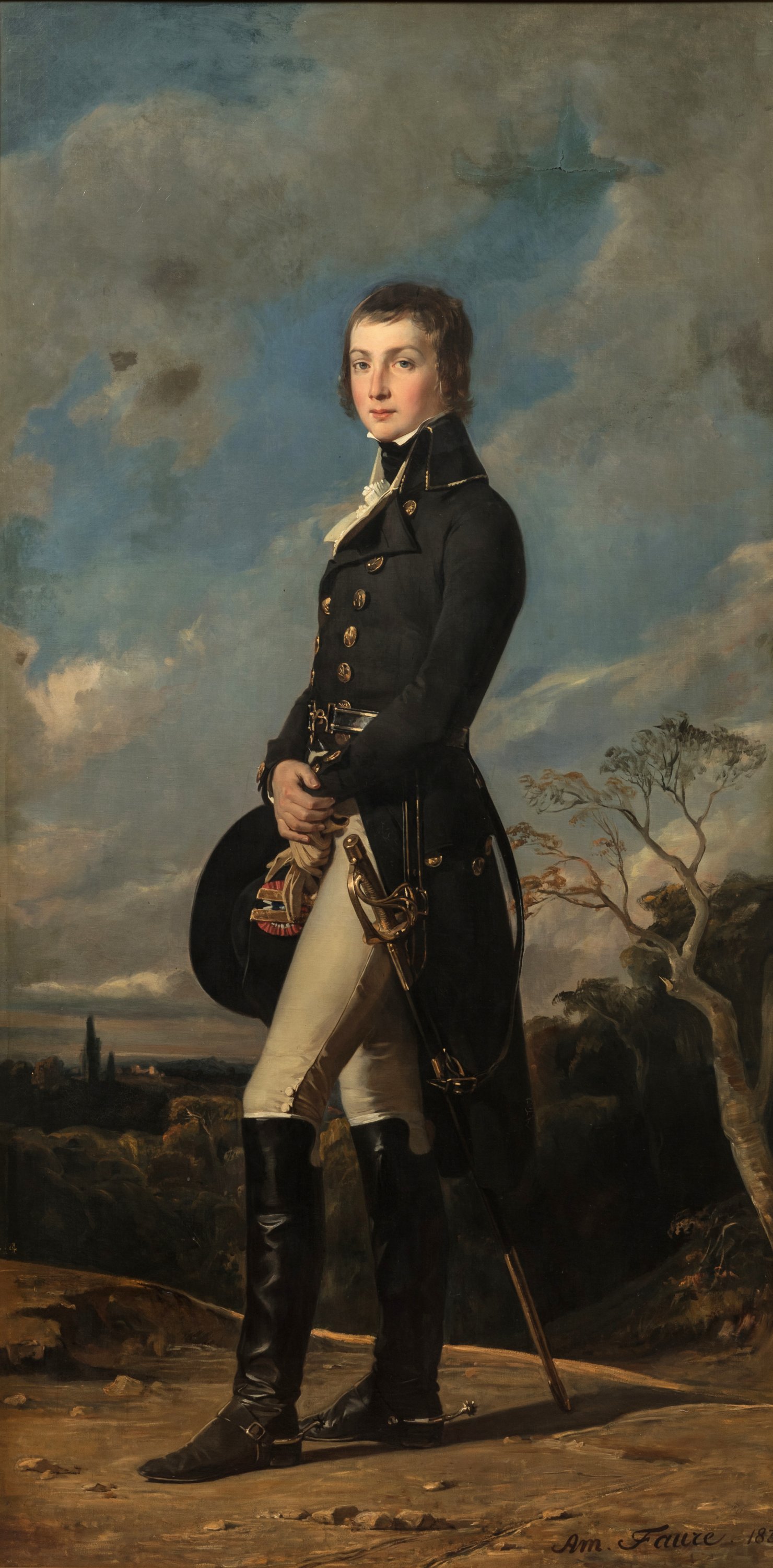 A 1835 portrait of HRH Louis Charles d'Orléans, Earl of Beaujolais. Oil on canvas. Signed and dated. Ordered by King Louis-Philippe for his summer residence of château d'Eu.