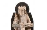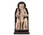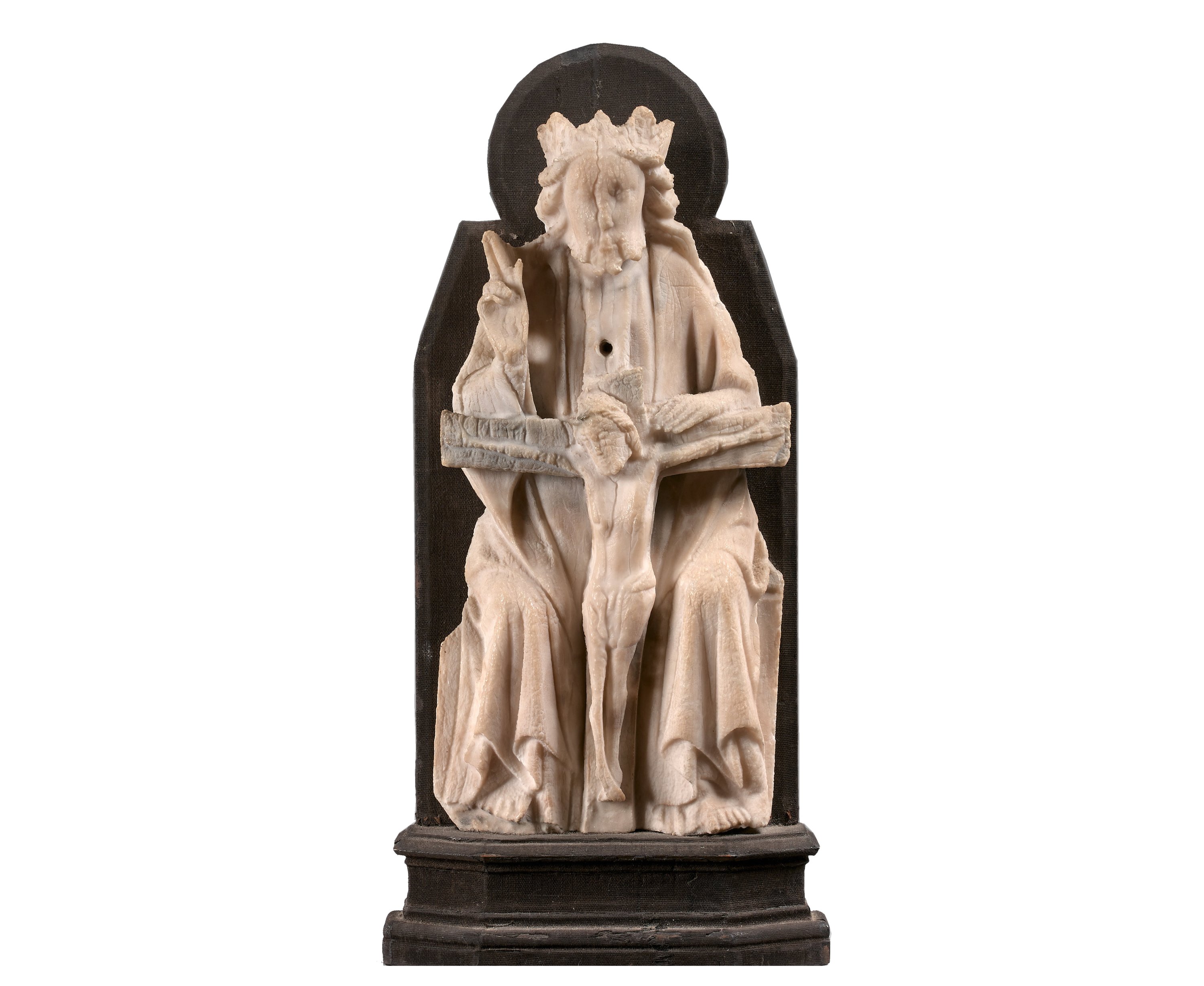A 15th century English alabaster sculpture representing the Holy Trinity affixed to a wooden base.