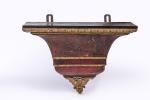 Le cartel repose sur un cul de lampe d'applique centrée d'un cône feuillagé.