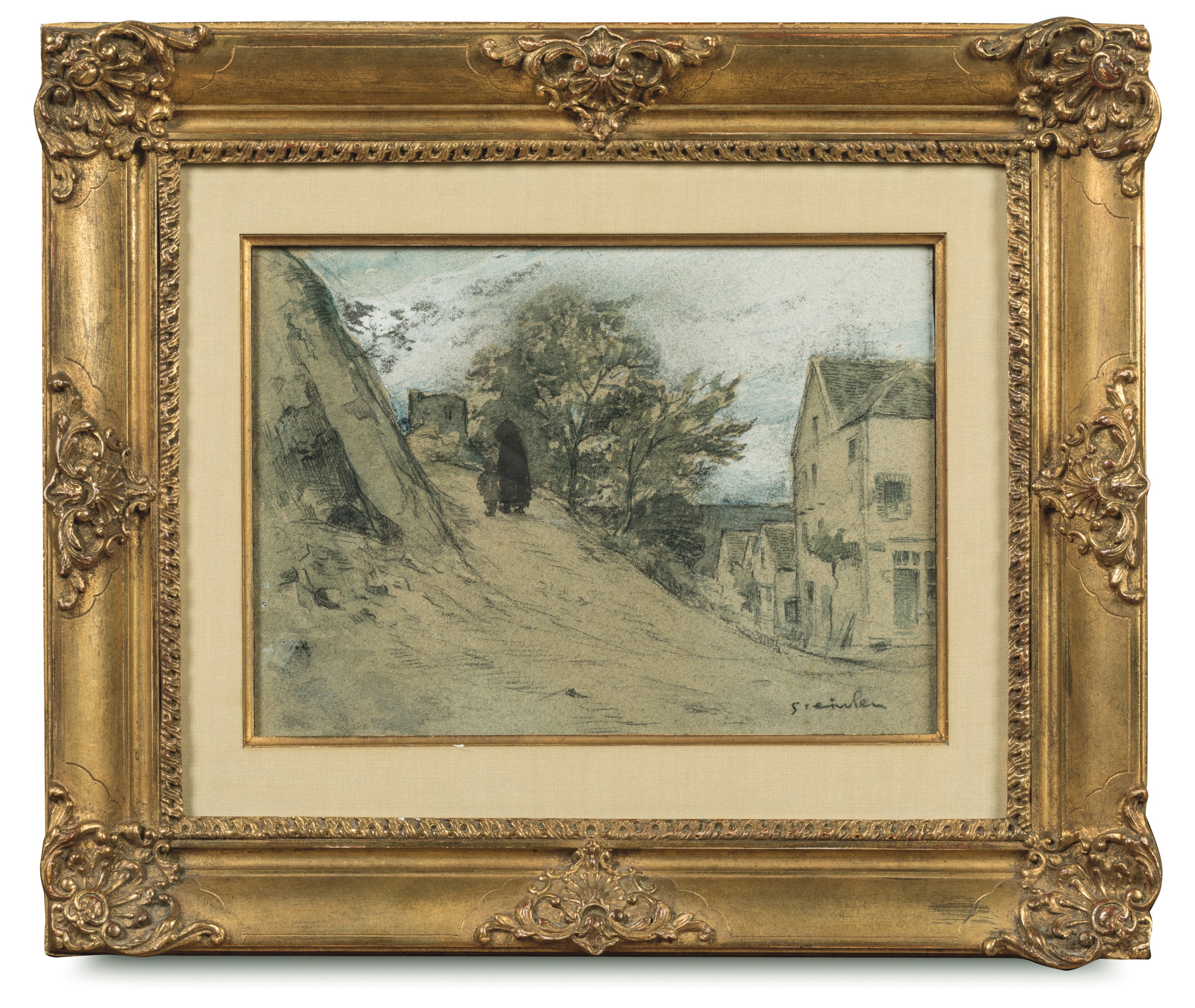 Fusain, aquarelle et gouache, signée en bas à droite.