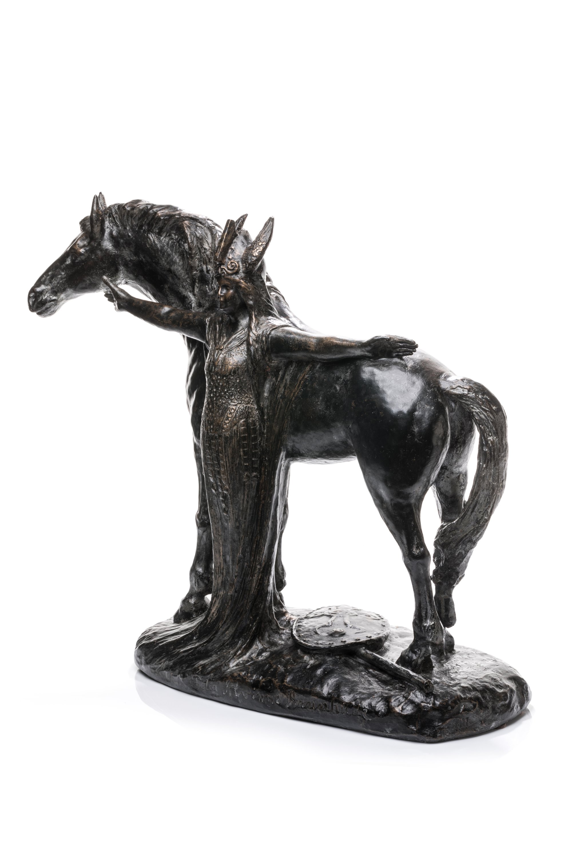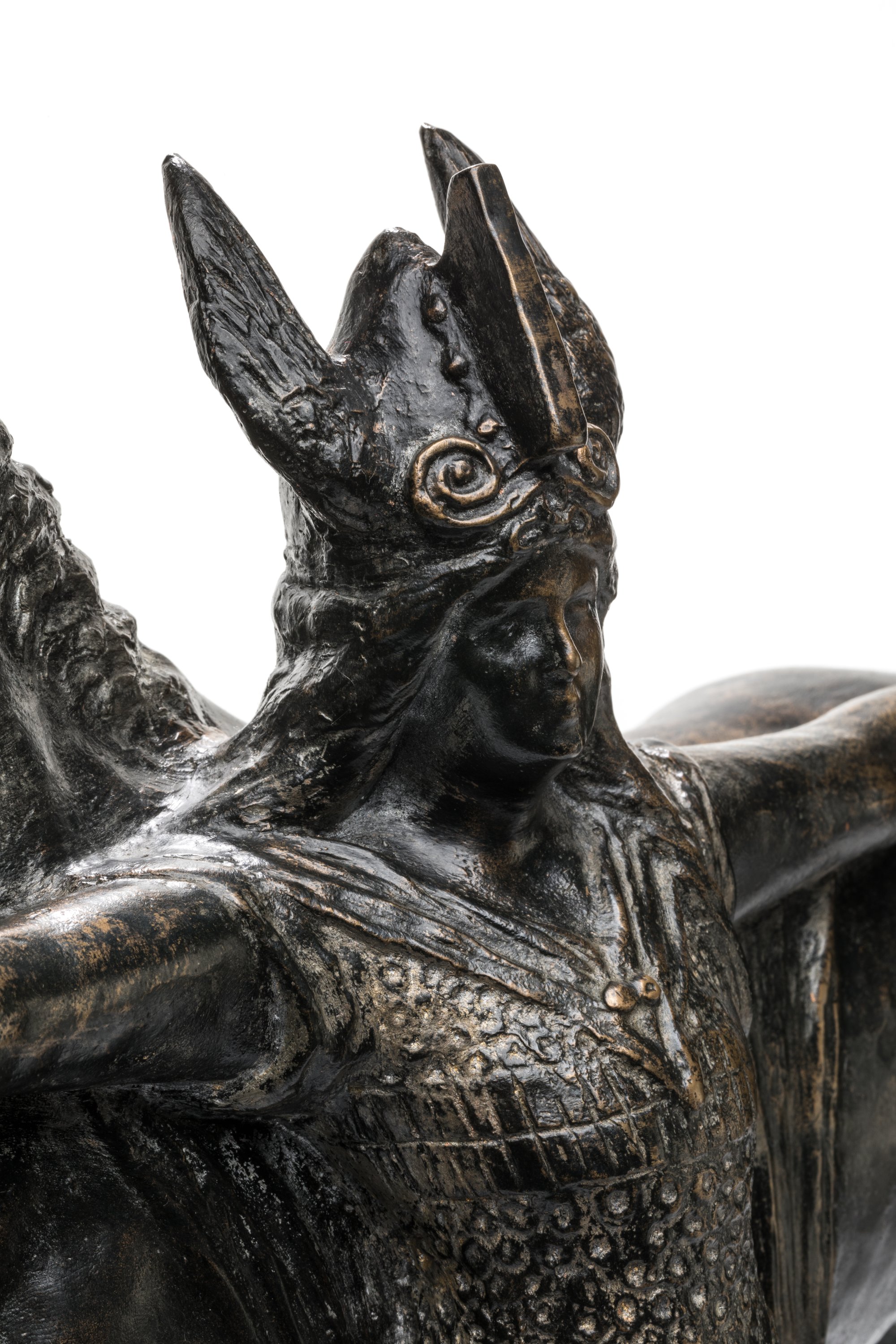 A bronze sculpture by Boleslas Biegas representing opera singer Félia Litvinne as Brünnhilde. Designed in 1911. Signed and numbered 2/8.