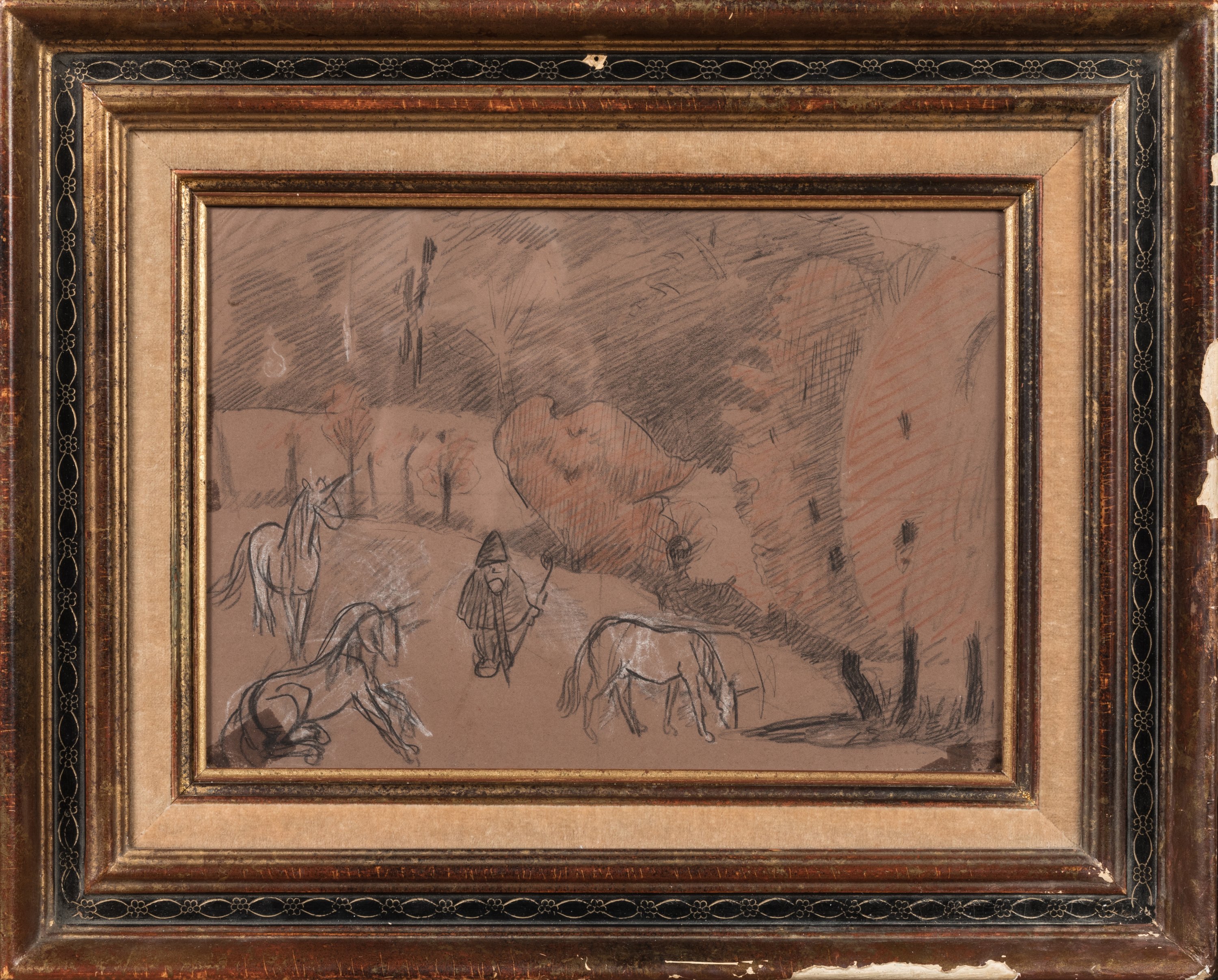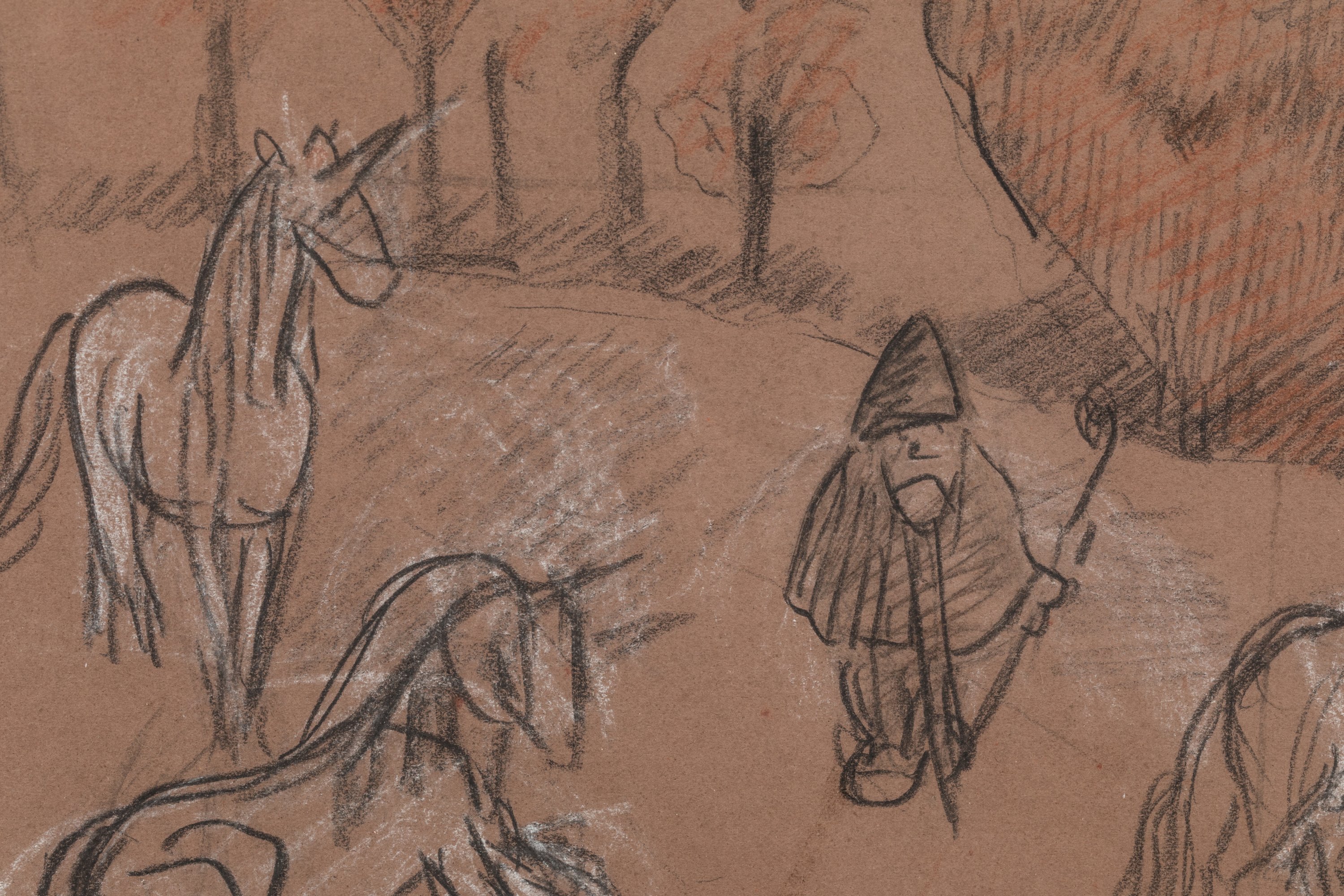 JOINT : Étude préparatoire, crayons et rehauts de couleurs. Haut. 25 Larg. 33 cm.