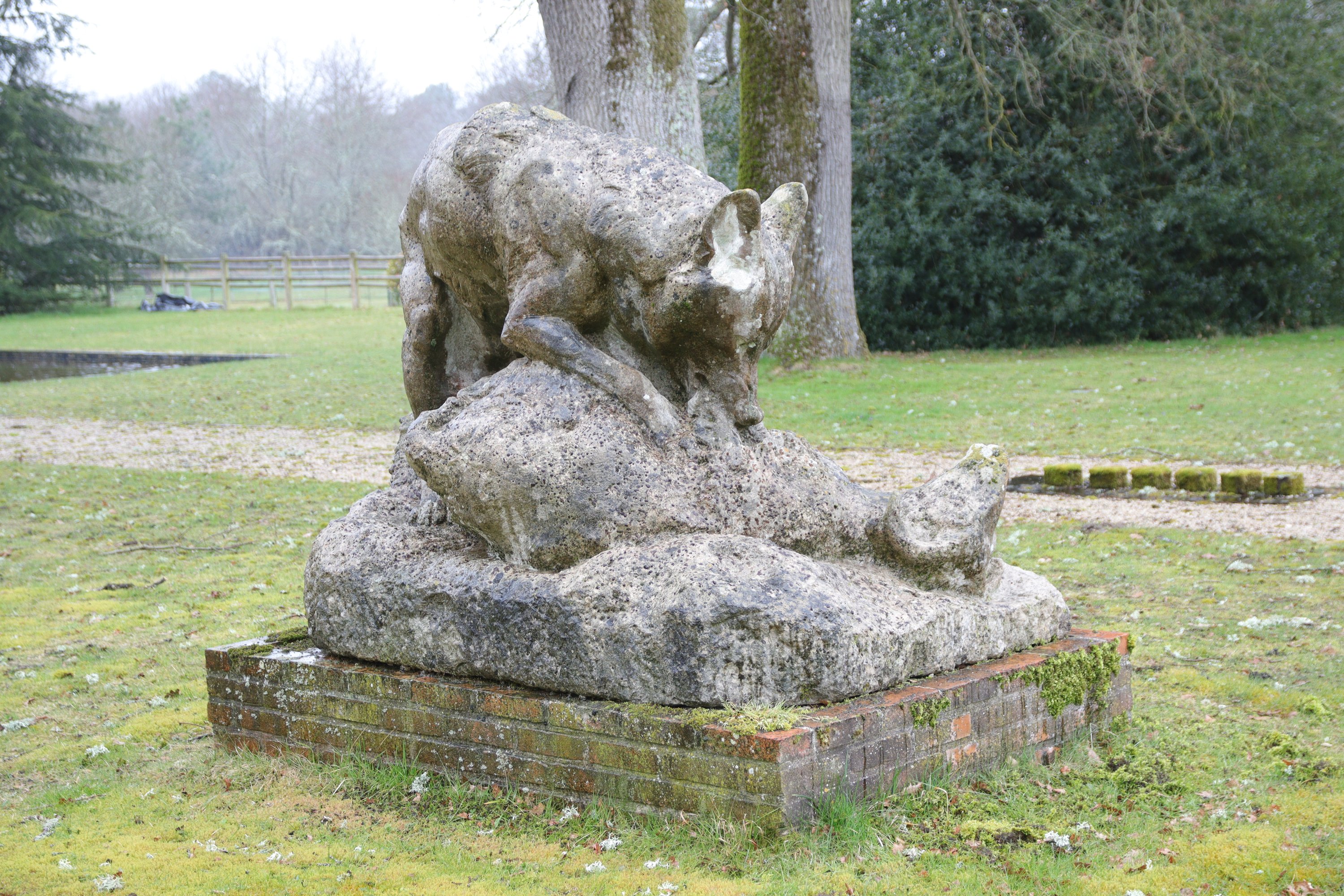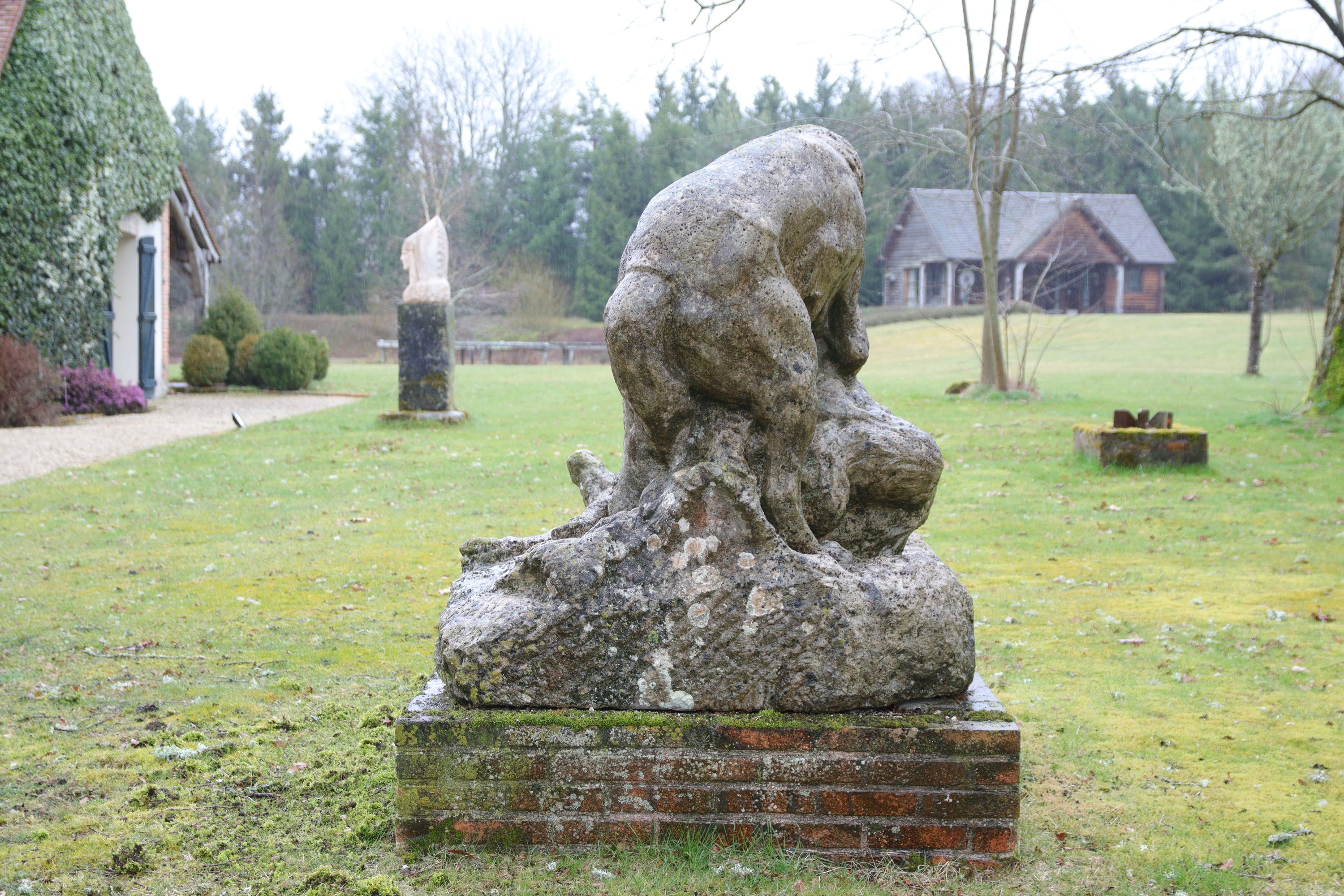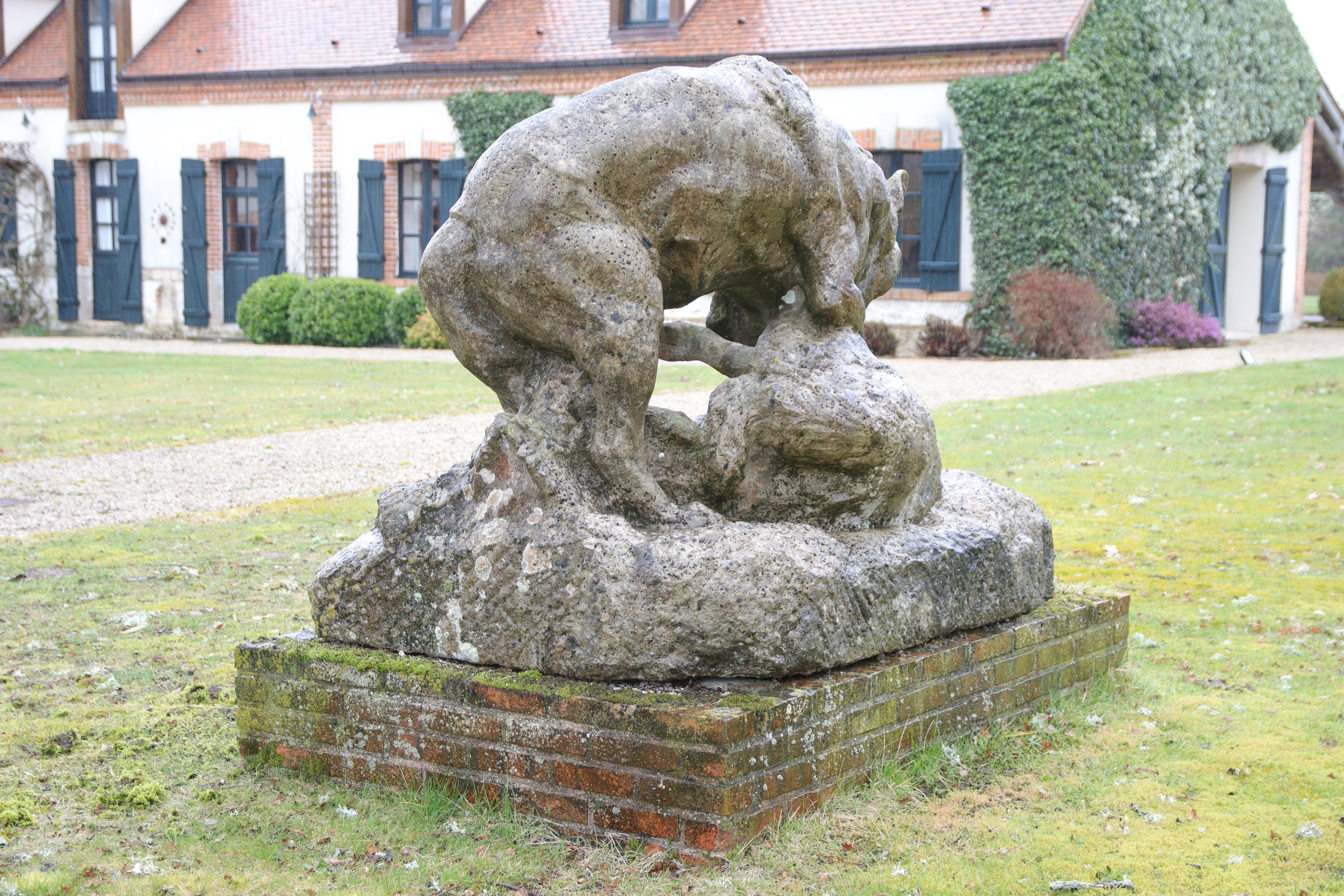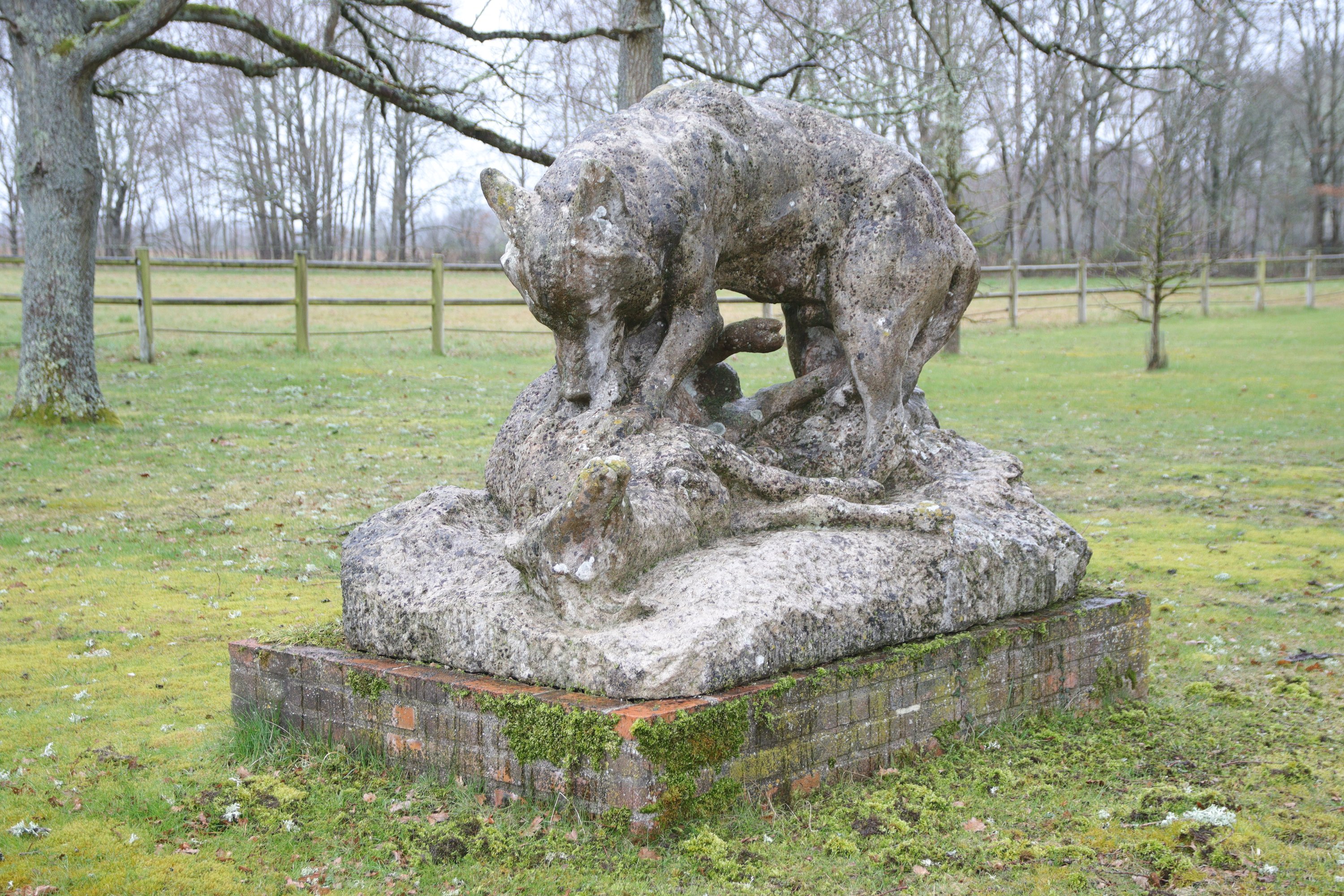 A 1920 sculpture by René Paris depicting "The wolf and the bizet sheep". Signed and dated.
