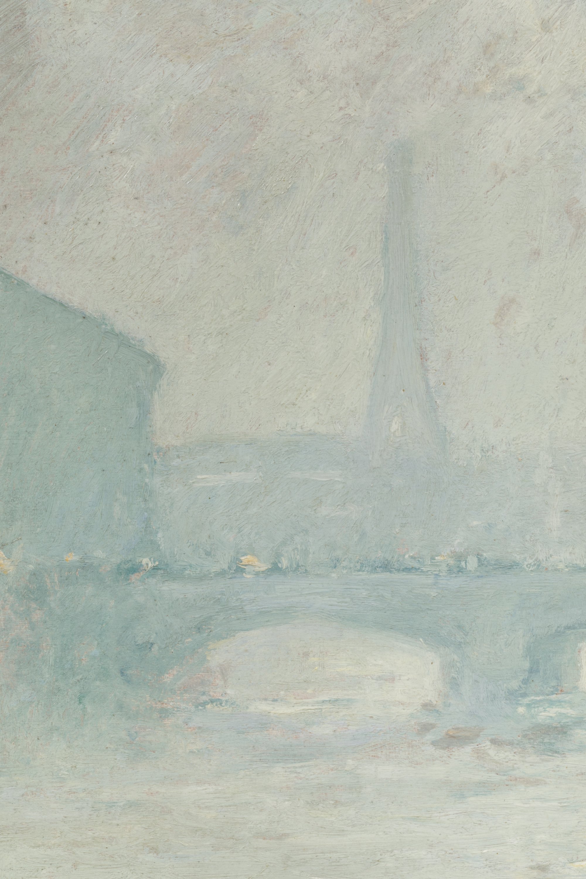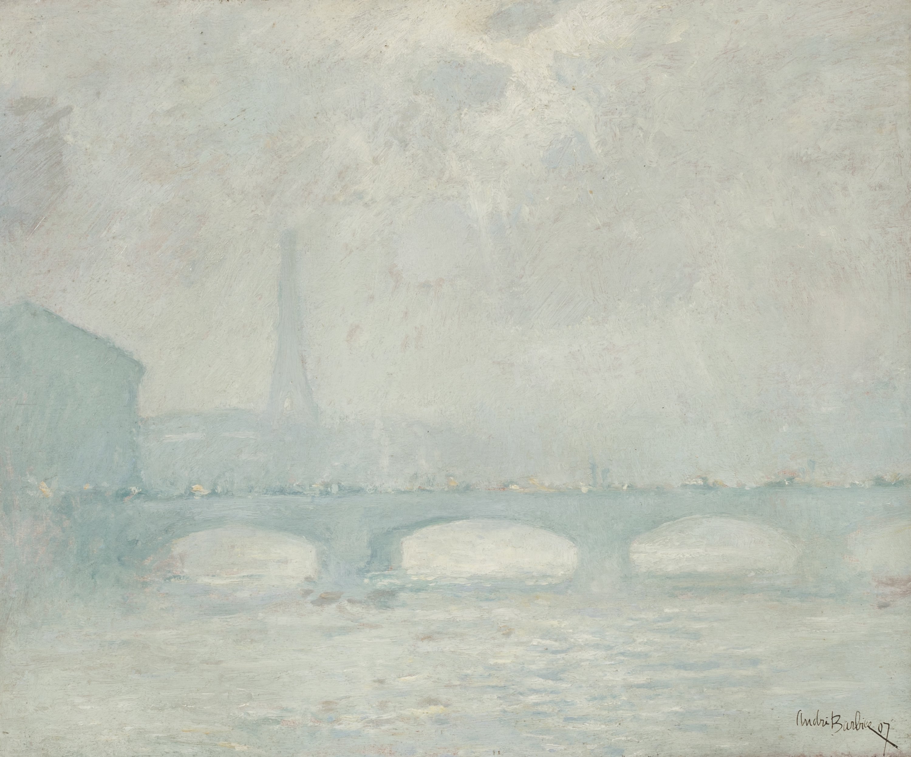 A 20th century painting by André Georges Alfred Barbier depicting the Seine river. Oil on canvas.