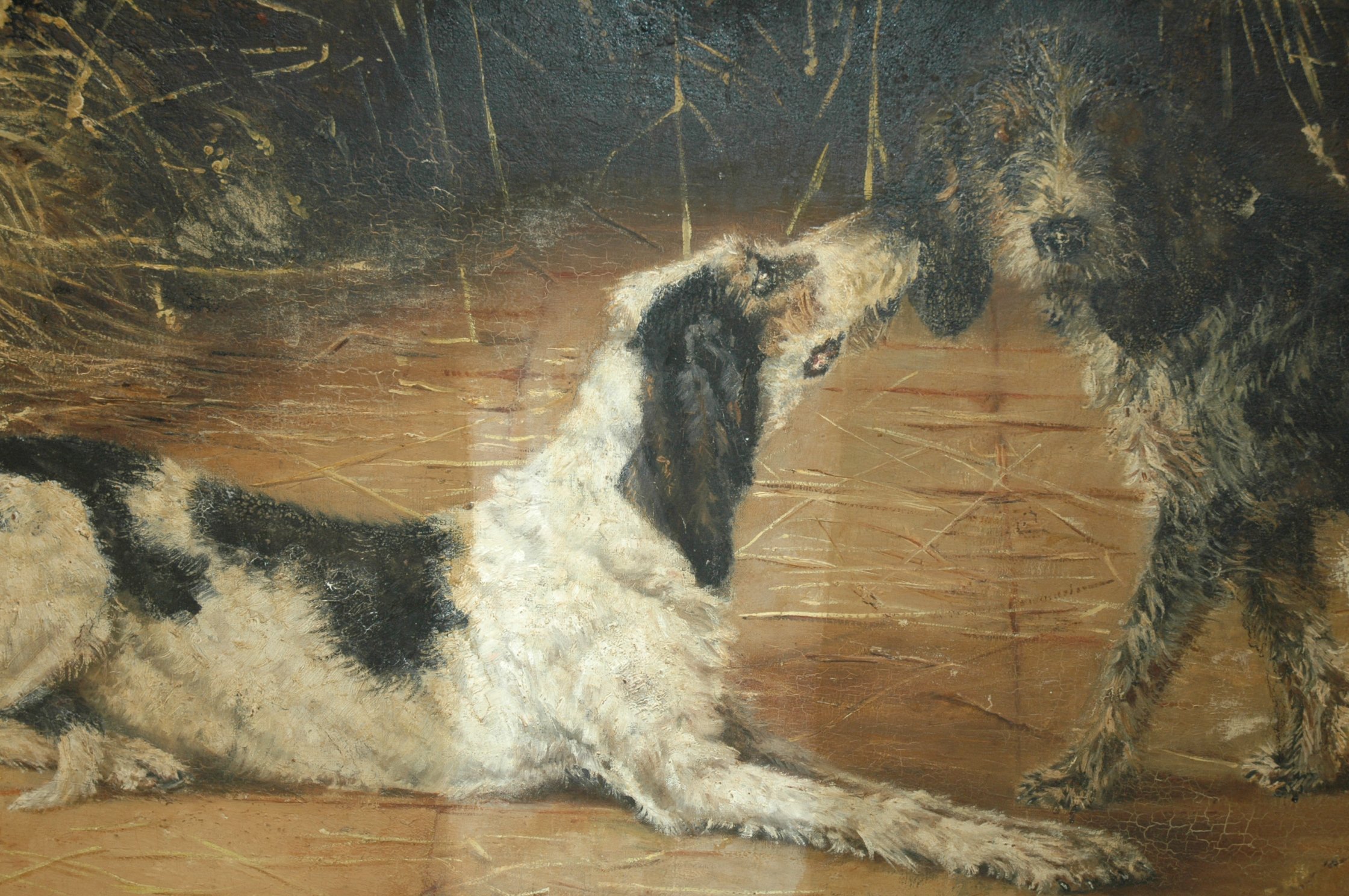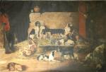 A 1885 painting by Augustine Ricard entitled "After the Hunt". Signed and dated.