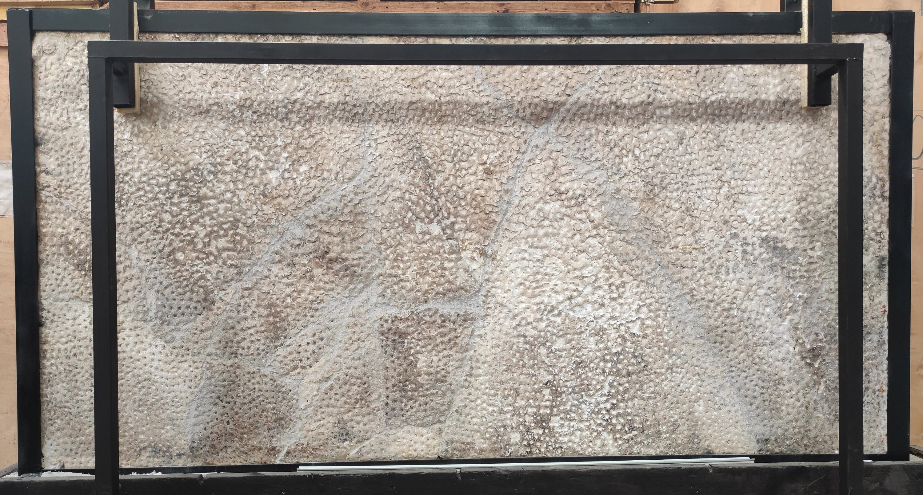 Le panneau a été renforcé par un encadrement métallique afin qu'il puisse être utilisé aisément selon toute disposition.