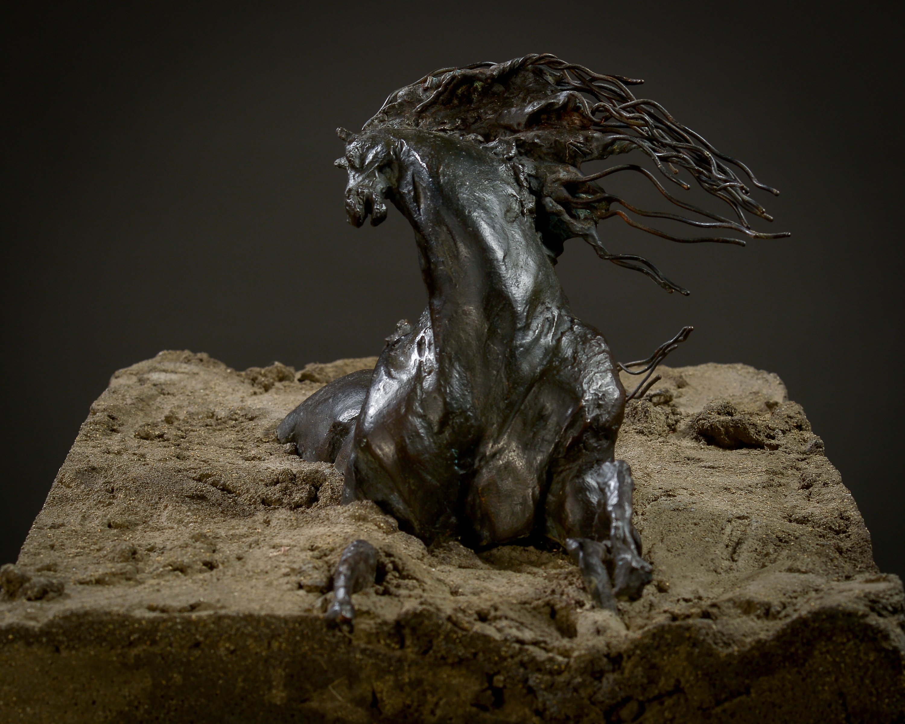 Ciment et bronze à patine brune, signée sur l'épaule.