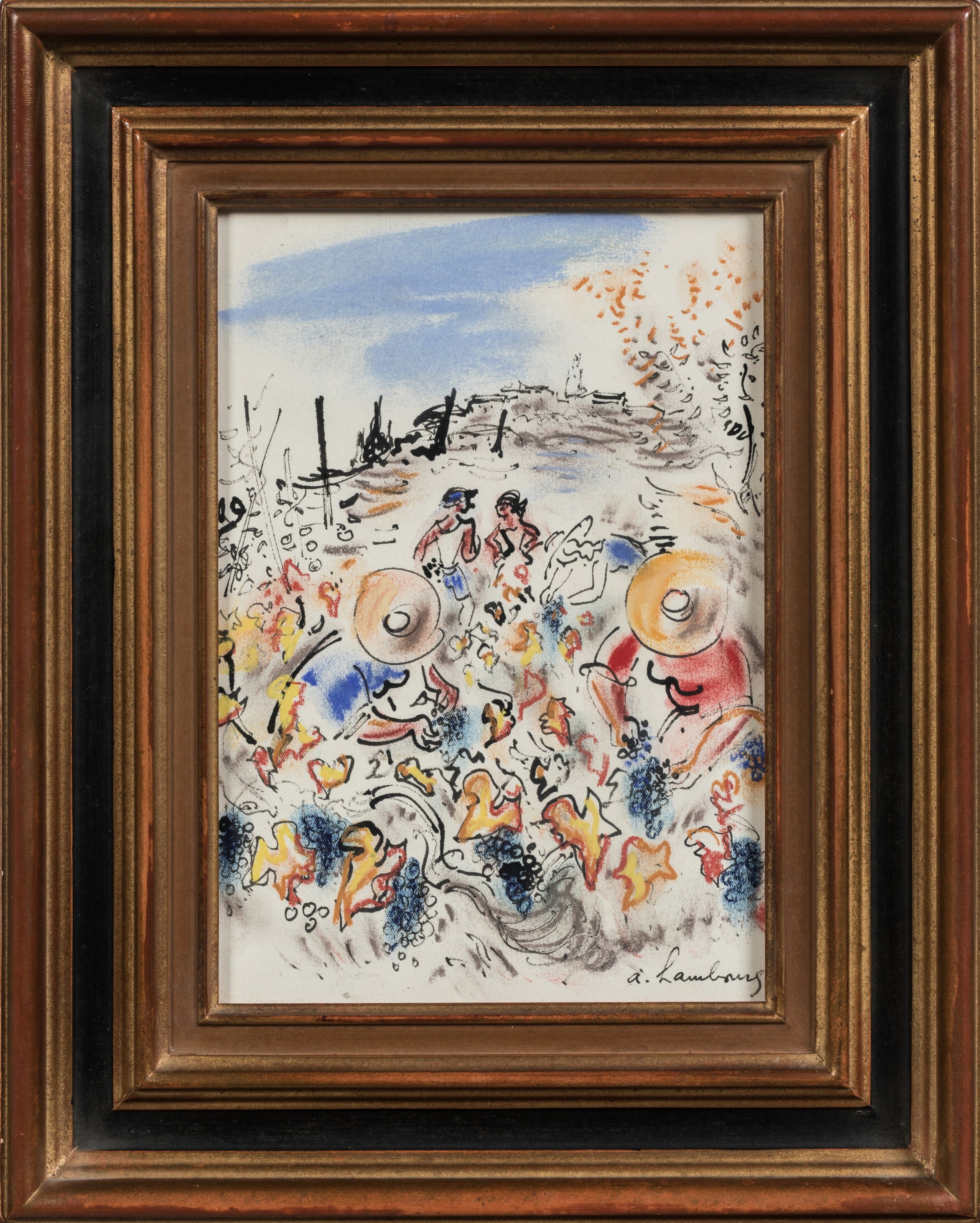 Pastel et encre sur Canson contrecollé sur papier, signé en bas à droite.