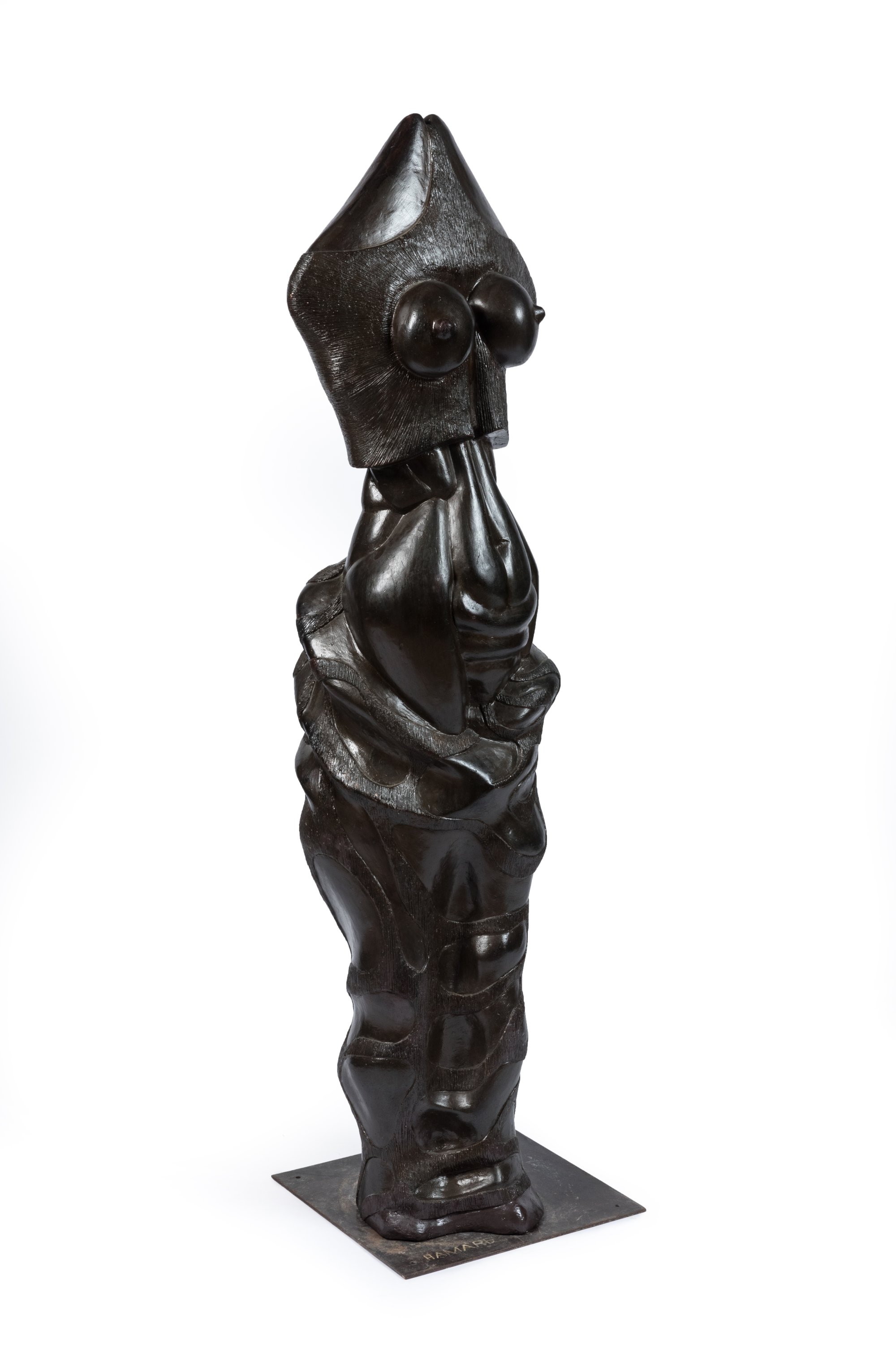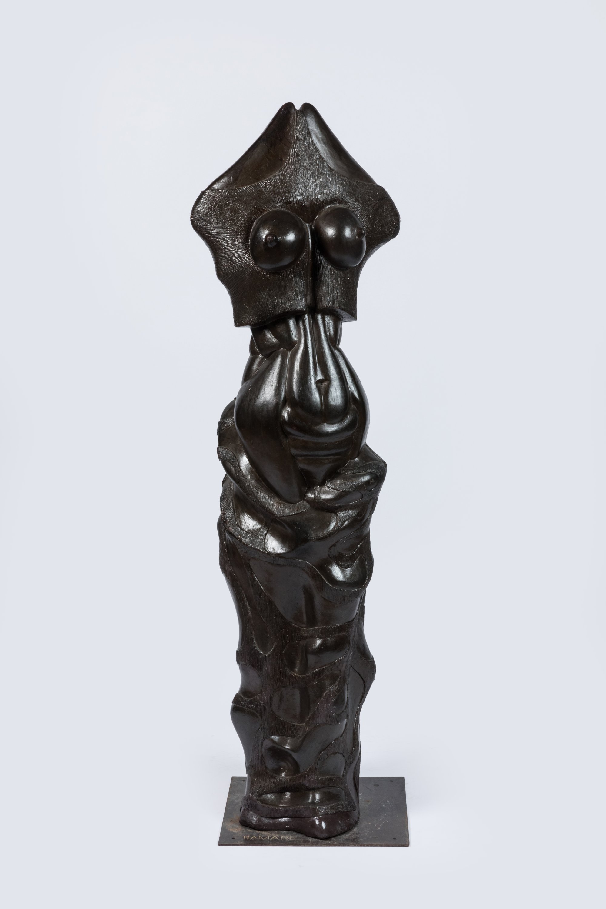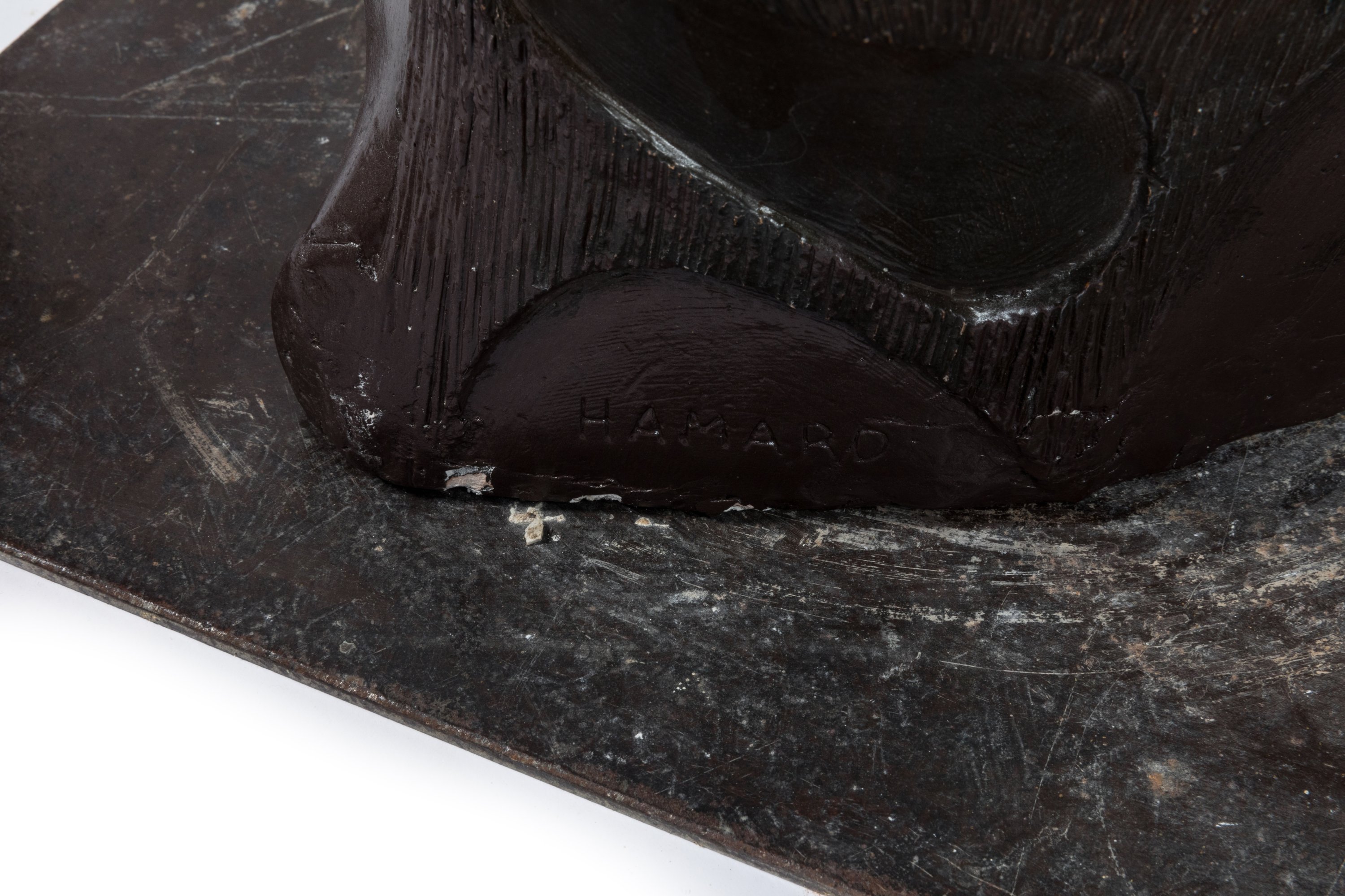 Jean-Jacques Hamard (Français, 1939-2015)VenusPlâtre patiné marron, signé. Platine d'acier signée.Haut....