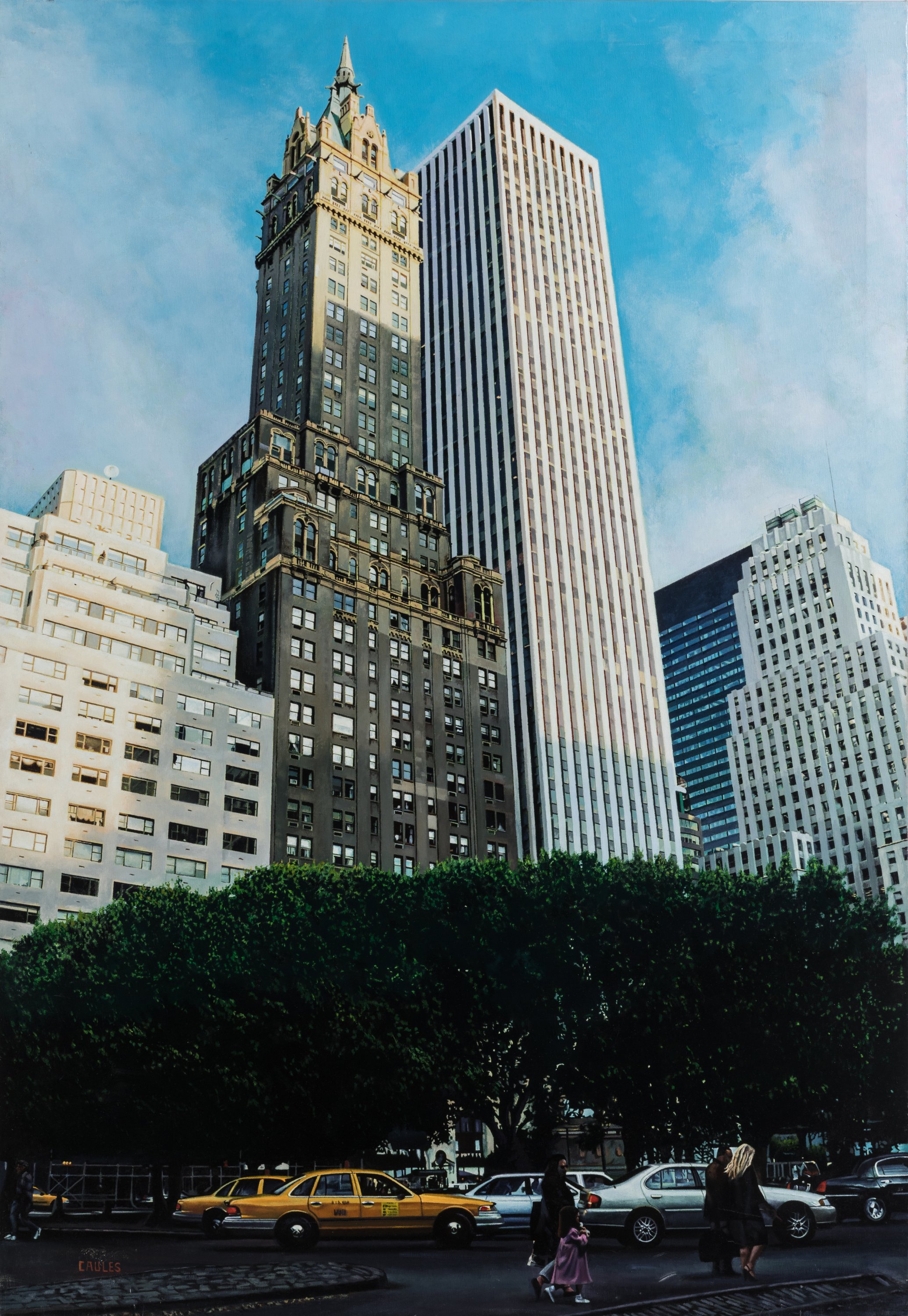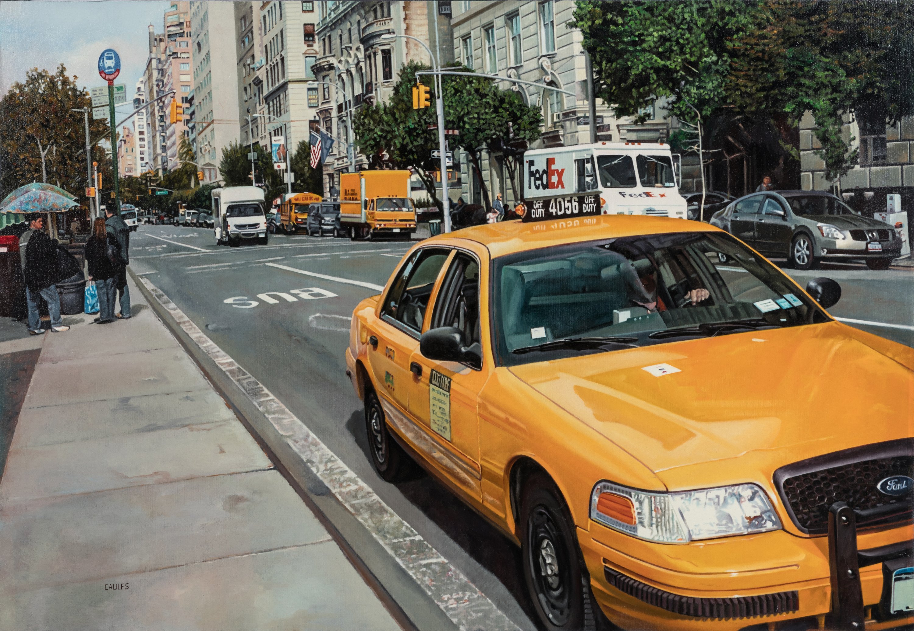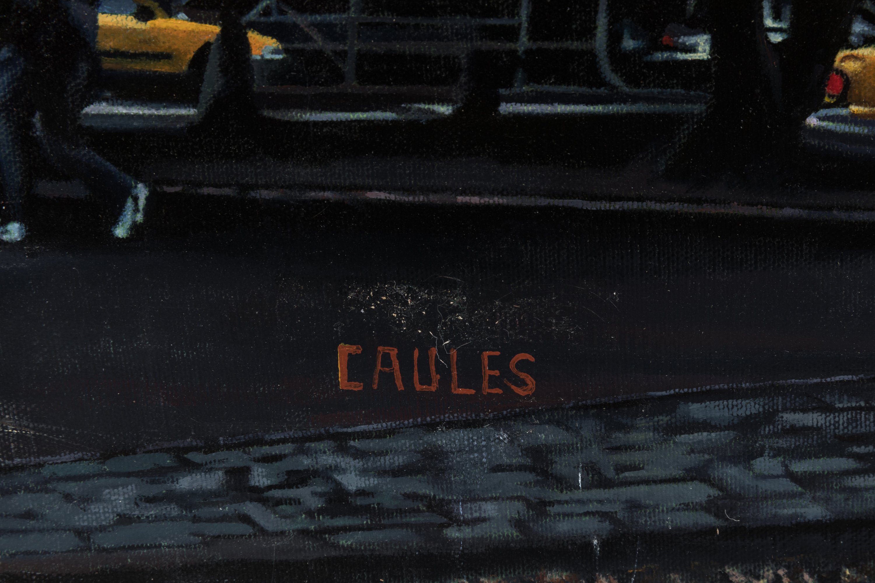 Pedro Caules (Espagnol, né en 1948)Taxi jauneRue, voitures et tours...