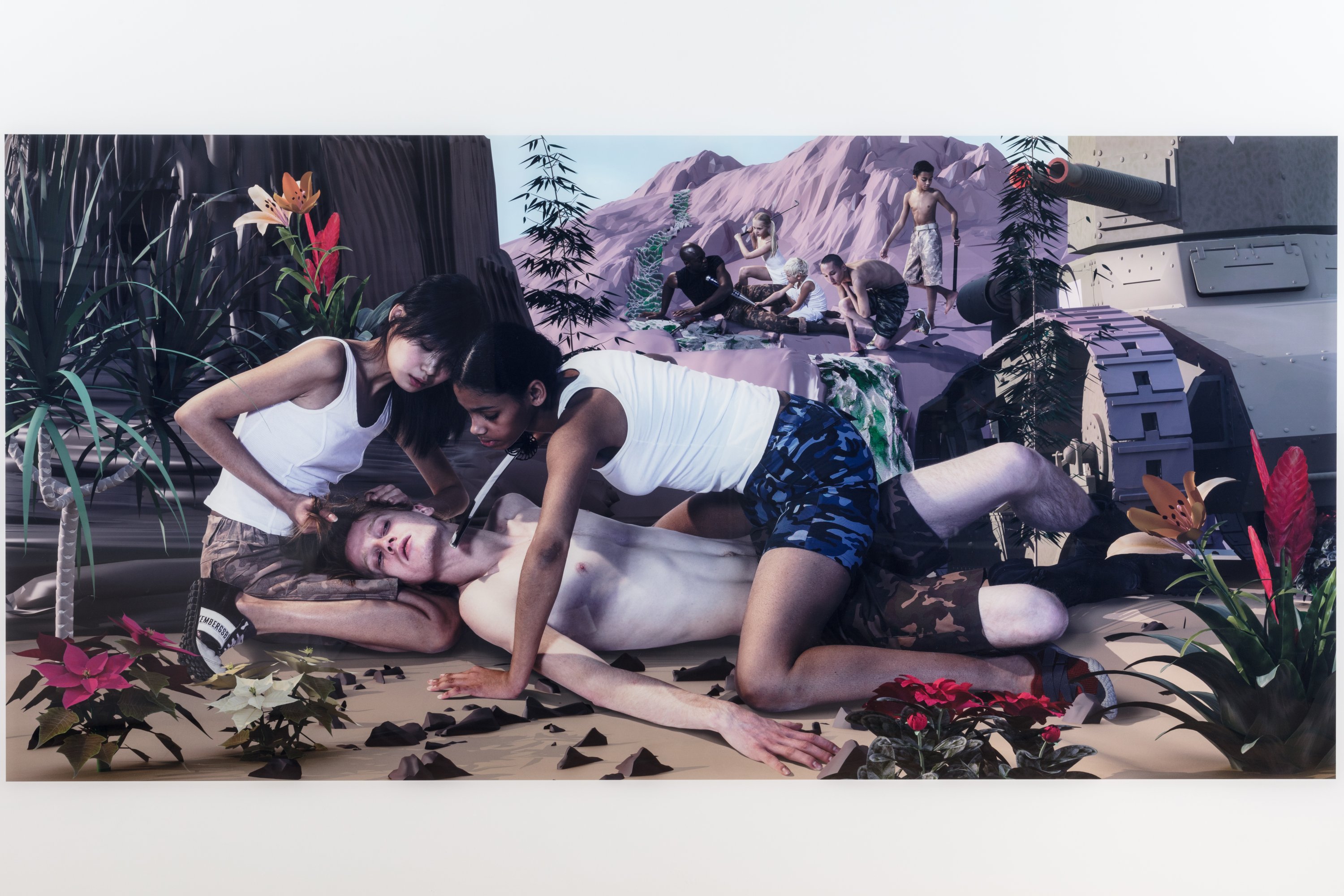 AES+F est un groupe d'artistes contemporains russes composé depuis 1987 de Tatiana Arzamasova (née en 1955), Lev Evzovich (né en 1958), Evgeny Svyatsky (né en 1957), rejoints en 1997 par Vladimir Fridkes (né en 1956). Le quatuor travaille à partir de la photographie, l'art graphique et vidéo, tout en conservant les disciplines traditionnelles comme la peinture et la sculpture. Ils vivaient et travaillaient à Moscou jusqu'au début du conflit en Ukraine. Exposés dans toutes les manifestations internationales et représentant leur pays au pavillon russe lors de la Biennale de Venise 2007, ils sont entrés en dissidence et ont pris le chemin de l'exil, s'installant à Berlin en mars 2022. Leur série "Last Riot", précisément créée pour la Biennale de Venise, résonne de façon prémonitoire à l'heure du conflit en Ukraine.