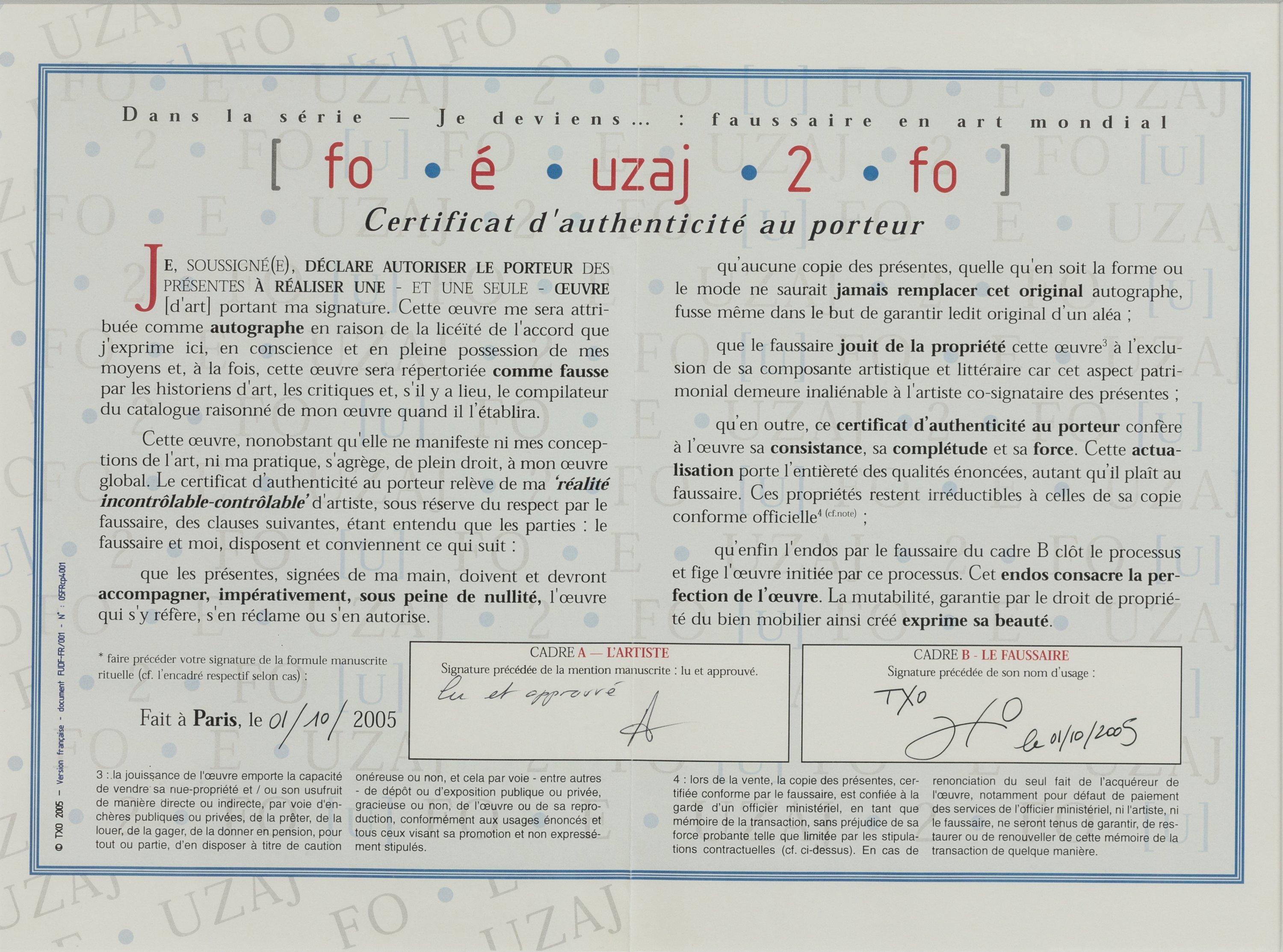 "Faux et usage de faux", 2005