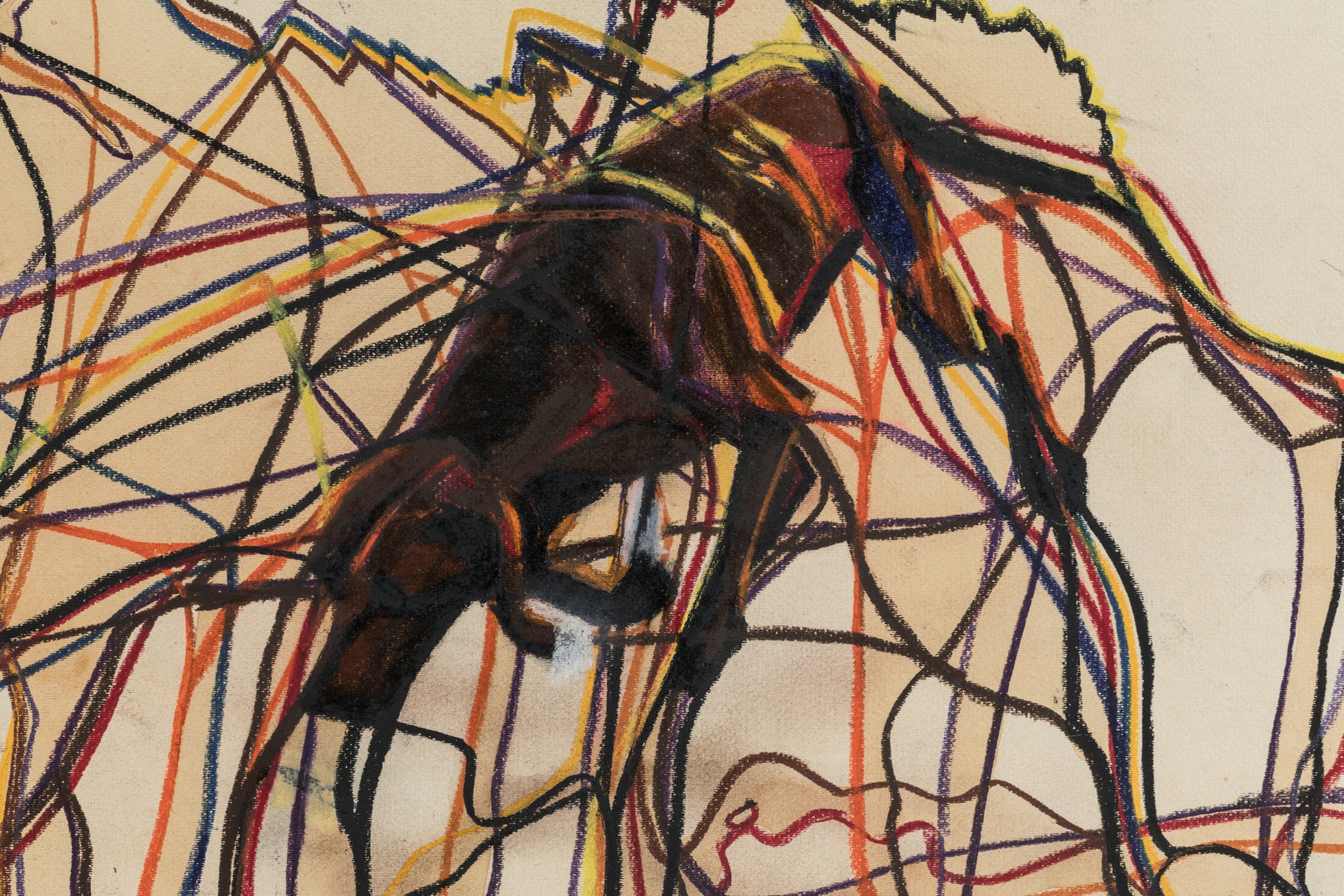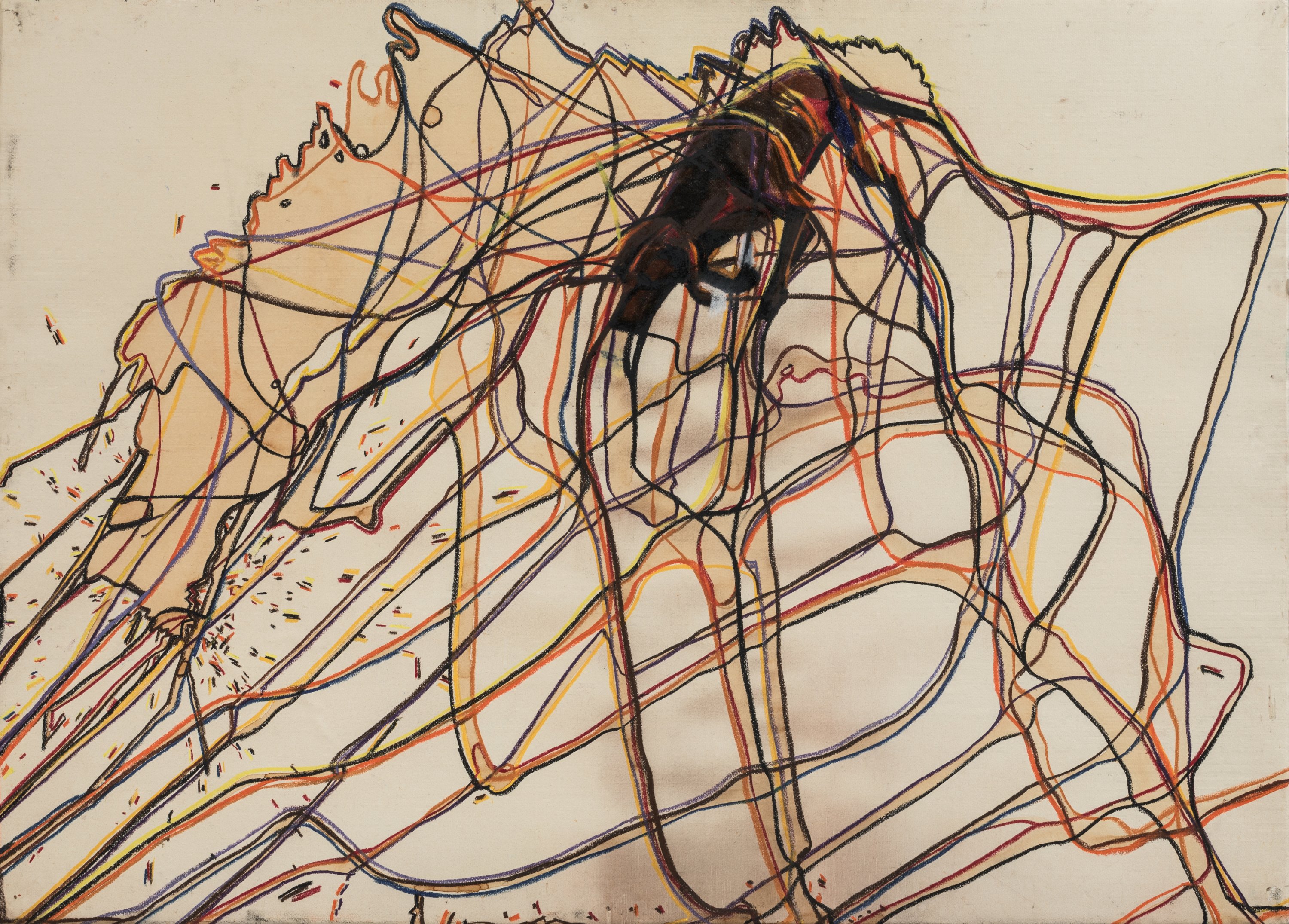 Pastel et café sur papier marouflé sur toile, signé et titré au dos, de la série des "rhizomes pastel-cafés".