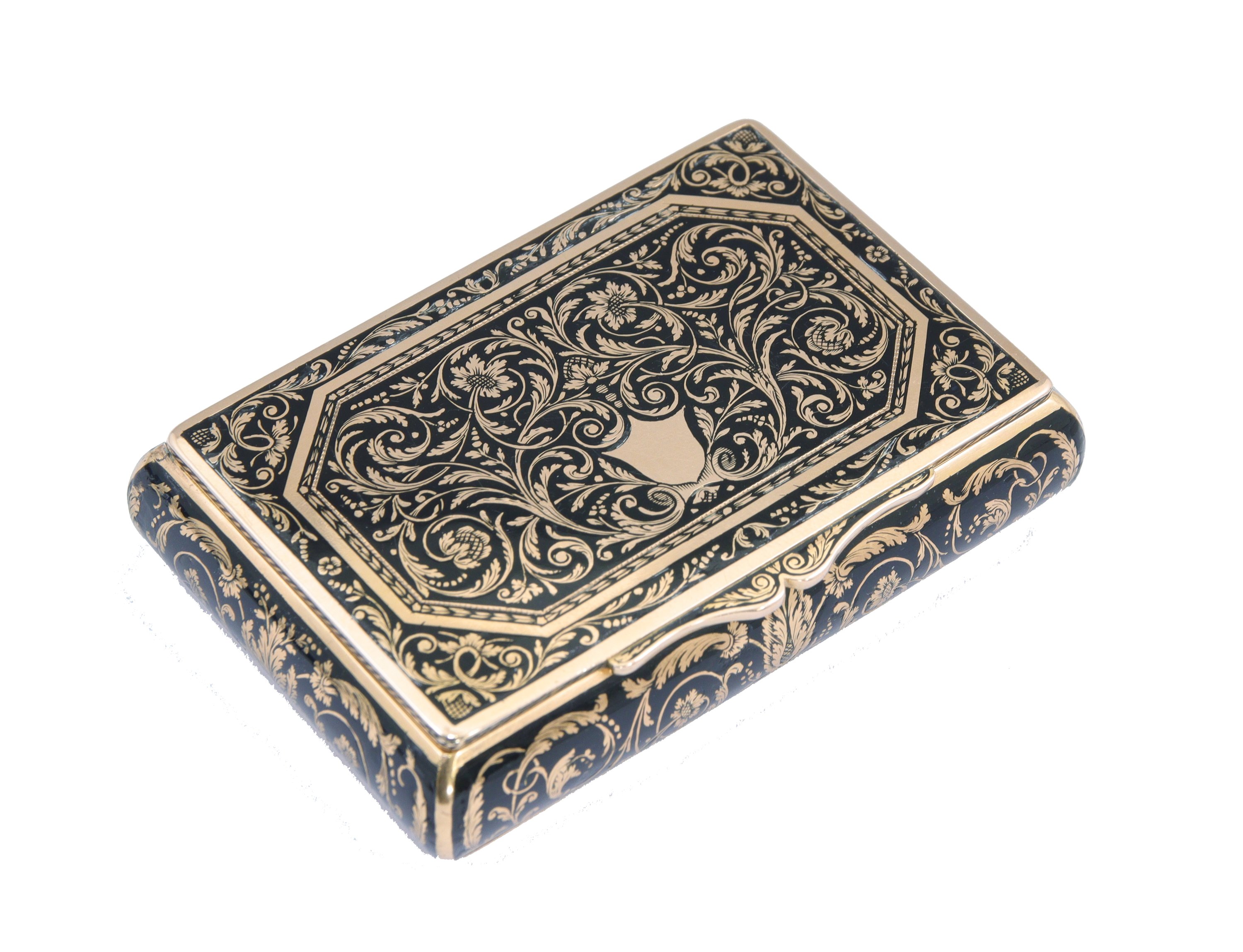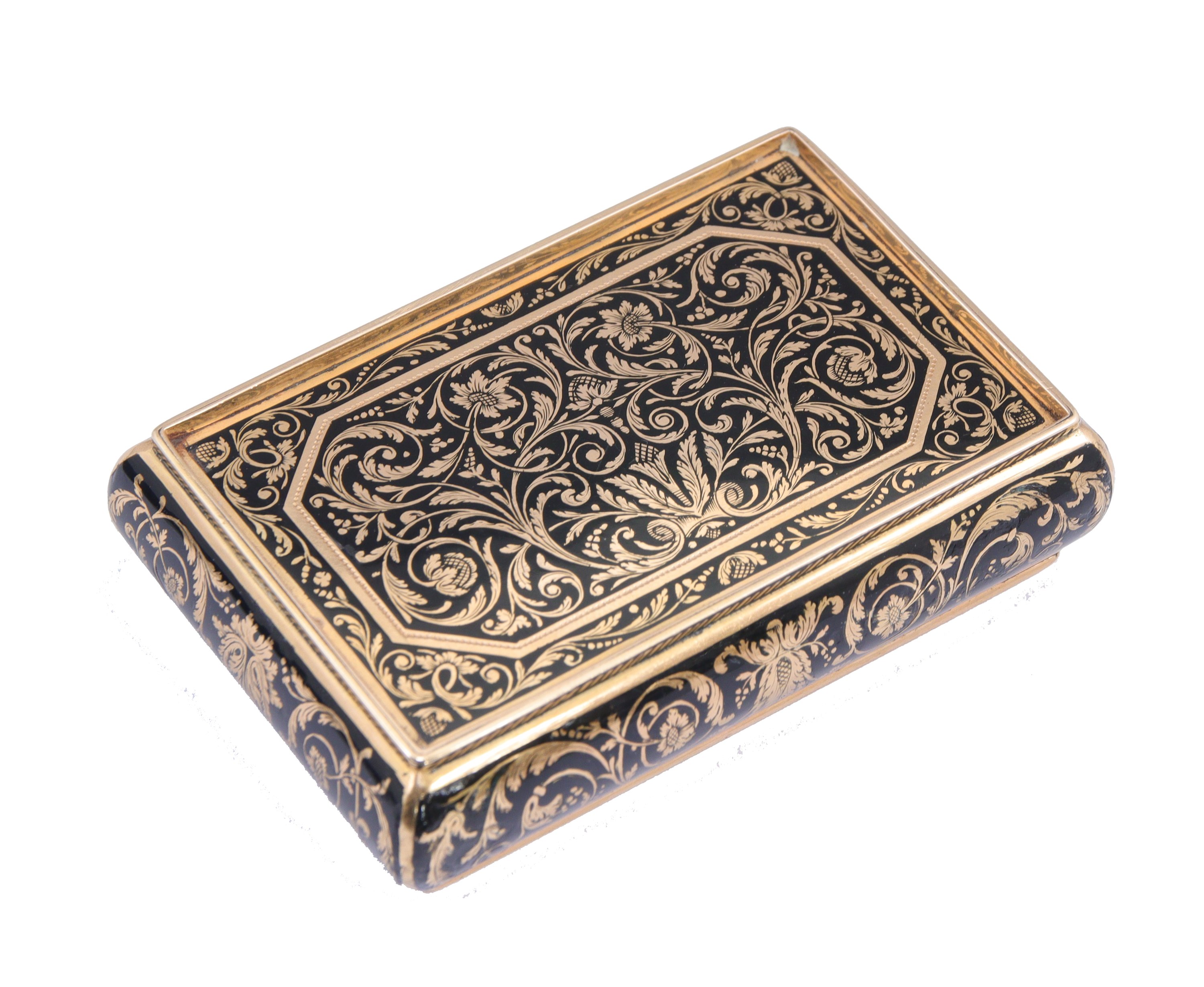A small 19th century rectangular box in niello-filled 18k yellow gold.