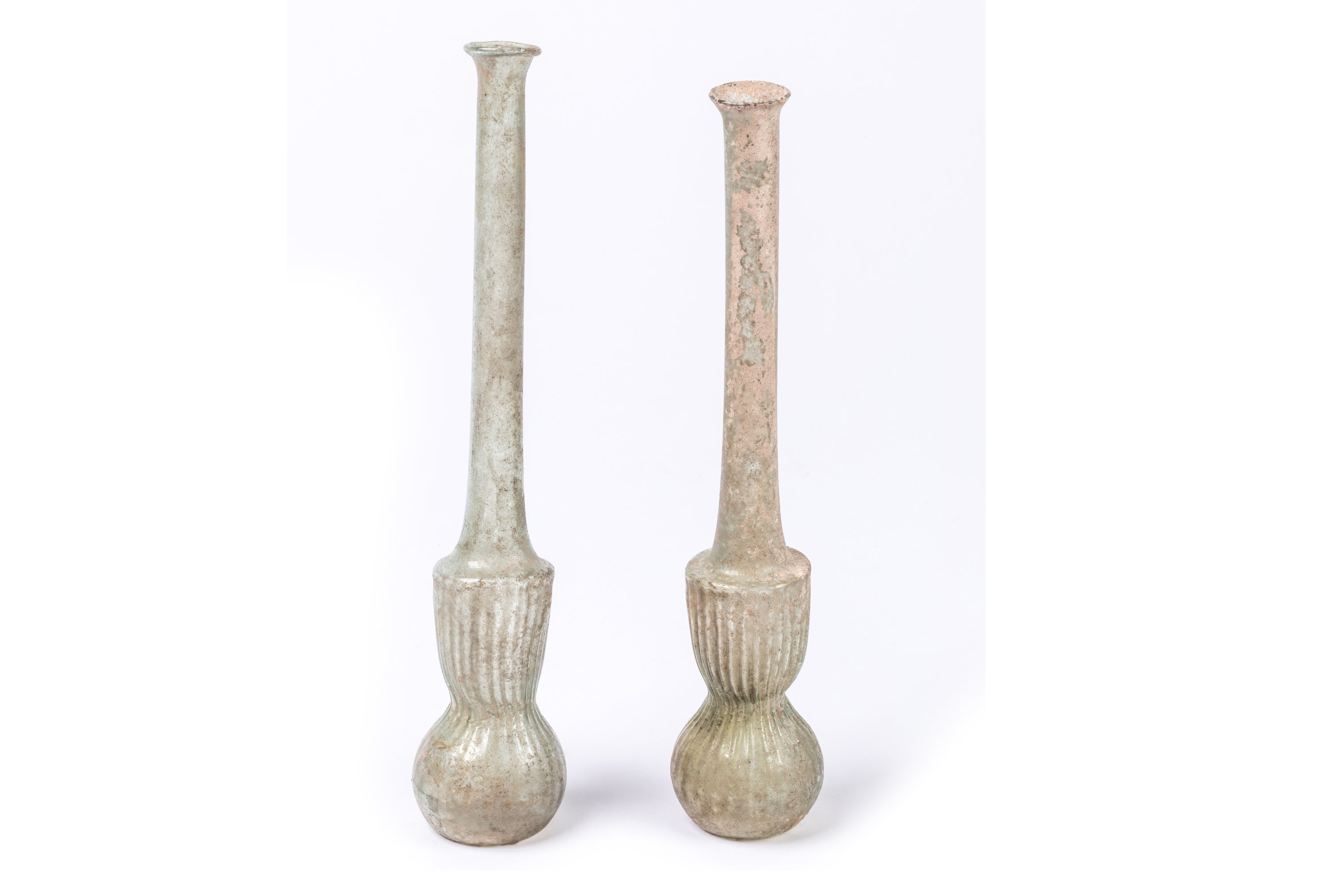 A rare pair of 1st-2nd century A.D Western Mediterranean glass balsam jars.