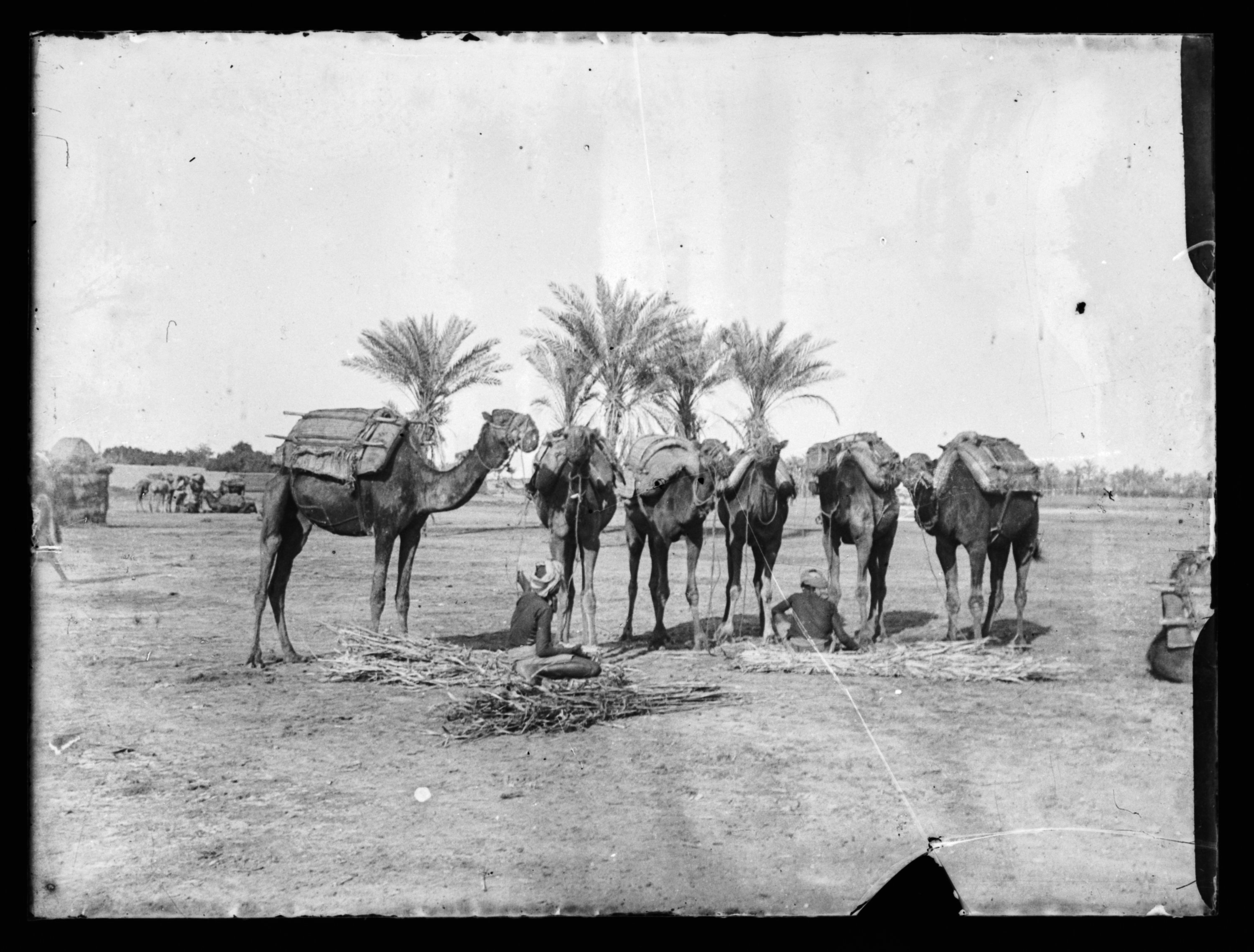 - une boîte au format 4,5x6 : six plaques dans des pochettes, certaines comportant des indications manuscrites établissant que ces clichés ont été pris début 1911 à l’occasion du lancement des travaux de la voie ferrée entre Hodeidah et Sanaa au Yémen, auxquels Paul Gaudin a manifestement collaboré.