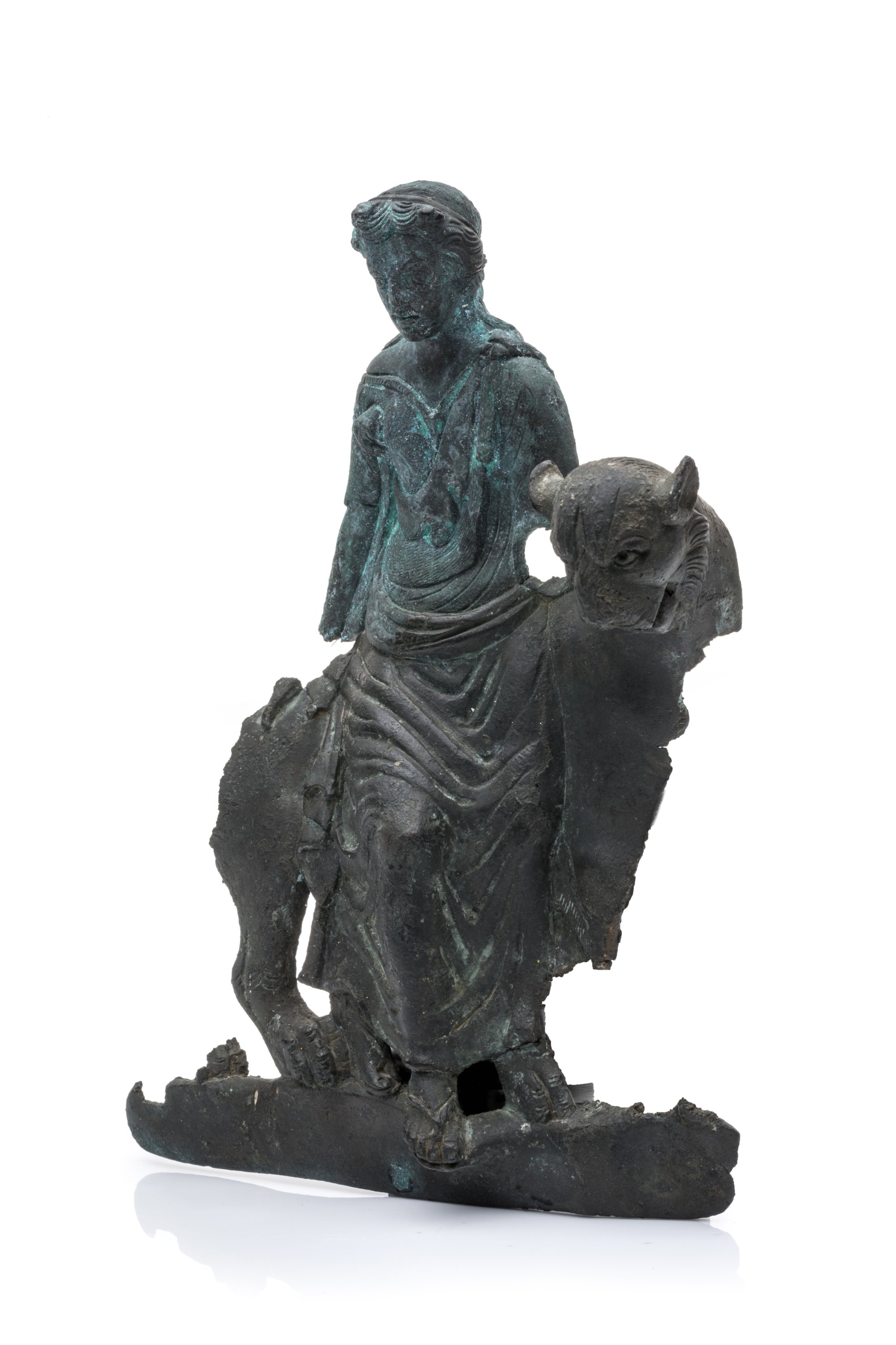 en bronze. Applique figurant en relief l'animal du dieu Dionysos.