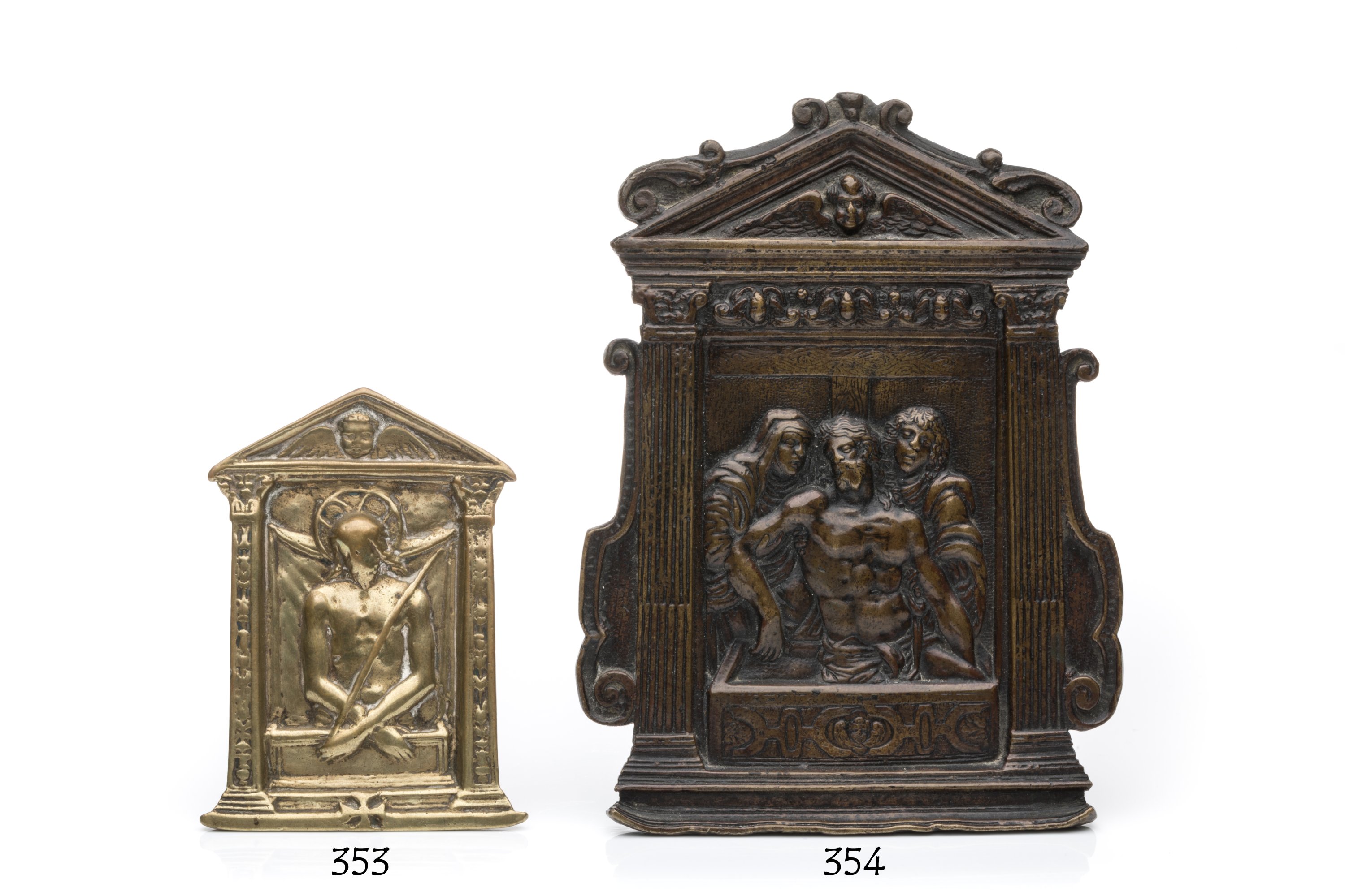 An early 16th century Italian bronze pax. After a sculpture by Moderno.
