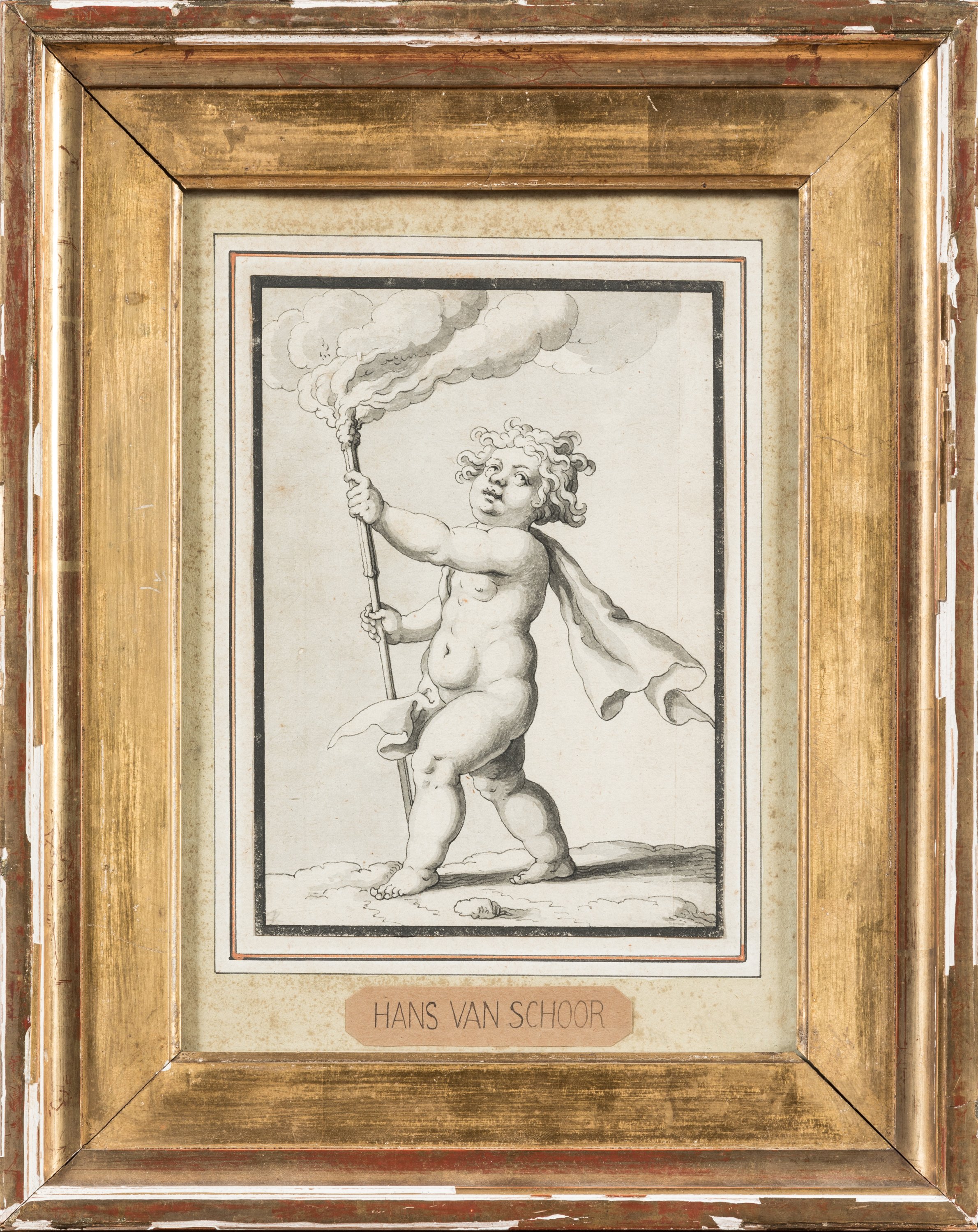 A 17th century German school drawing attributed to Hans Van Schoor. Quill and black ink, grey wash.