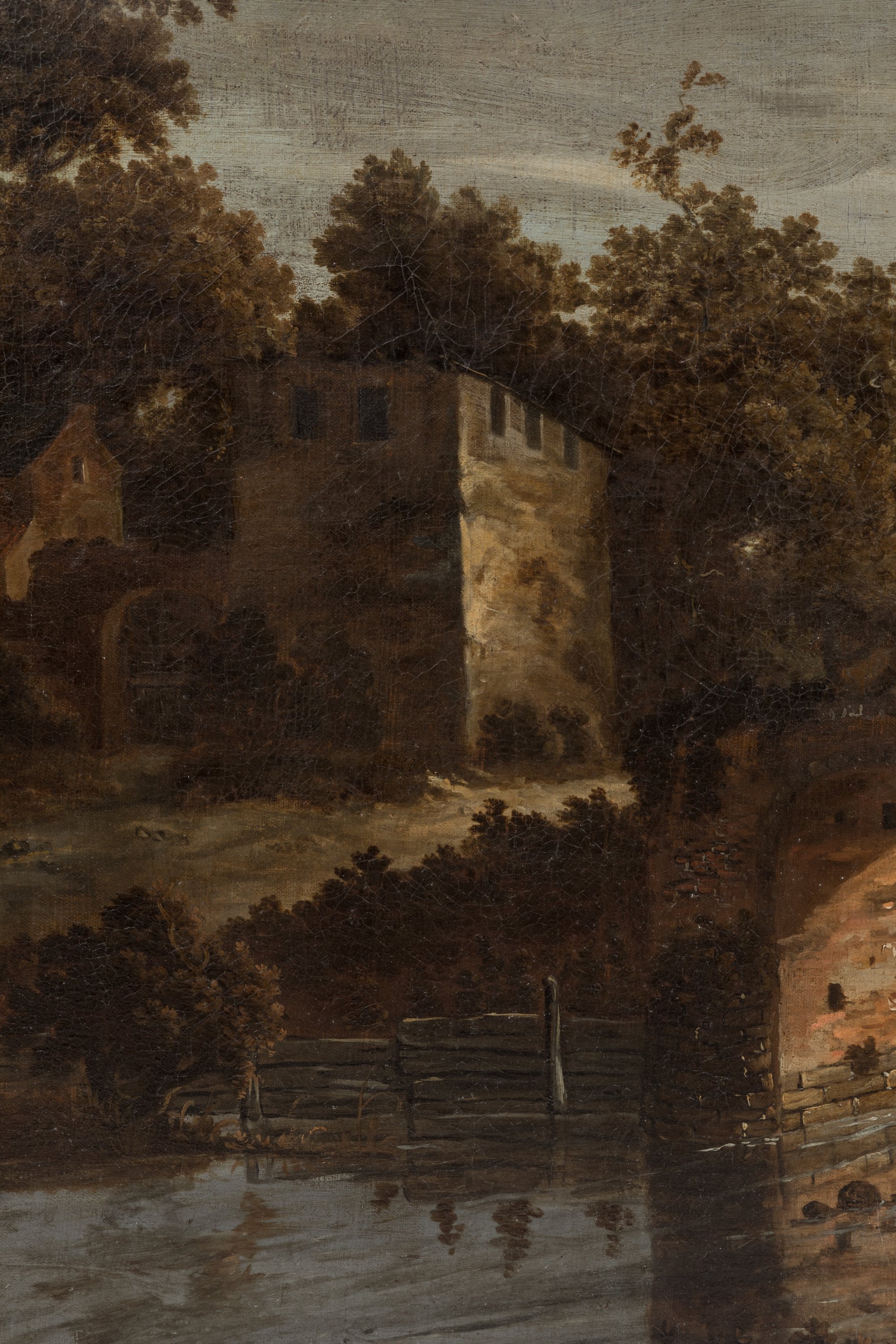 A 17th century painting attributed to Cornelis Gerritz Decker and depicting a bridge crossing.