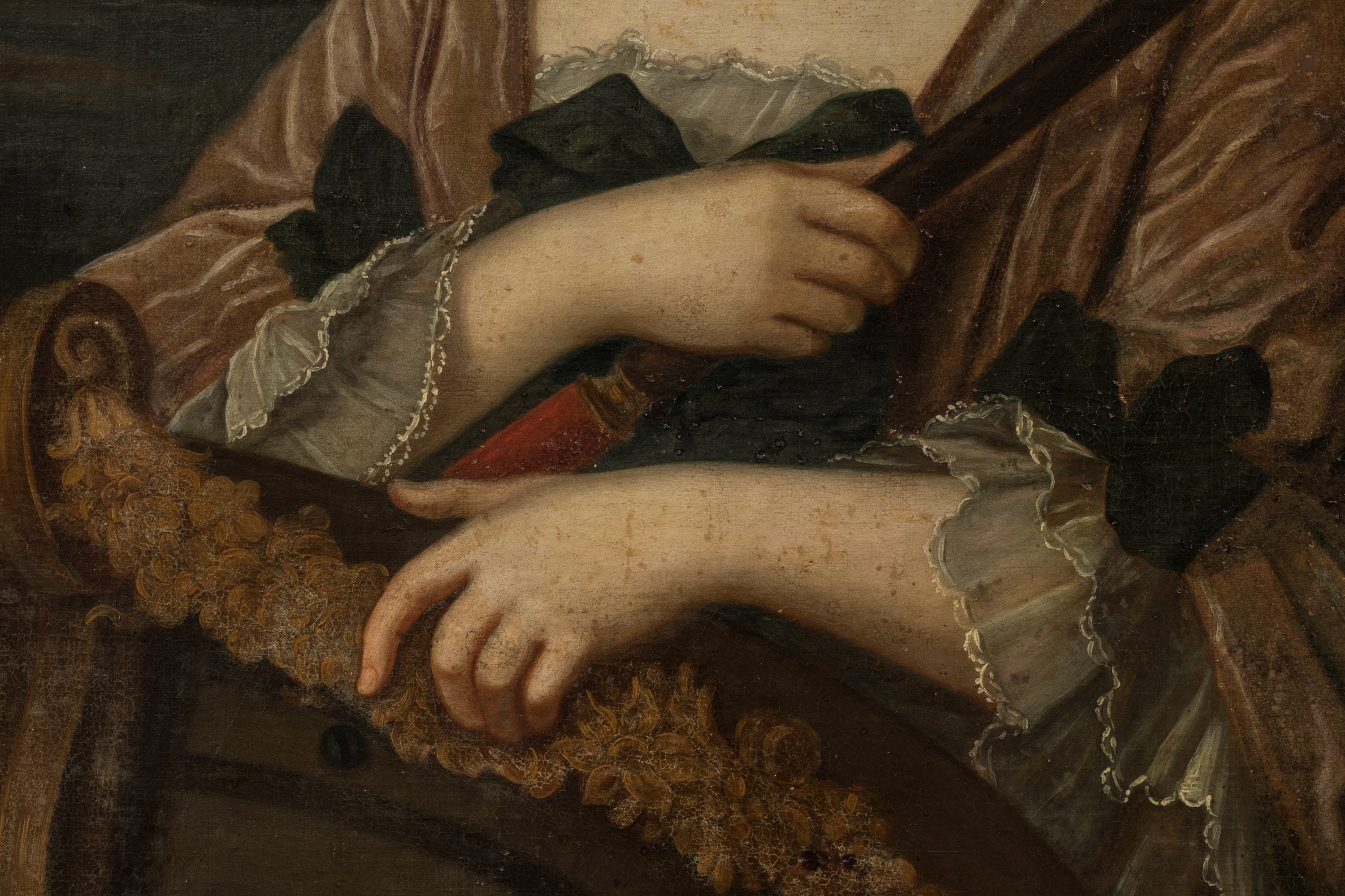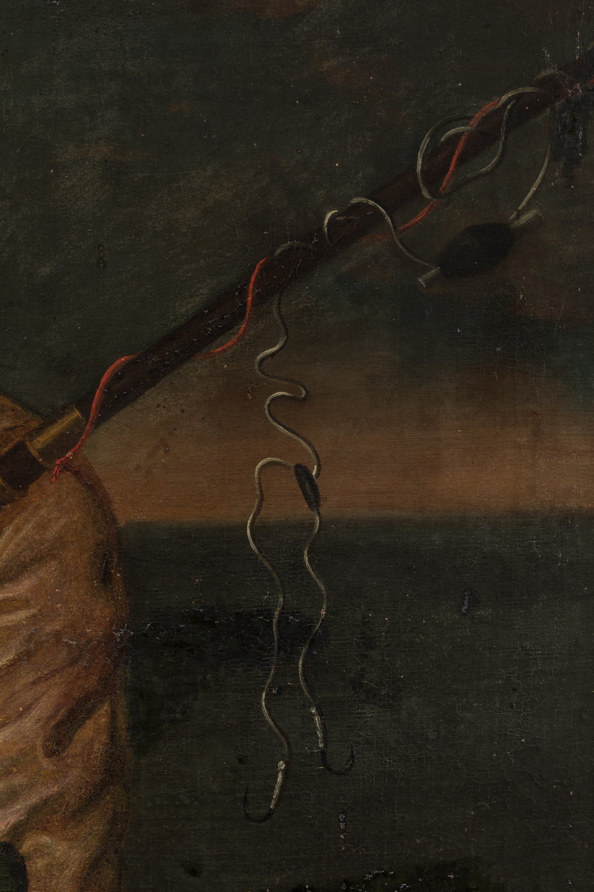 A 18th century portrait of a lady holding a fishing rod in a boat, attributed to Donatien Nonotte.
