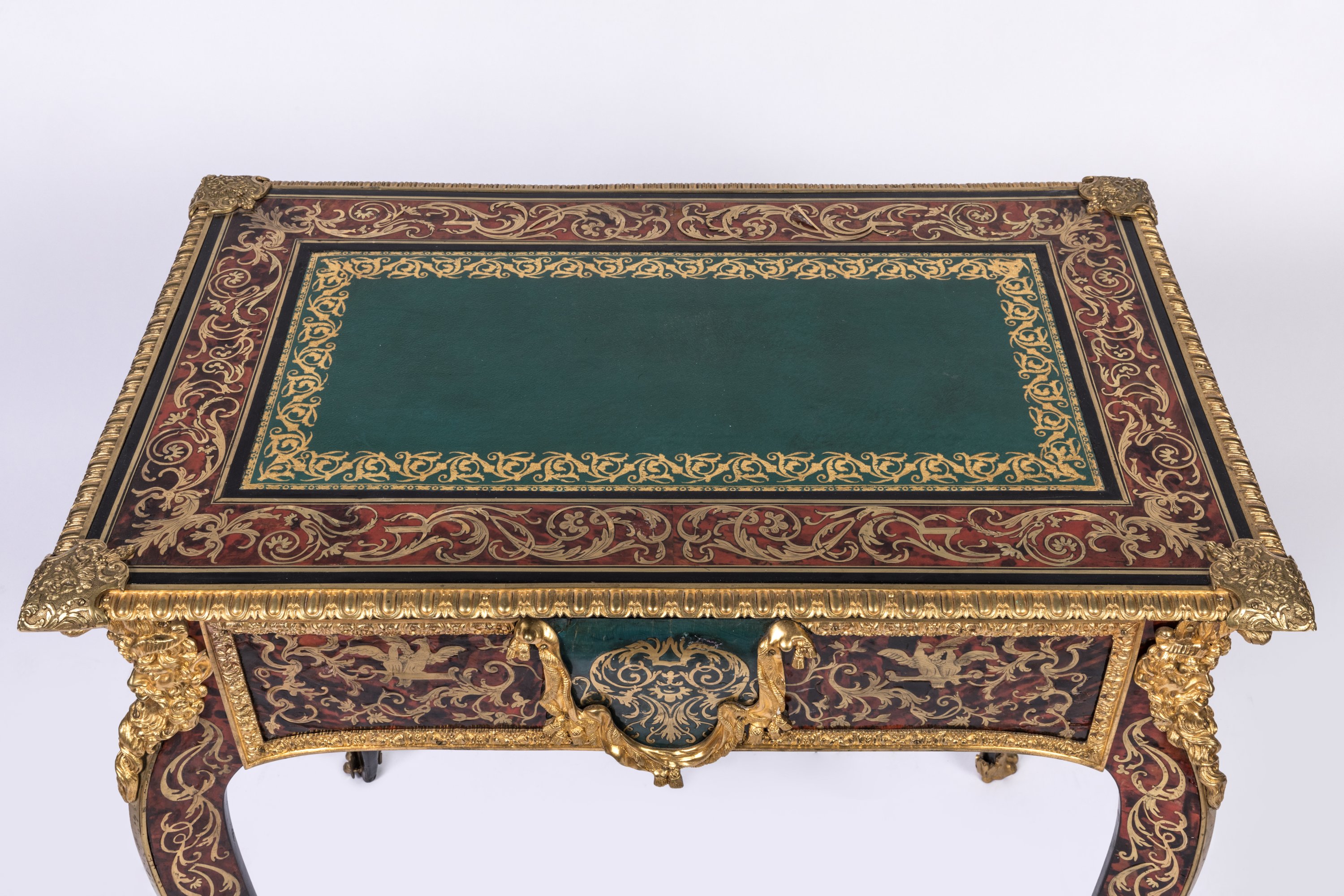 A Louis XIV-style table desk with green horn and "Boulle" inlays. Bronze ornamentation, arched feet. Napoleon III period.