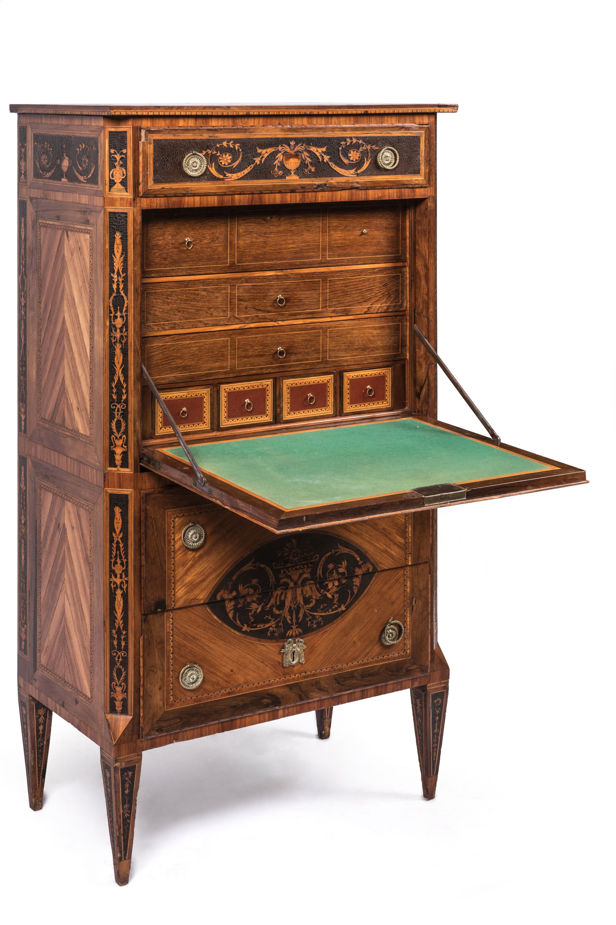 A late 18th-early 19th Century writing desk attributed to Giuseppe Maggiolini. Veneer marquetry and leather inlays.