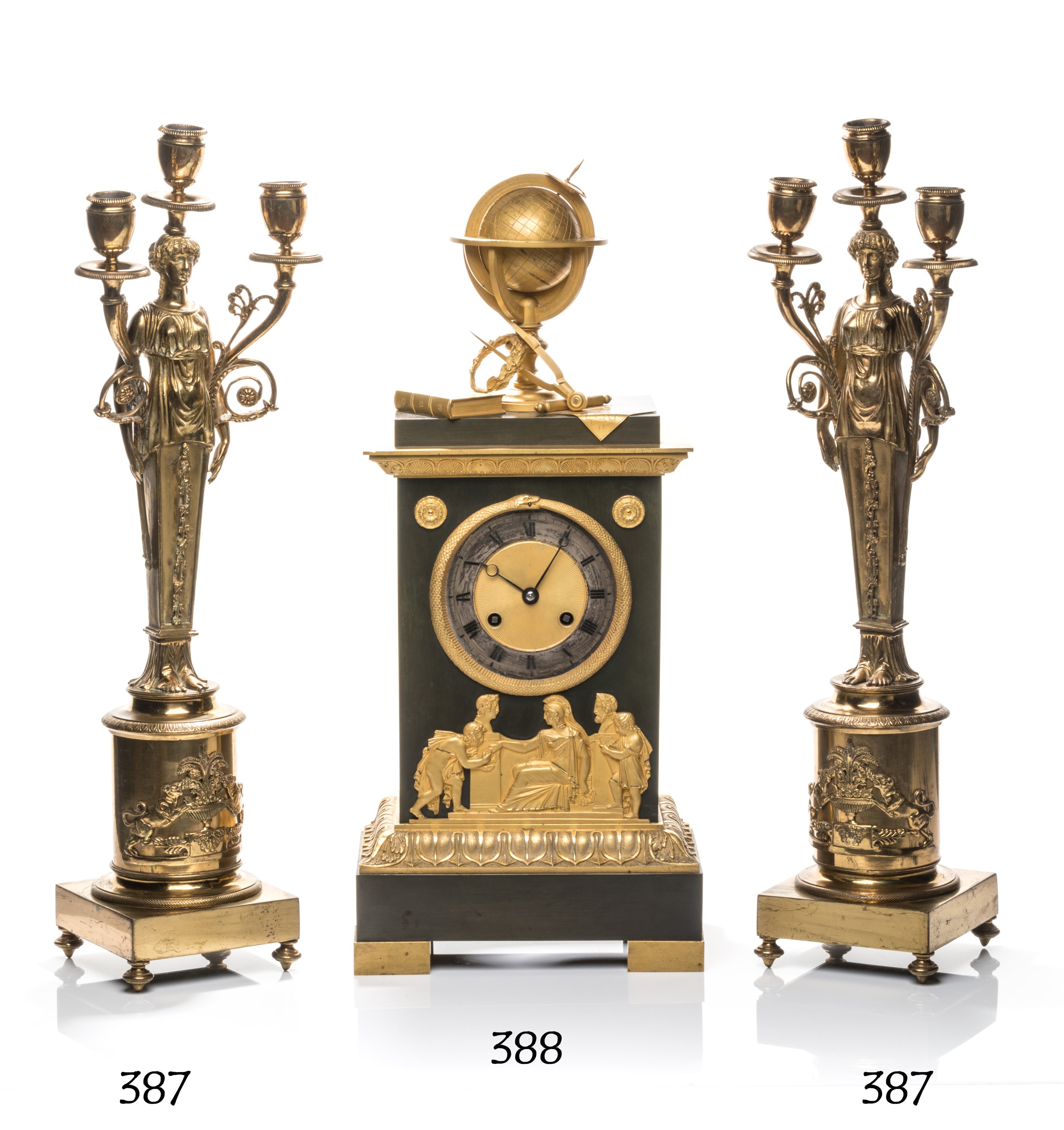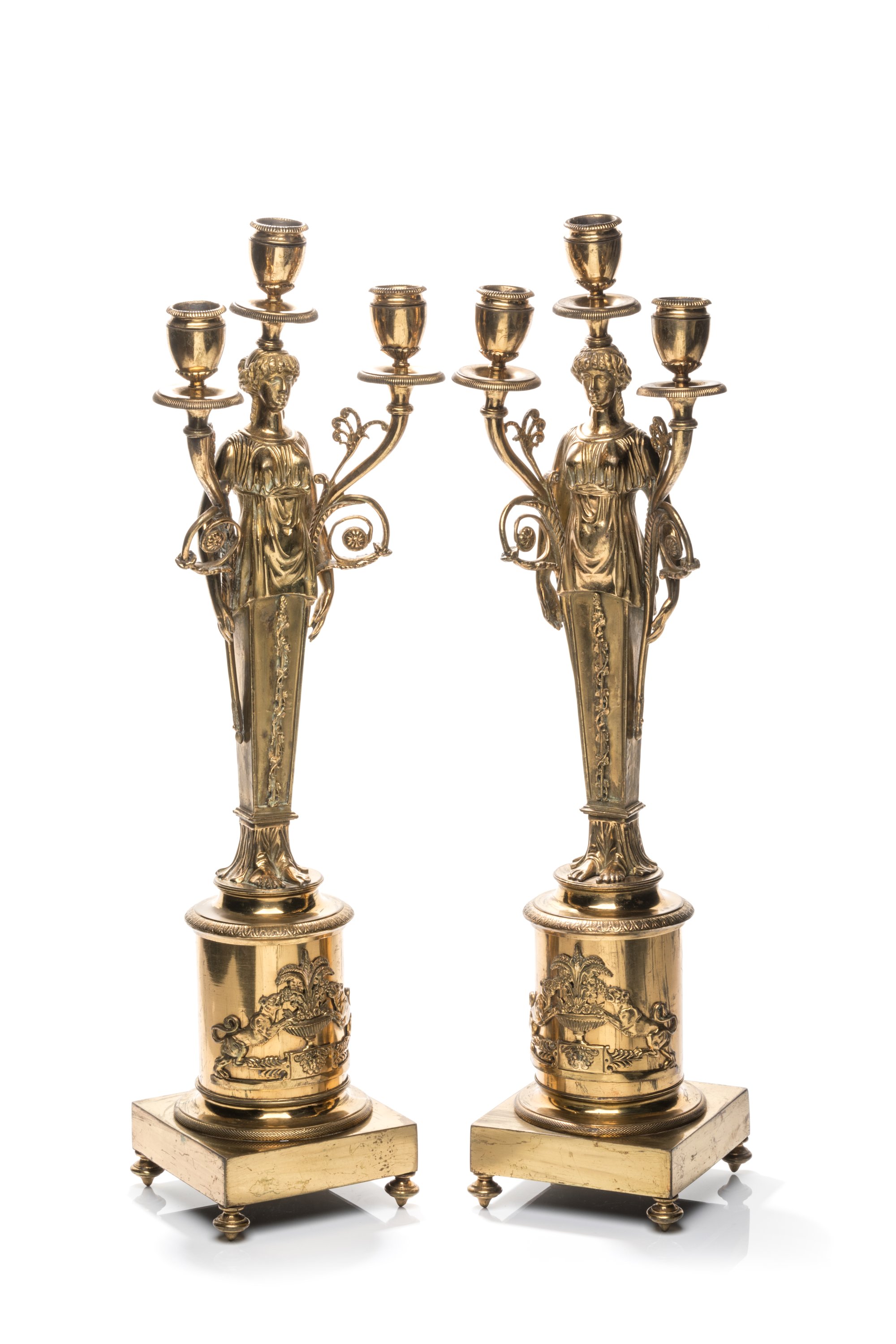A pair of 19th century gilded bronze 3-arms candle holders. Neoclassical style.