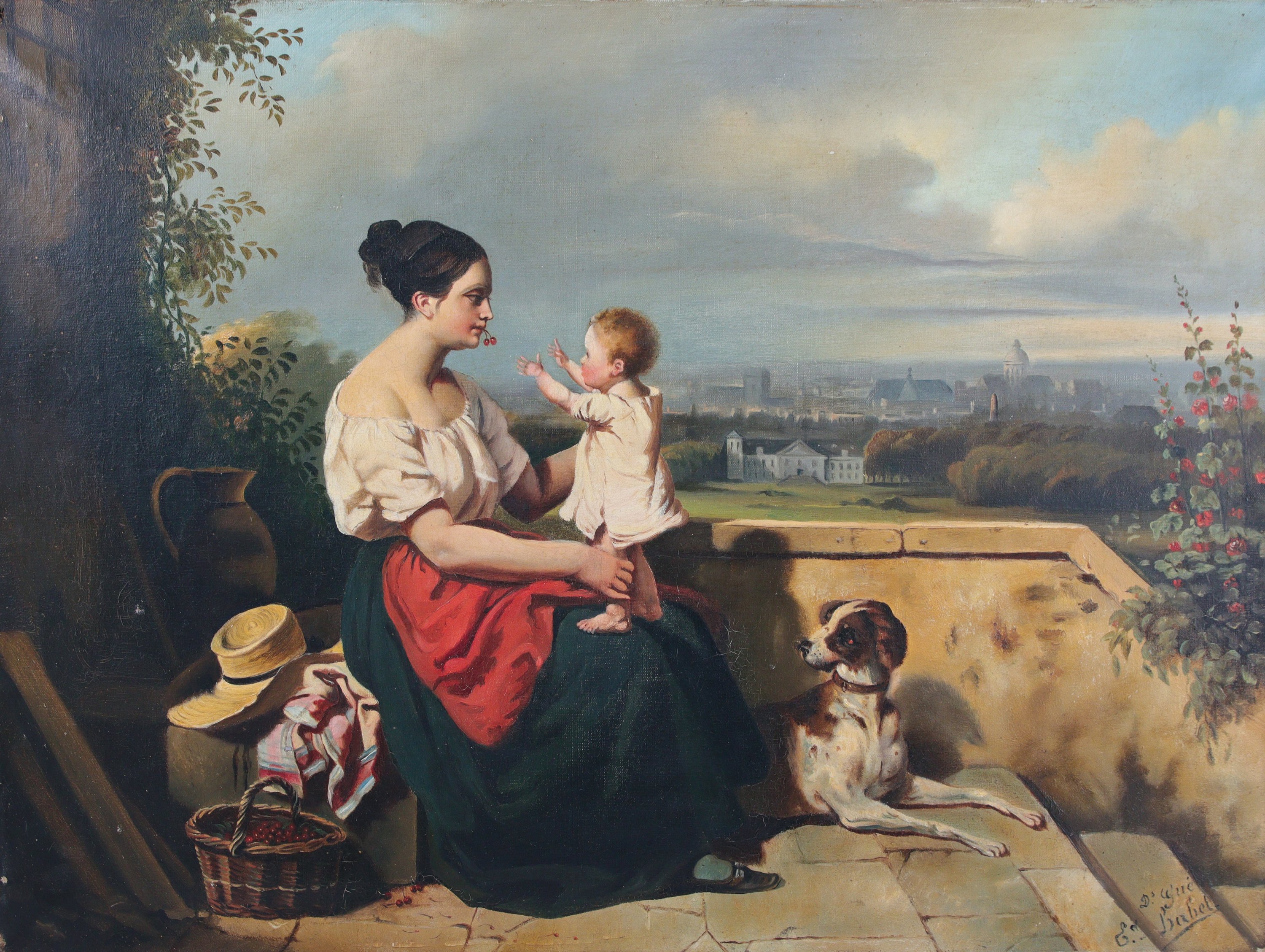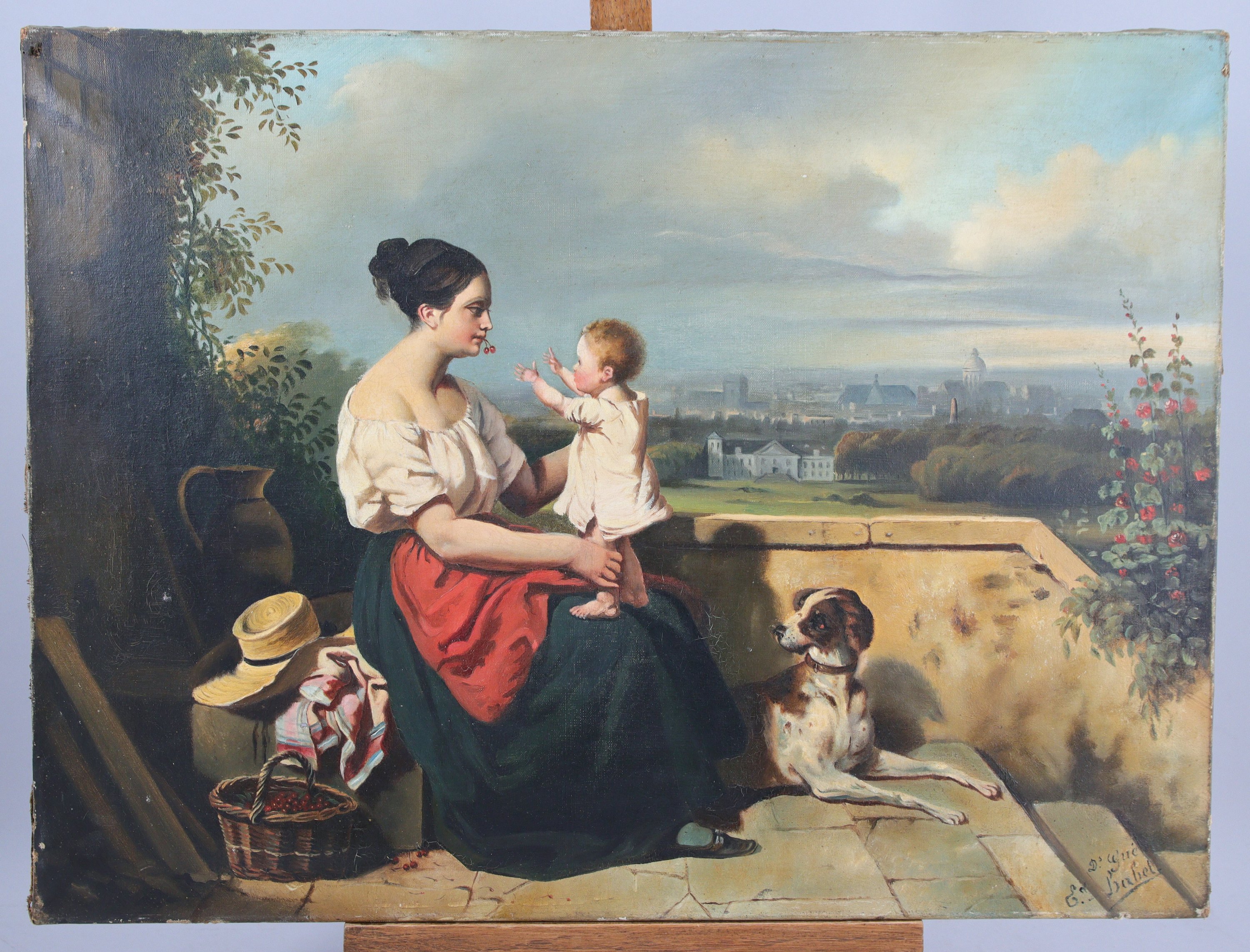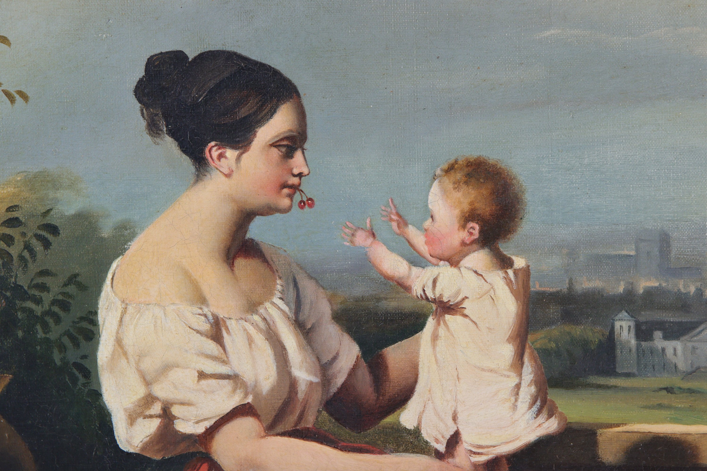 École Romantique vers 1815-1850Femme à l'enfant aux cerisesToile, avec inscriptions...