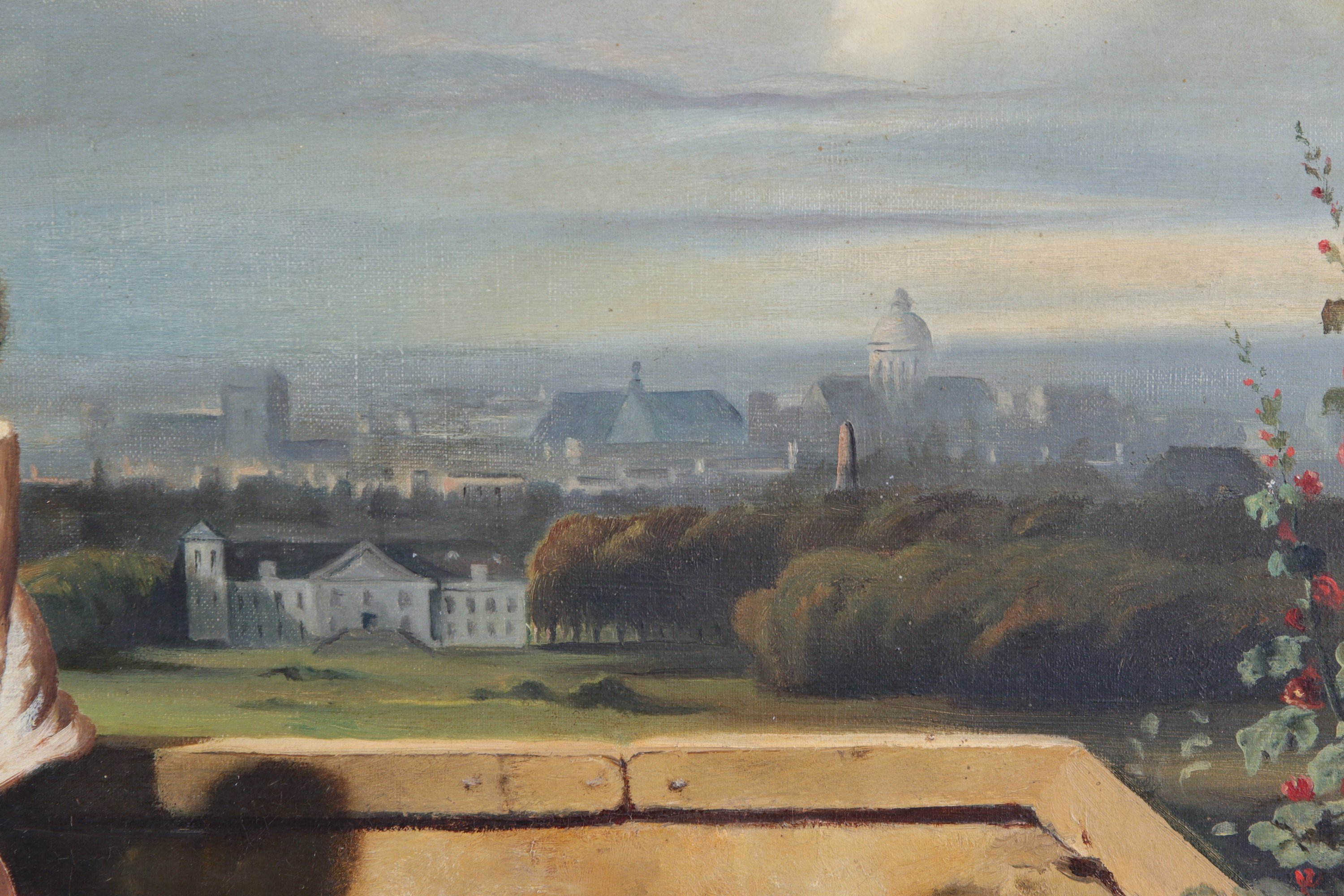 An early 19th century painting depicting a lady and a child holding cherries. Oil on canvas with inscriptions in the lower right corner.