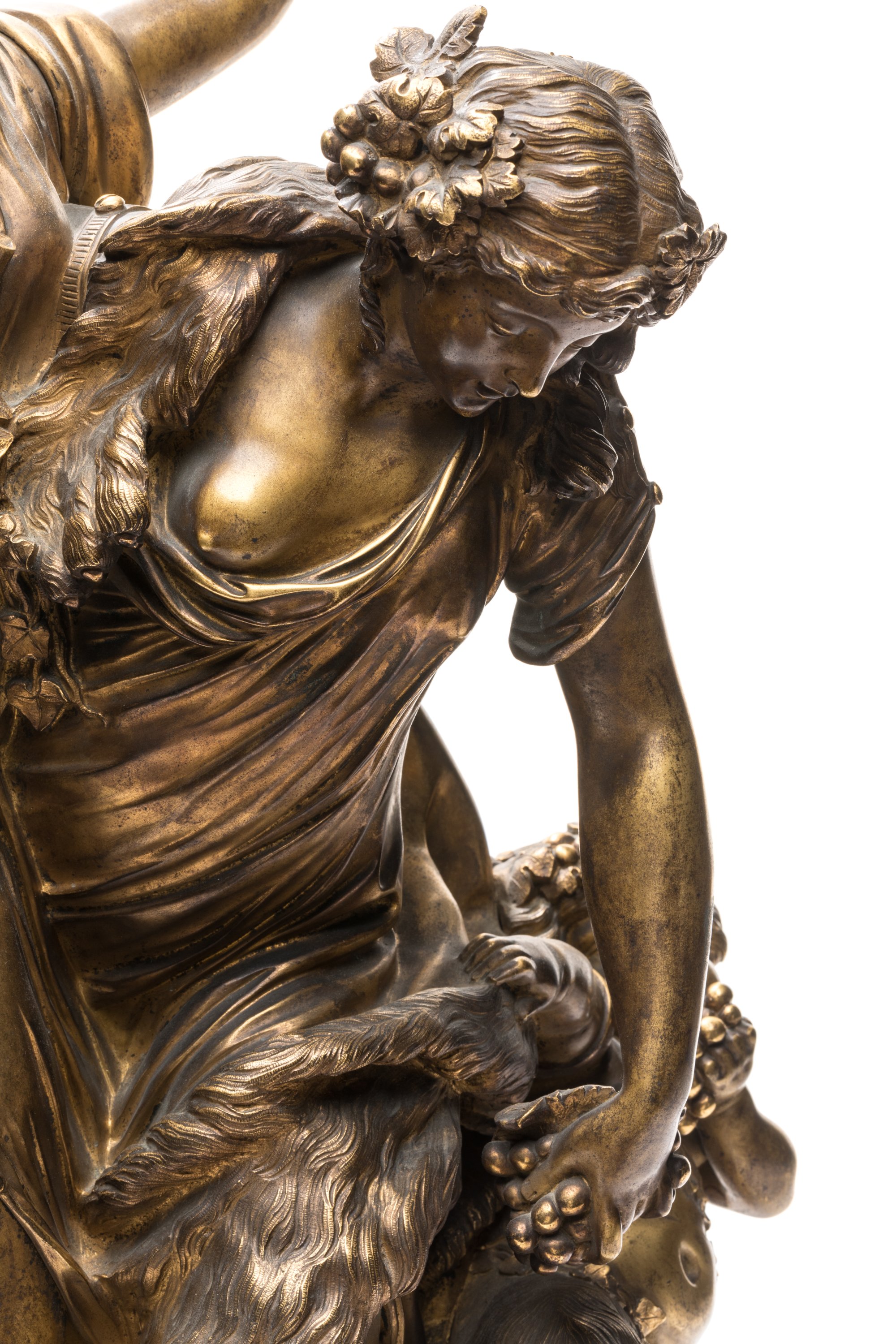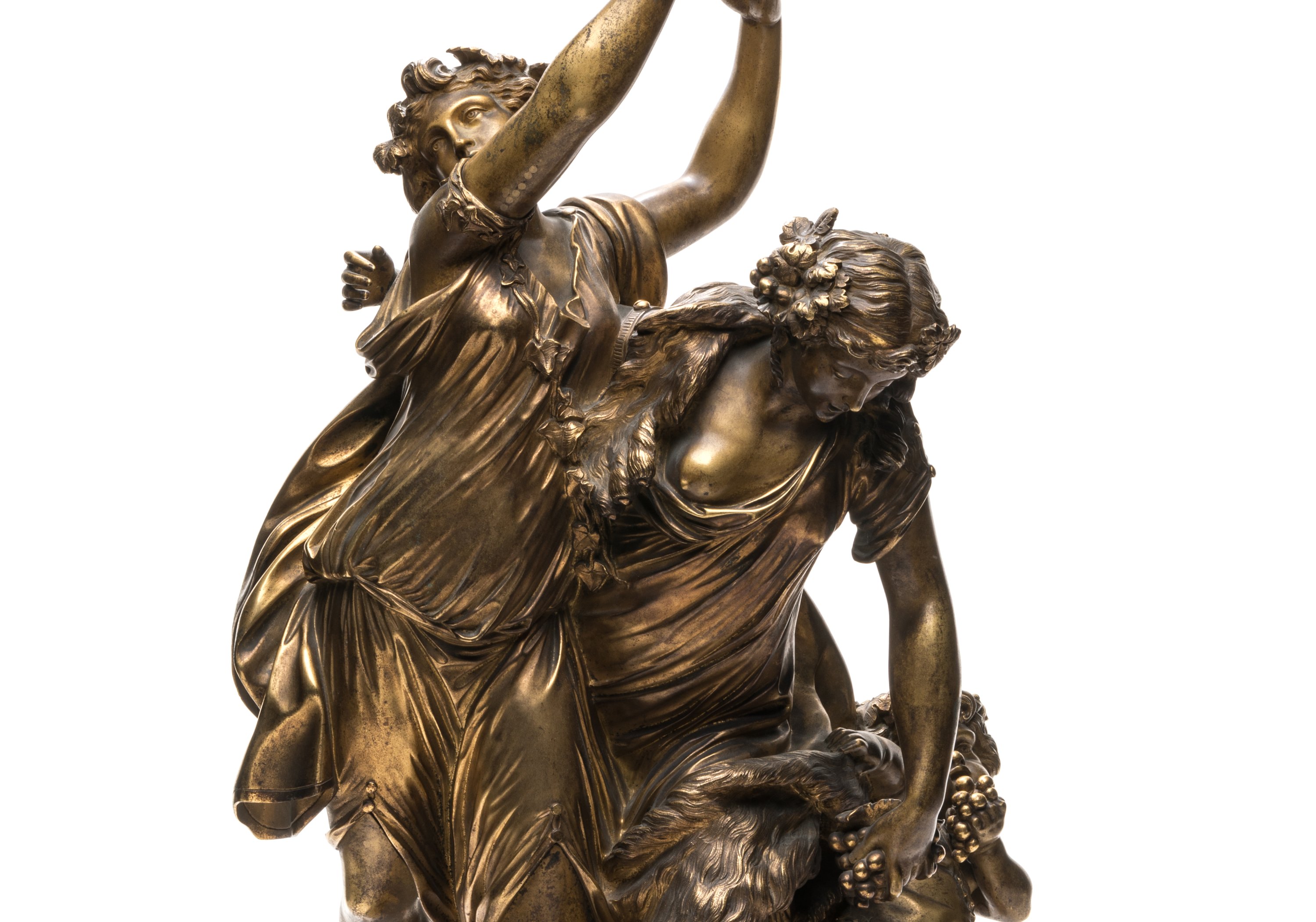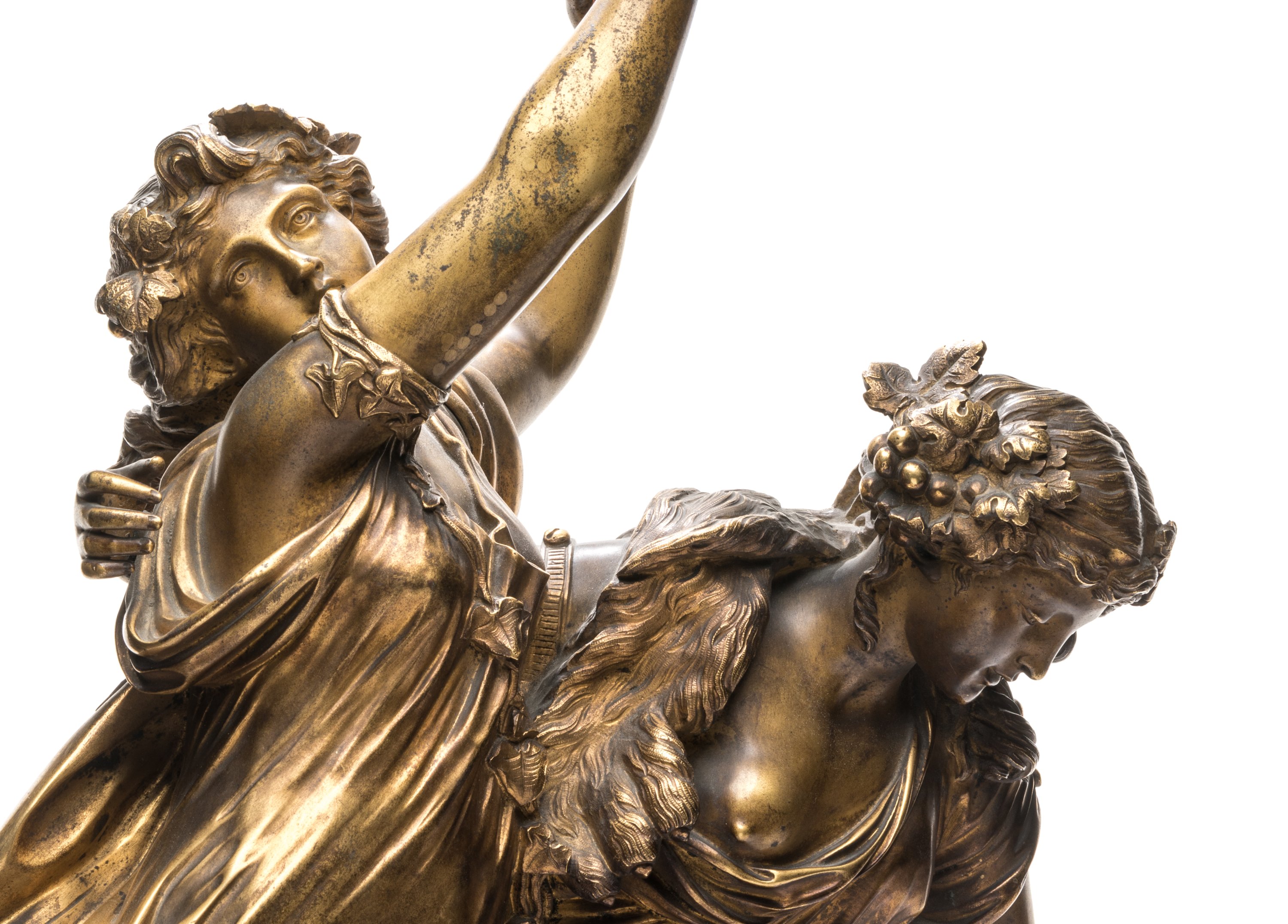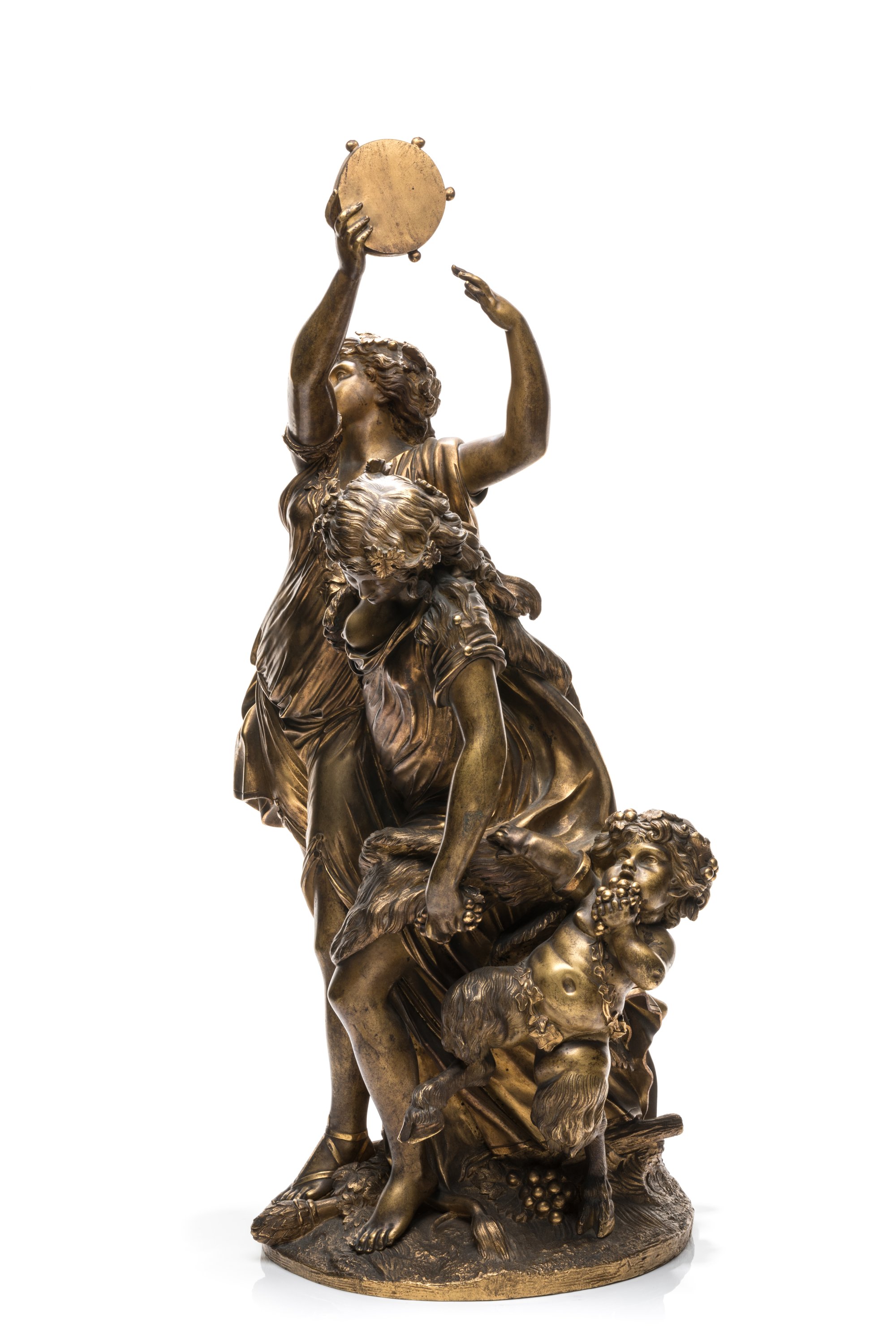 Issu de la famille Adam, prestigieuse dynastie de sculpteurs lorrains, Clodion est un temps l'élève de Jean-Baptiste Pigalle. Notre sujet, daté de 1762, correspond à une période précoce dans la carrière de Clodion, puisque c'est l'année de l'obtention de son brevet pour l'Académie de France à Rome. Dès les années 1770, et jusqu'à la fin de sa vie, de nombreuses allégories et diverses figures de Bacchantes ou de satyres peuplent ses compositions. Le sujet de cette composition traverse les siècles. Si les œuvres originales de Clodion sont rares sur le marché, les reproductions du XIXe siècle sont plus nombreuses. Elisabeth Lebon, dans son "Dictionnaire des fondeurs d'art" (Marjon éditions, 2003), relève que Thiebault Frères (La danse) et Rudier ont inscrit le sculpteur à leur catalogue, de même que les frères Raingo dont on retrouve d'autres Allégories de la danse. Les œuvres de Clodion annoncent déjà celles de ses suiveurs du siècle suivant, notamment Carrier-Belleuse, qui reprendra bien souvent les thématiques des allégories de la danse ou de la musique et chez qui l'on retrouve la même science du mouvement.