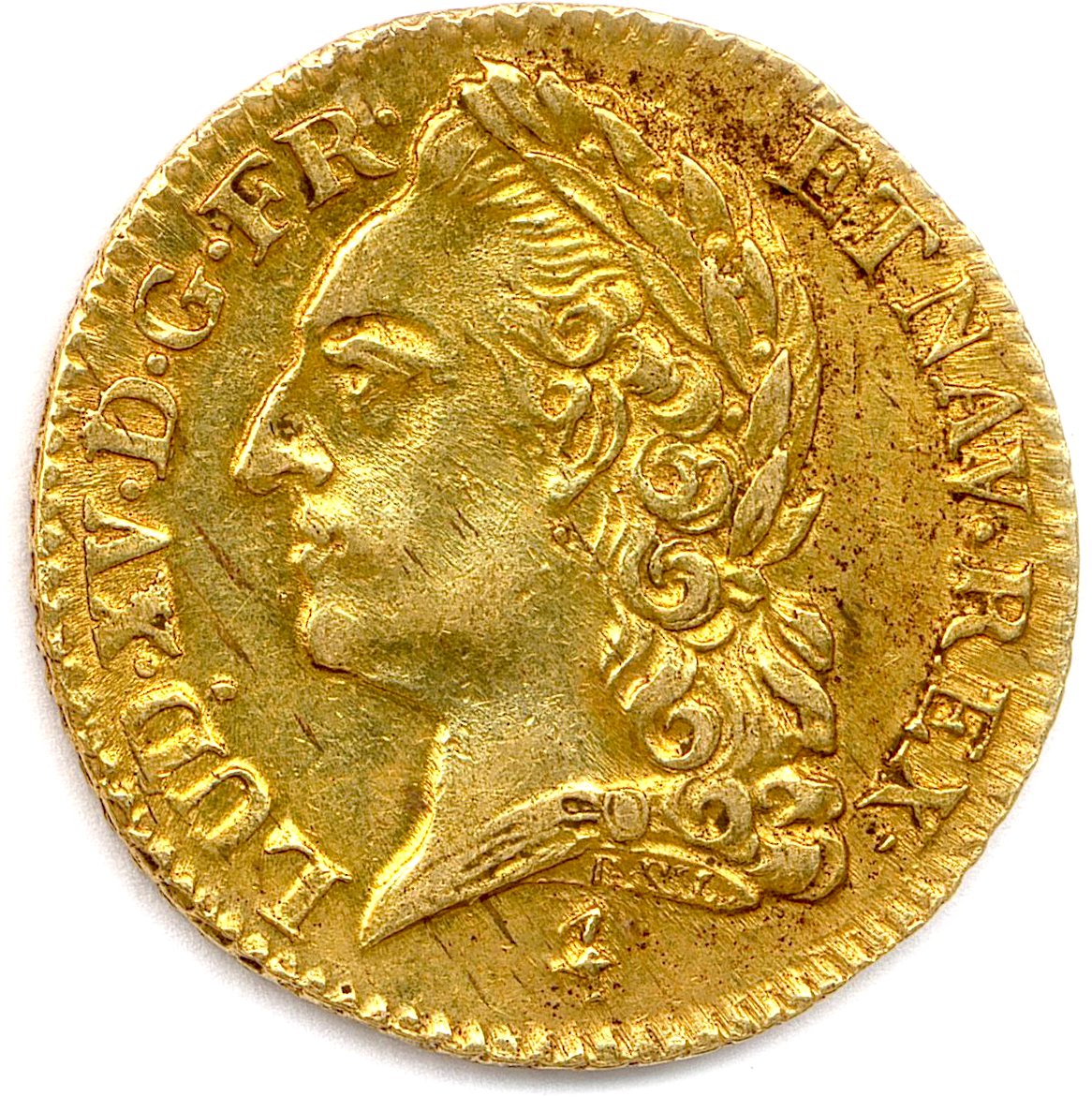 A 1771 "Louis d'or à la vieille tête" gold coin.