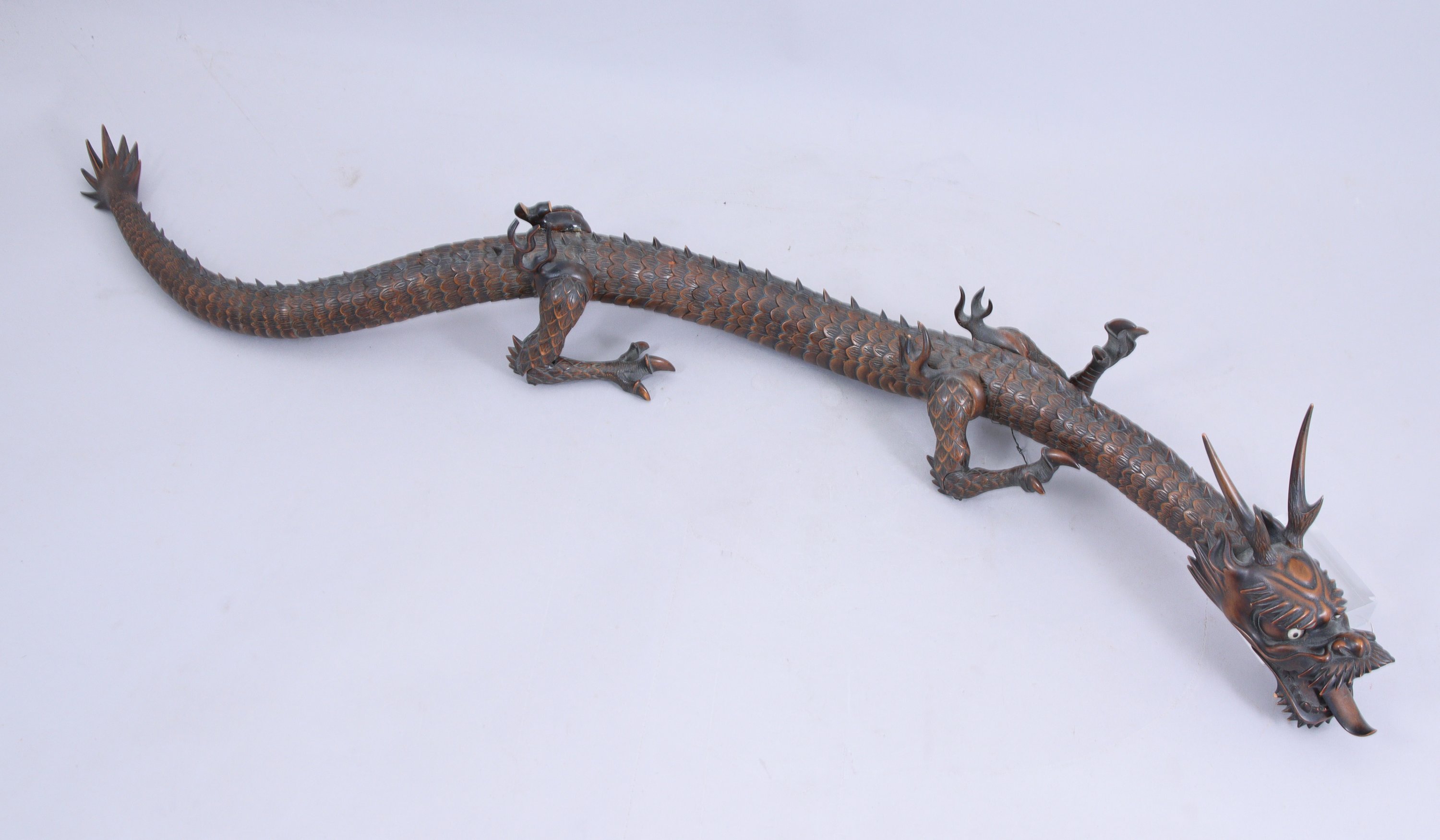 Japon, époque Meiji (1868-1912).Dragon articulé en buis, les yeux incrustés...