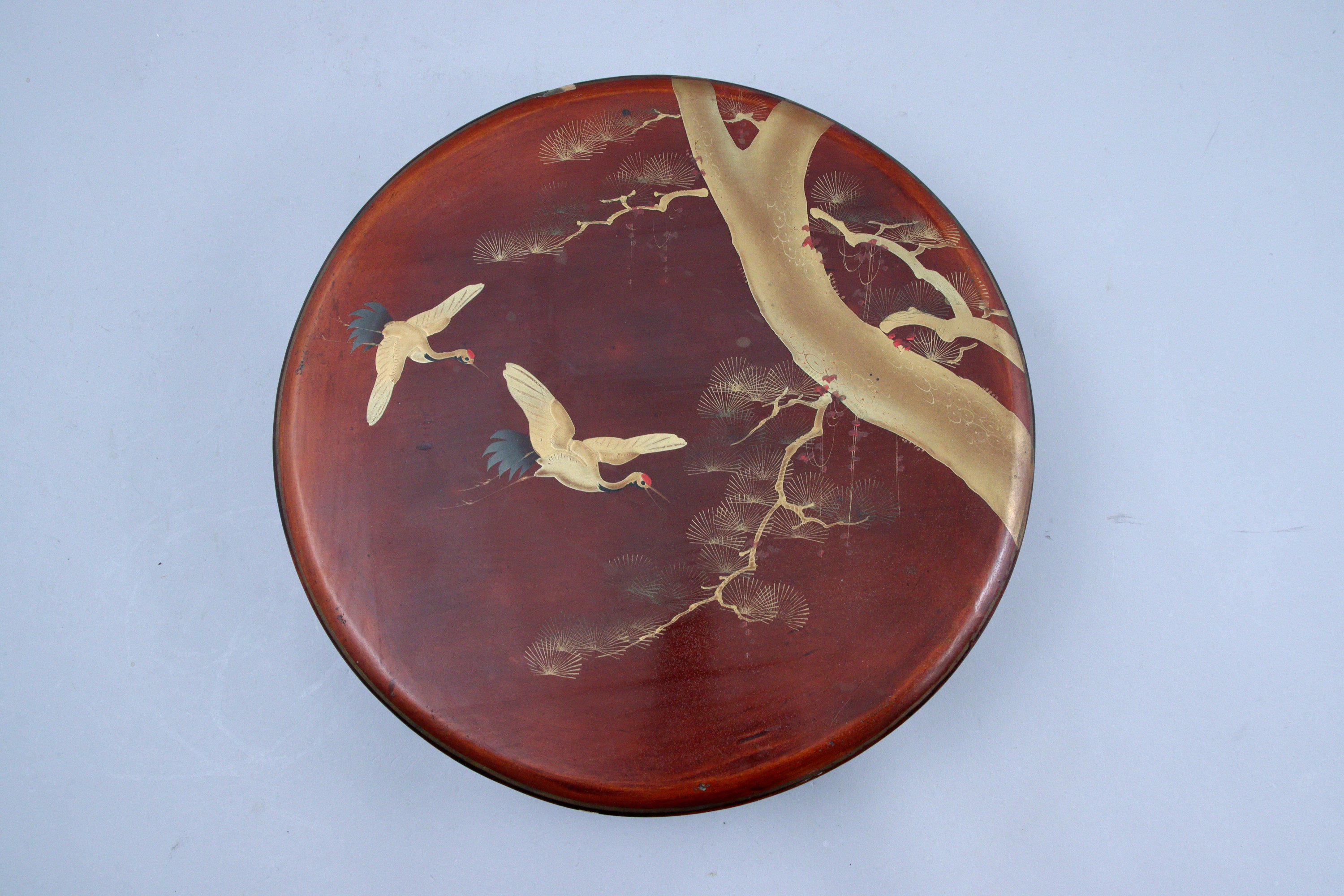 Japon, XXe siècle. Boîte circulaire en bois laquée à fond...