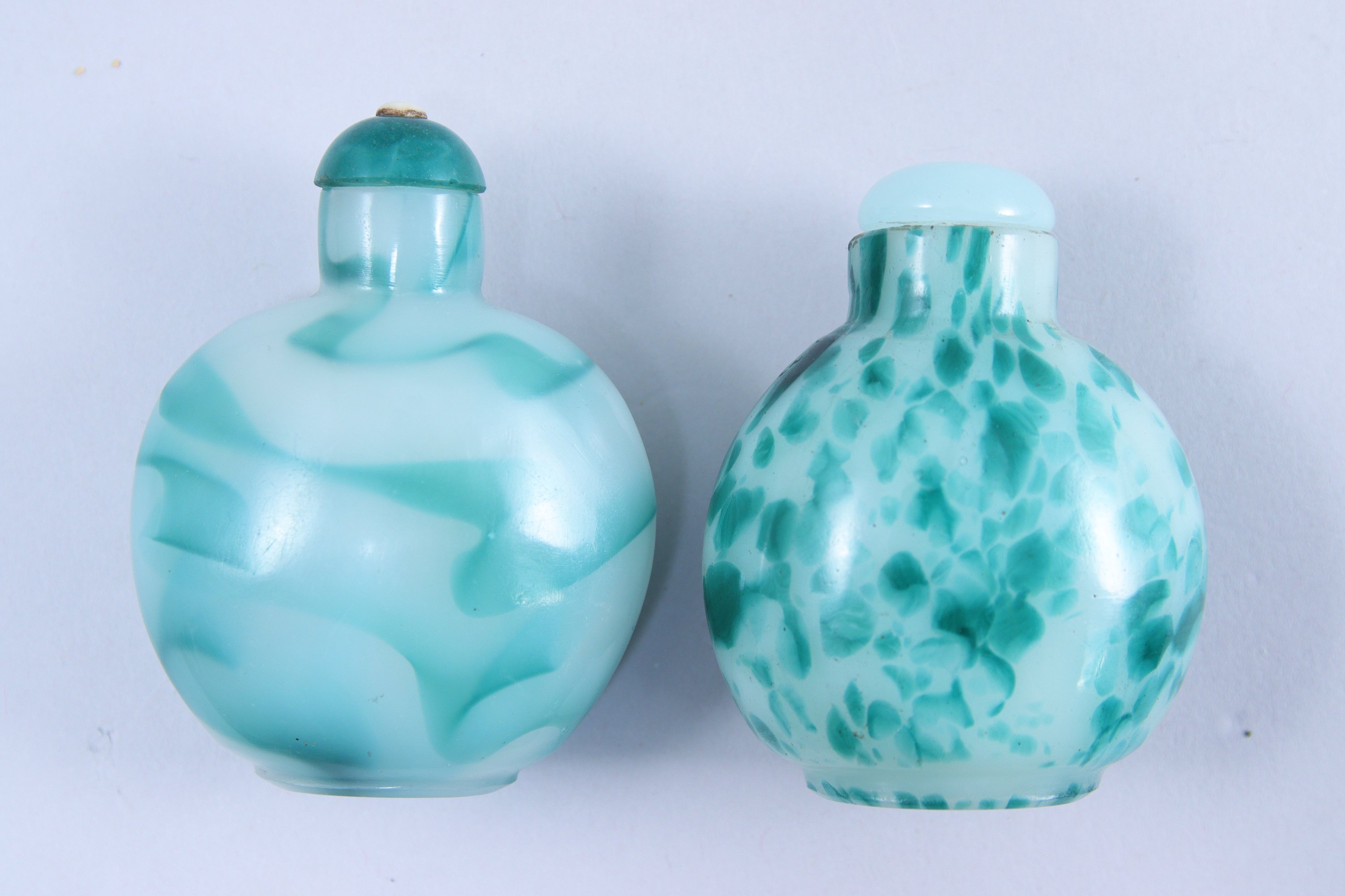 en verre vert et blanc dit 'sandwich". Bouchons en verre.