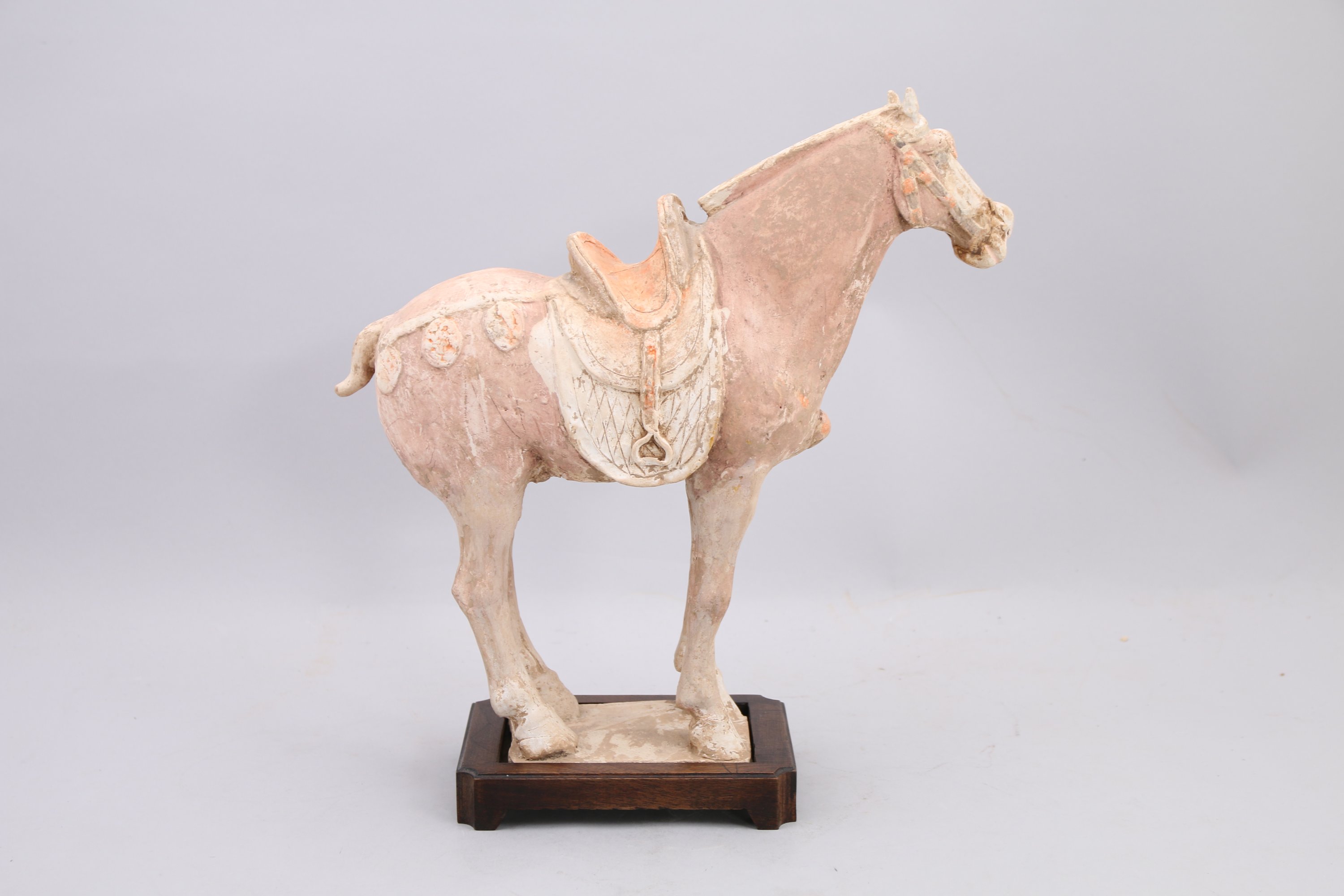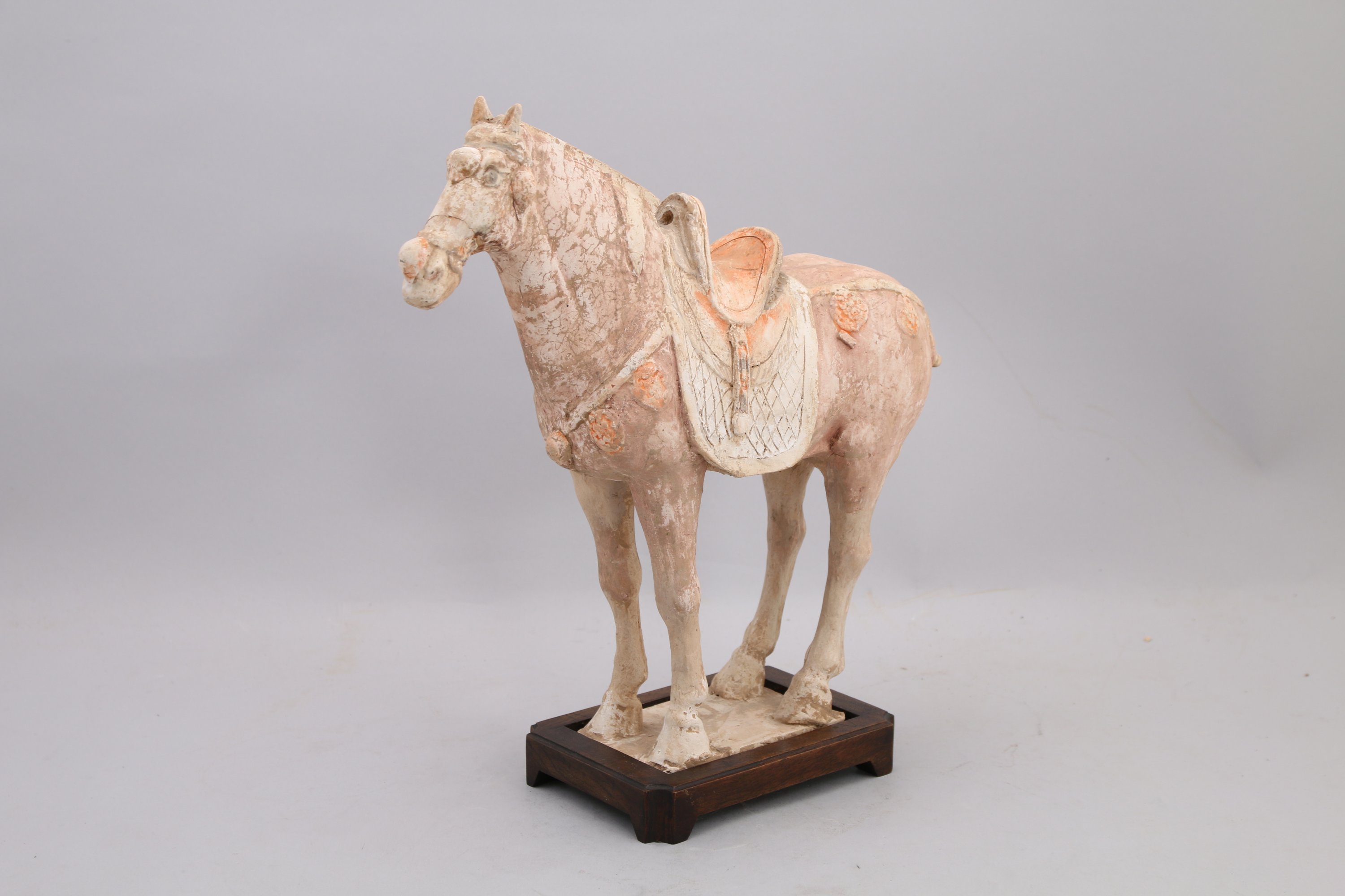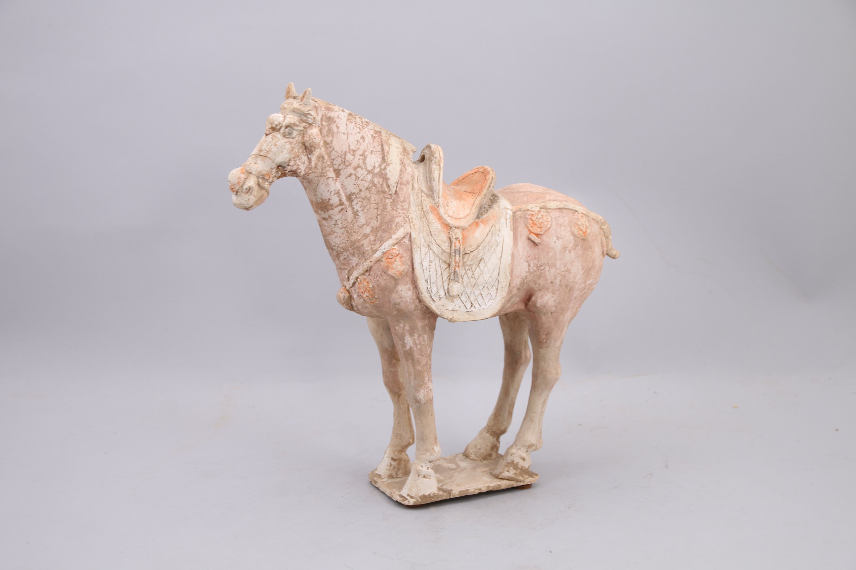 Chine, époque Tang (618-907). Cheval en terre cuite à traces...