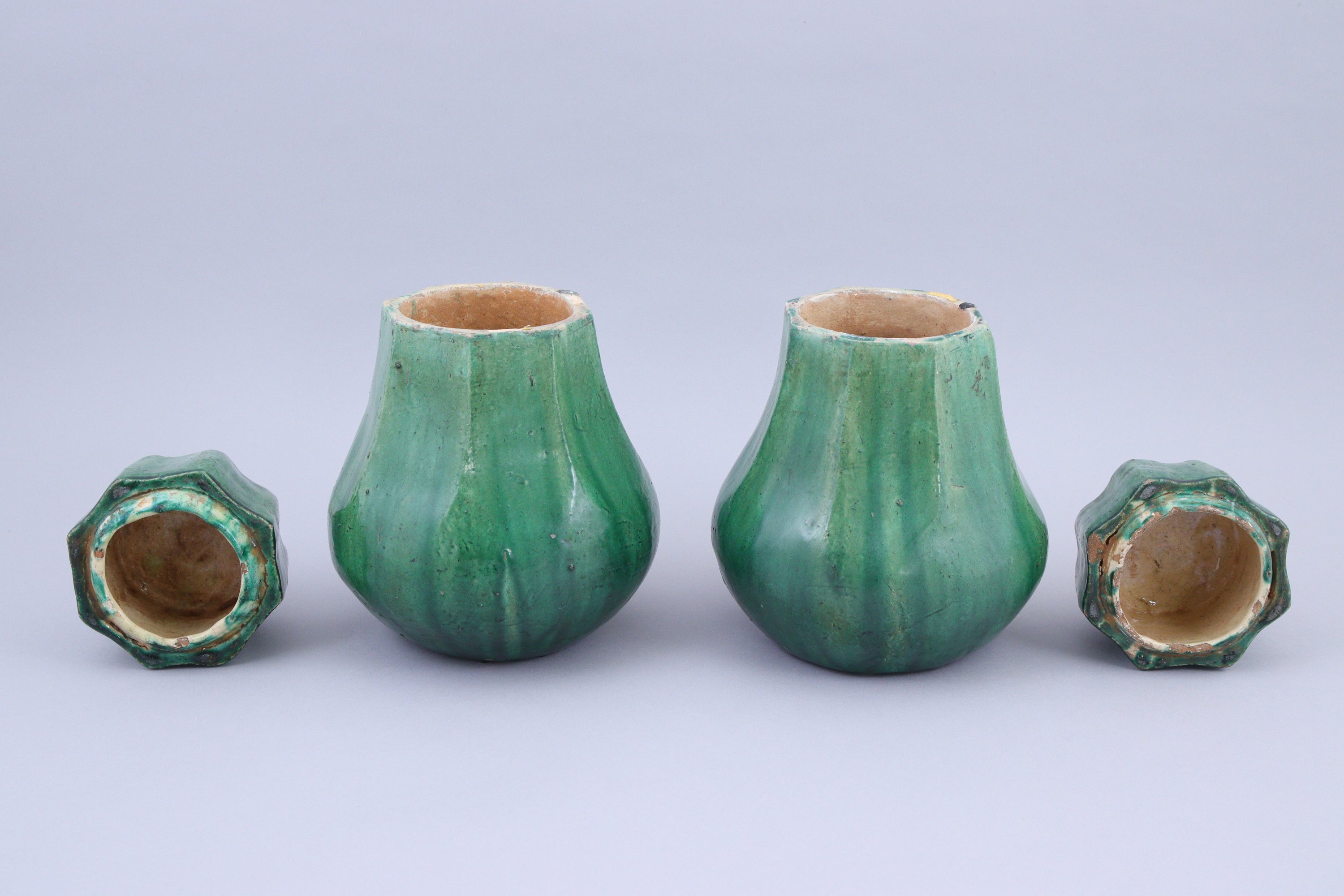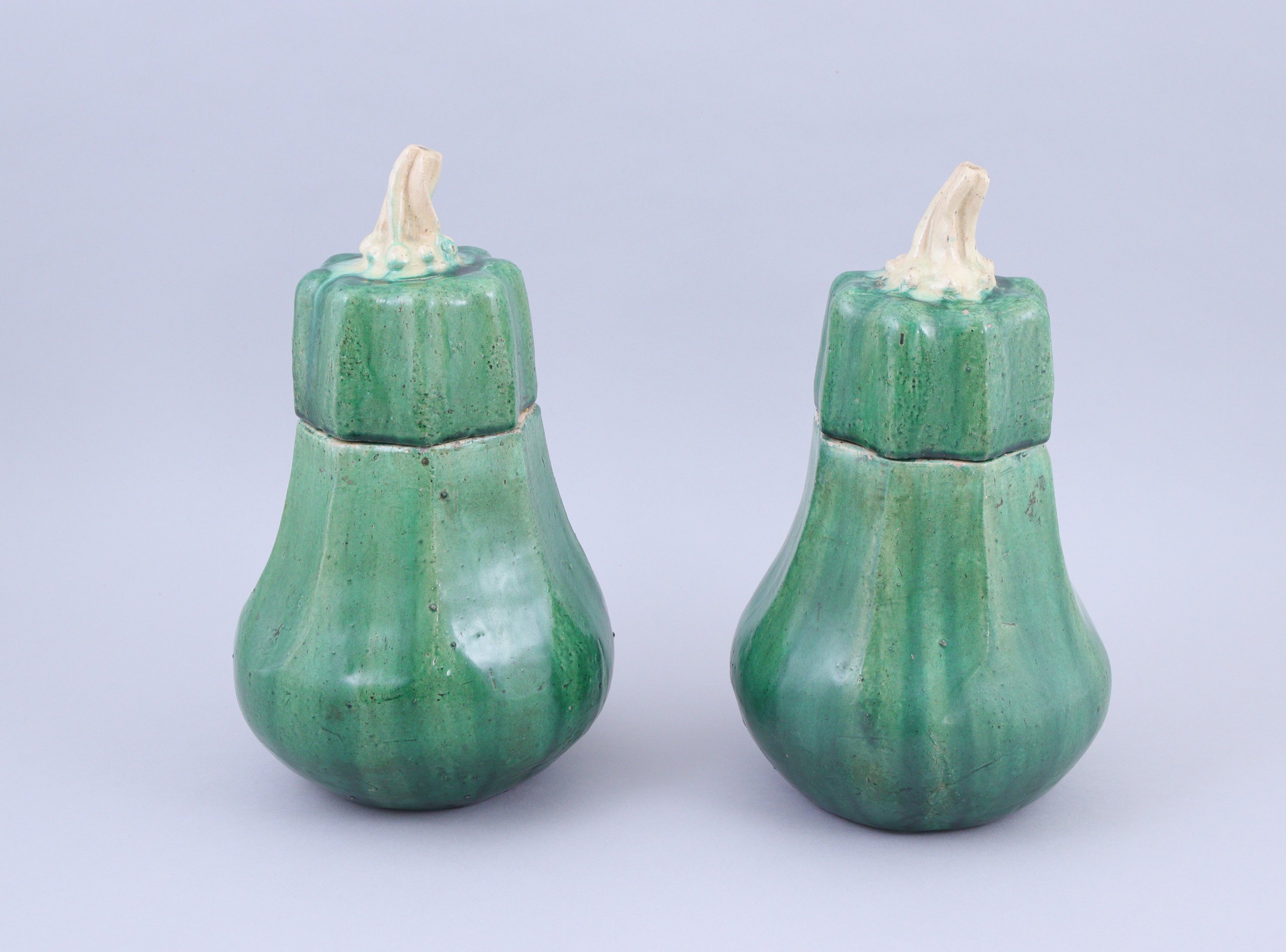 Chine, vers 1900.Paire de vases en forme de cucurbitacée en...